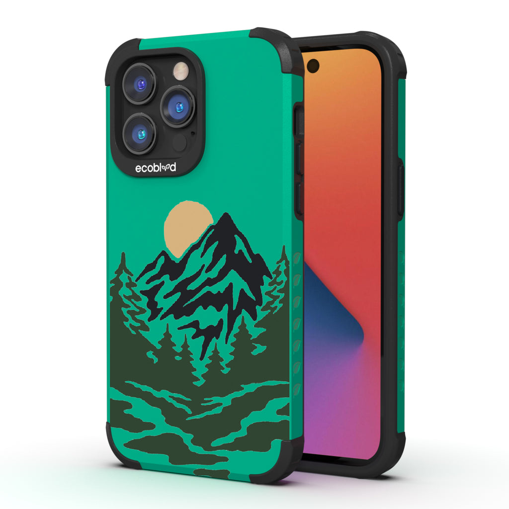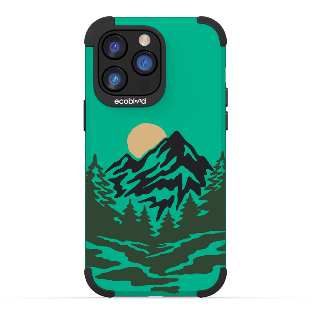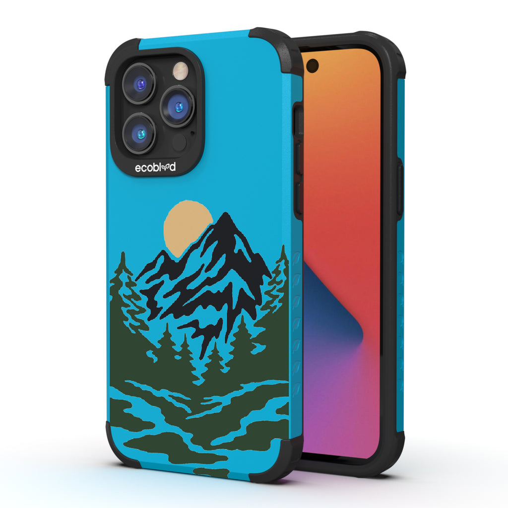 Like a breath of fresh air, the Mountains phone design on our Mojave rugged and compostable iPhone 14 Pro Max phone case puts your phone in the middle of a stunning moonlit wooded mountain trail that captures the excitement of camping and hiking. Choose from five vibrant colors: Midnight Black, Cascade Blue, Foliage Green, Illuminating Yellow, and Wildflower Pink.