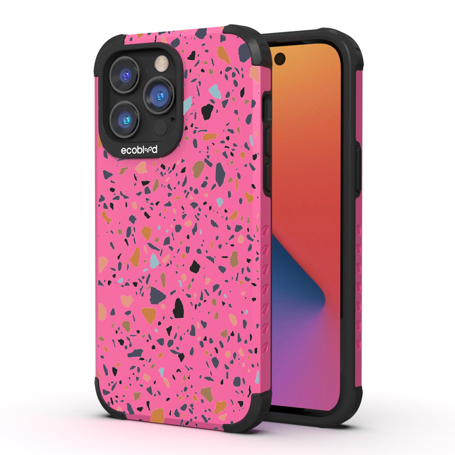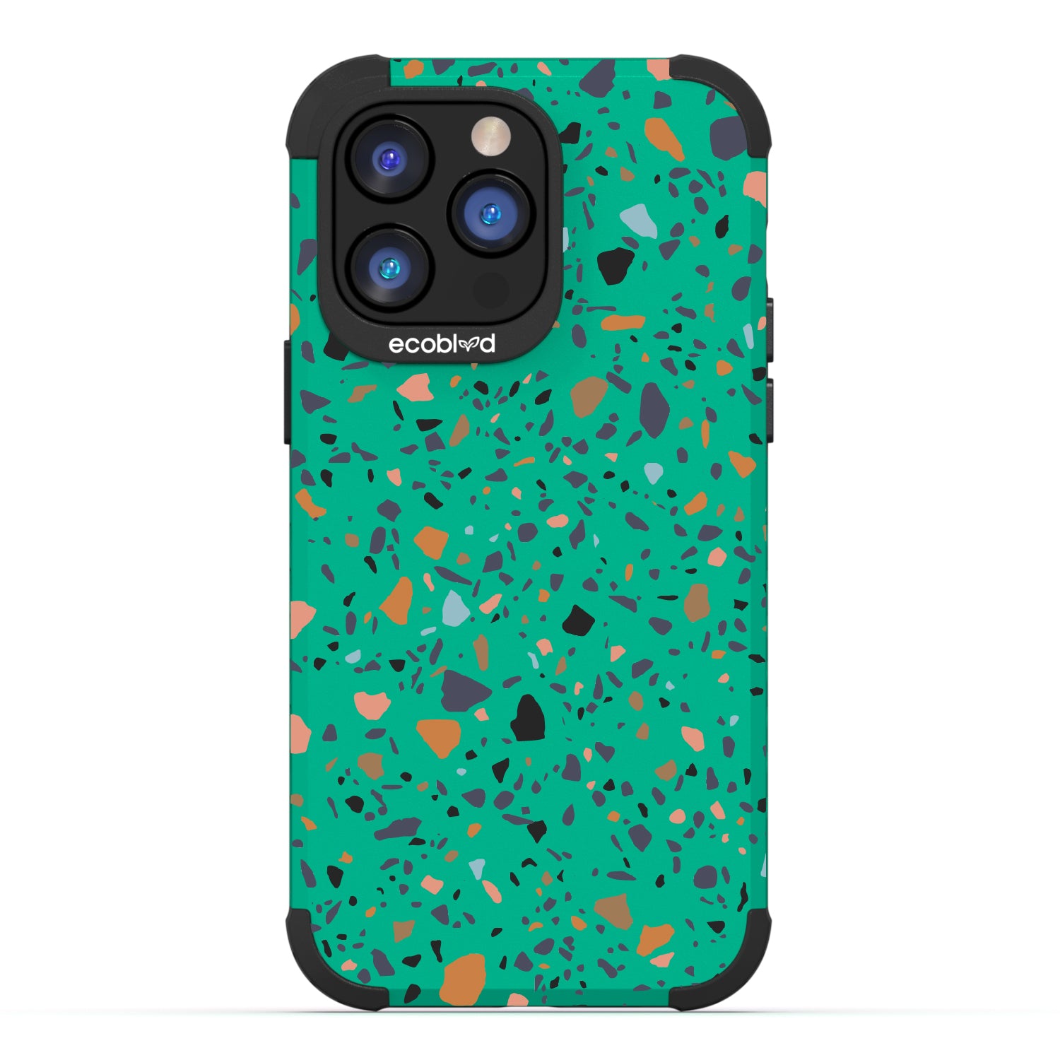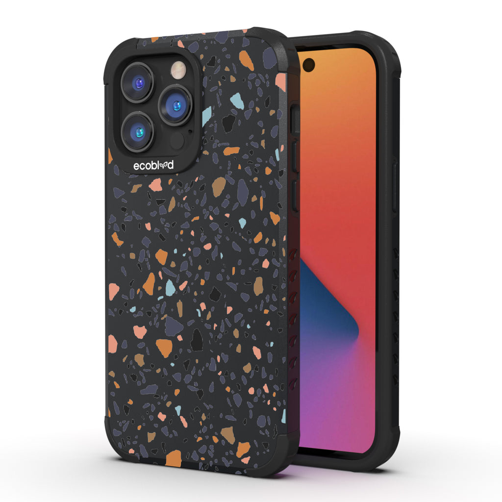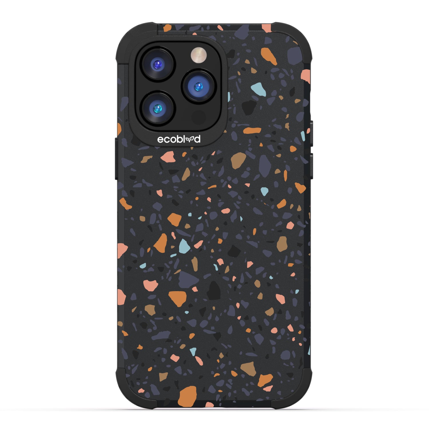 The Terrazzo design on our Mojave rugged and compostable iPhone 14 Pro Max case is like confetti for your phone with its bold kaleidoscopic colors recalling a classic mid-century modern look that has swept fashion and architecture worldwide.