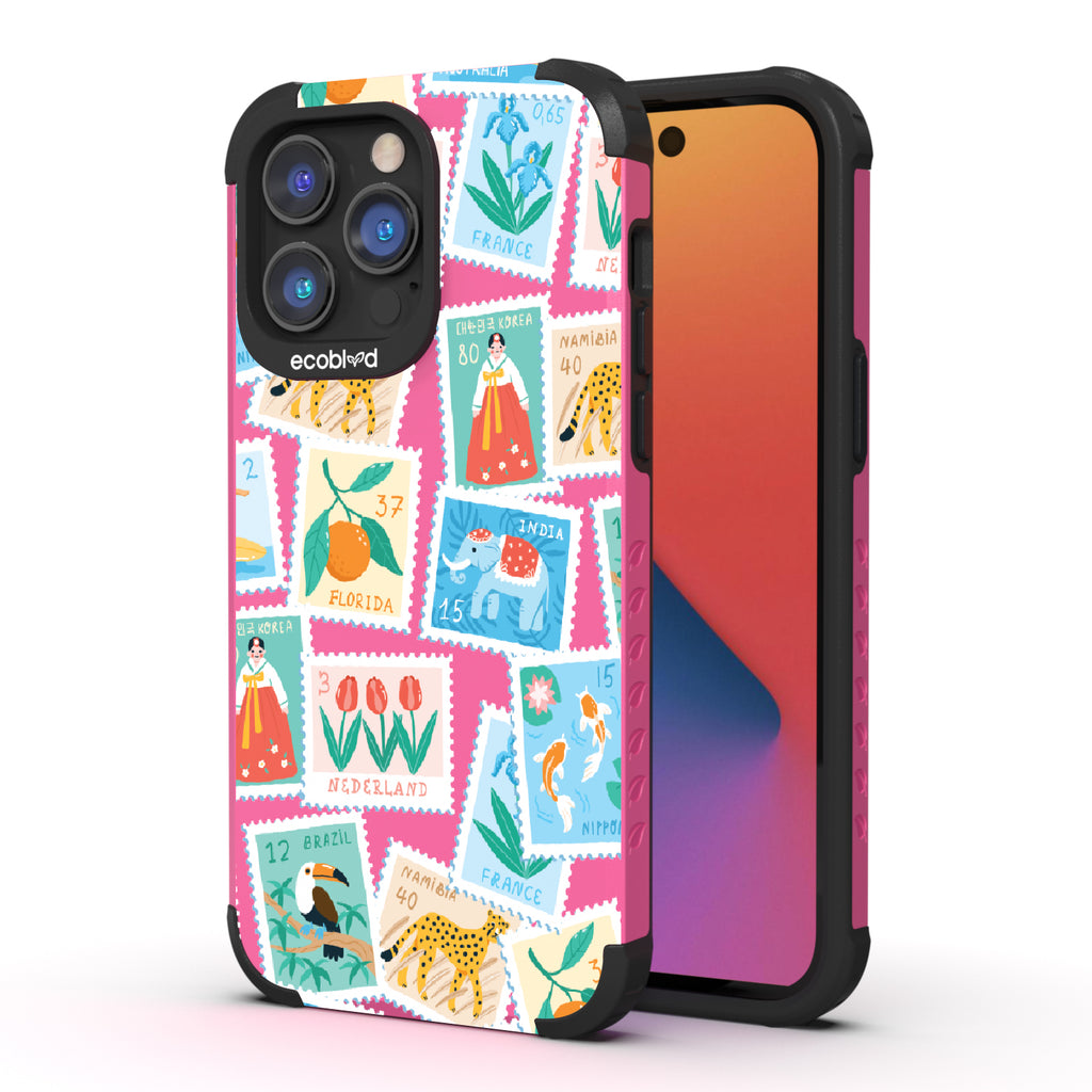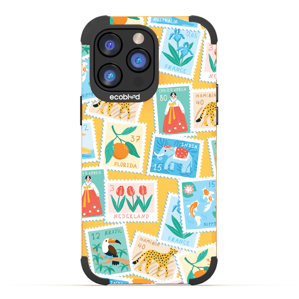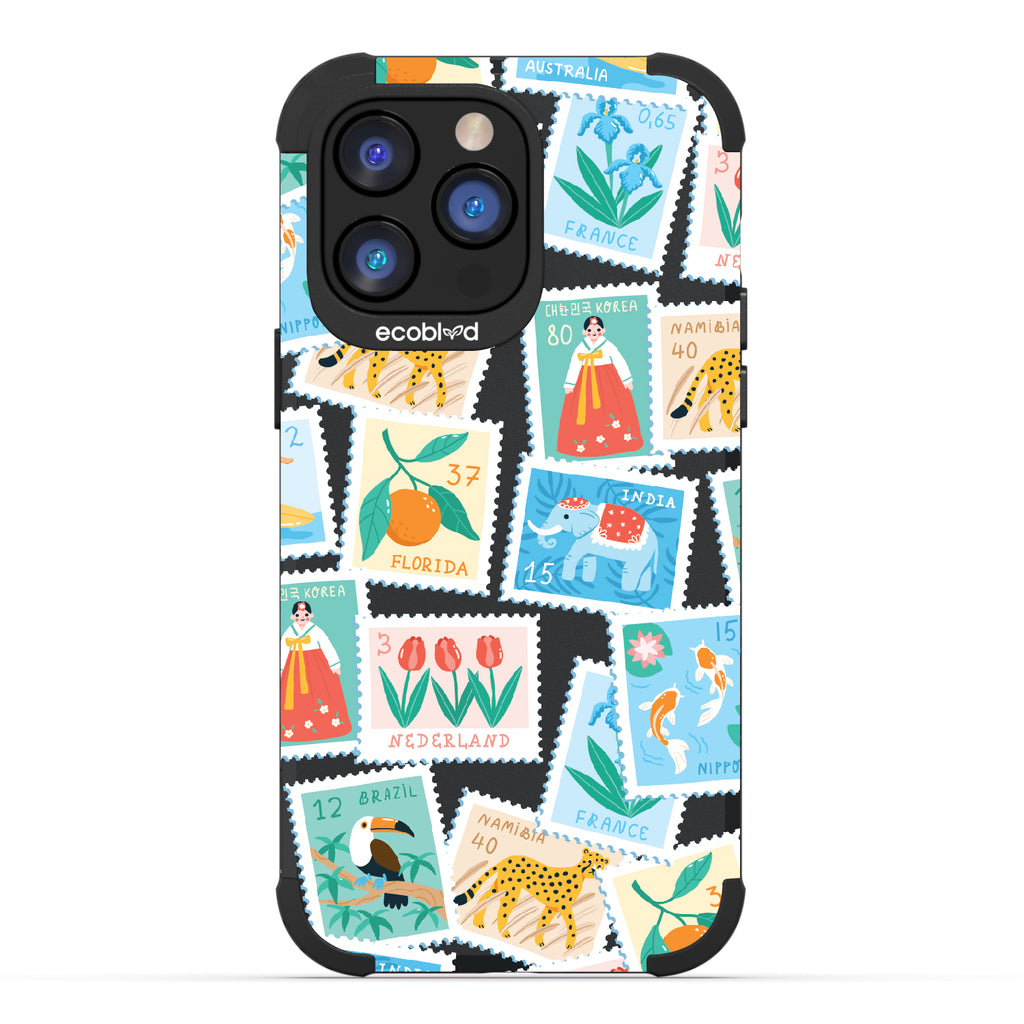 Collect a world of memories with the Wish You Were Here design on our Mojave rugged iPhone 14 Pro Max case, a patchwork of postcard-perfect stamps from Florida to France. Each stamp is a window into a new world, an invitation to gather stories from far and wide. Decorate your phone with this mosaic of travel logs, and let it be a colorful collage of all the places that whisper, 'Wish you were here.'