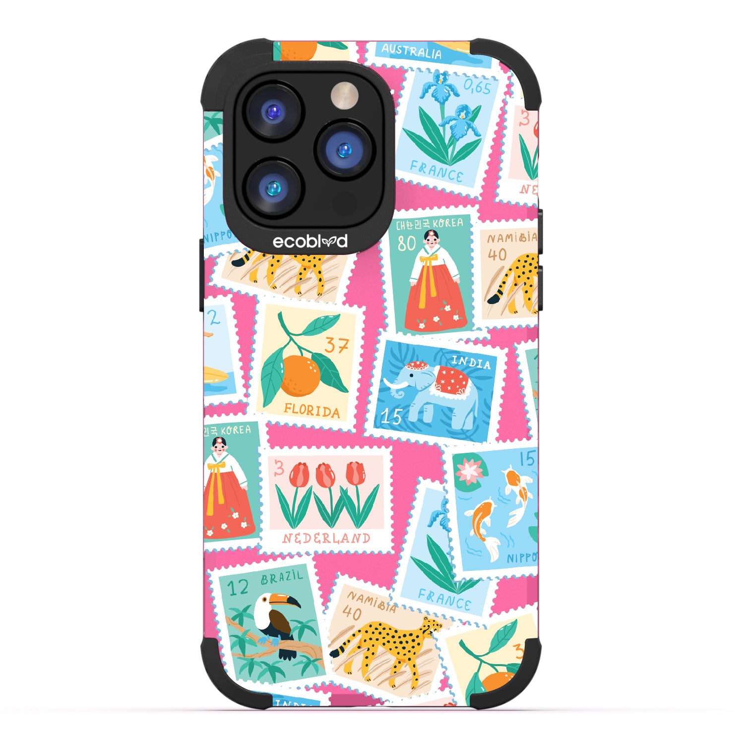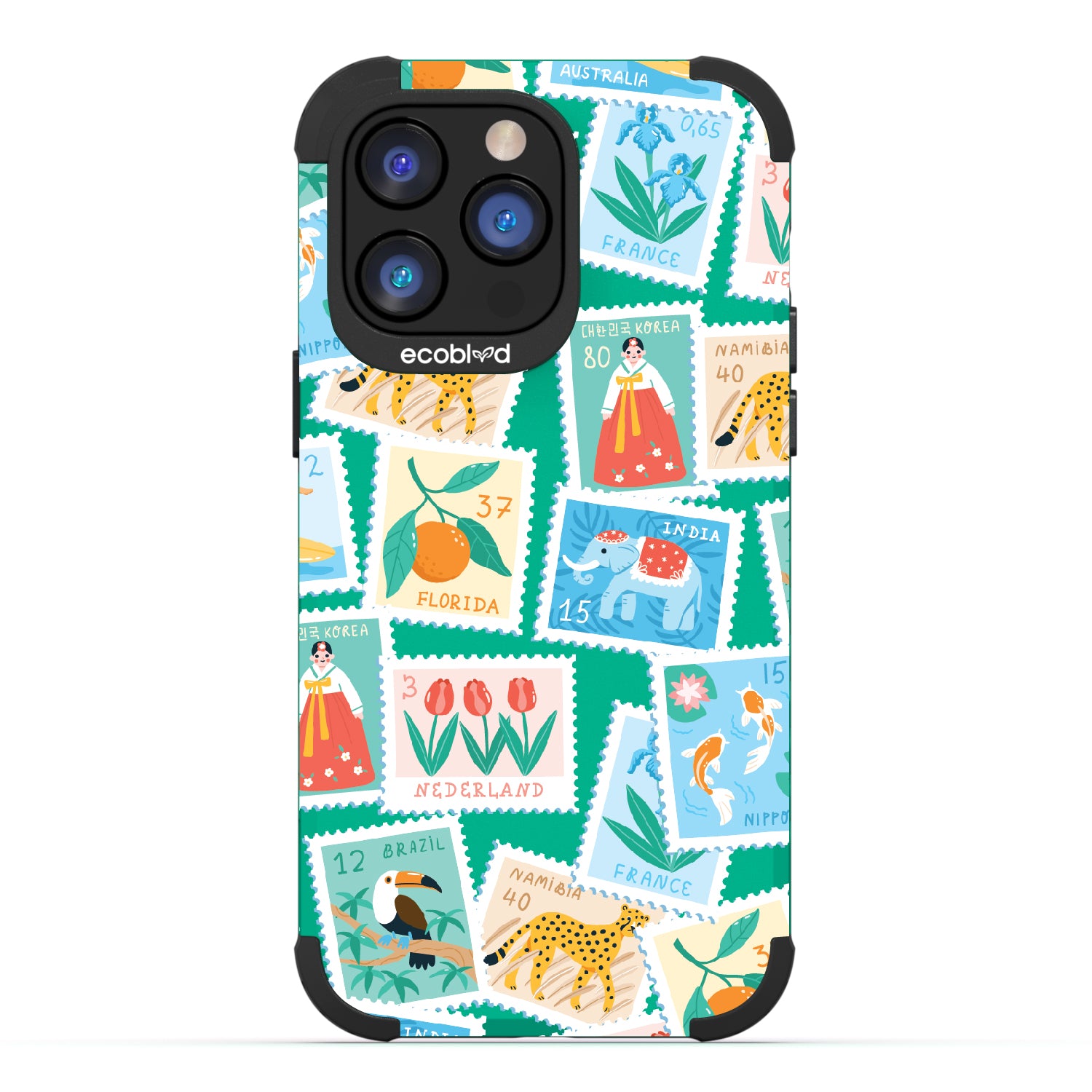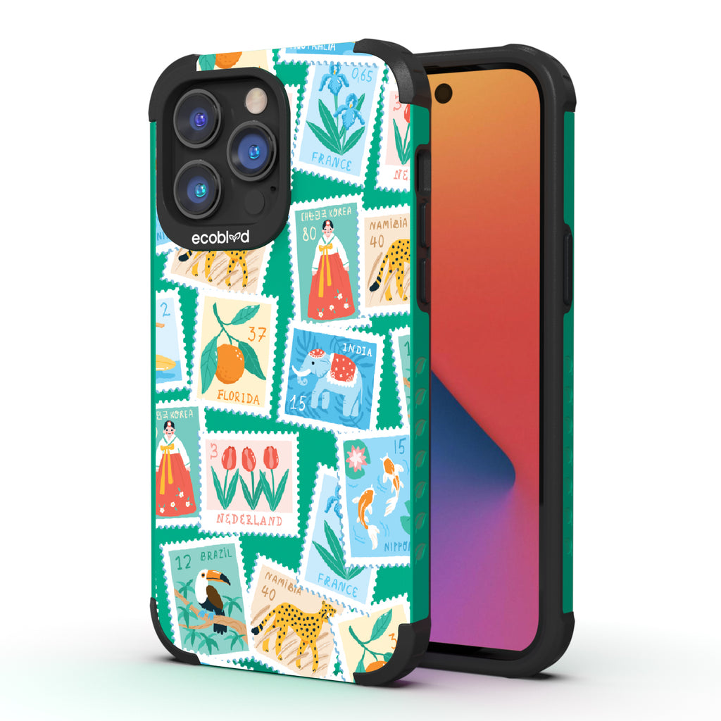 Collect a world of memories with the Wish You Were Here design on our Mojave rugged iPhone 14 Pro Max case, a patchwork of postcard-perfect stamps from Florida to France. Each stamp is a window into a new world, an invitation to gather stories from far and wide. Decorate your phone with this mosaic of travel logs, and let it be a colorful collage of all the places that whisper, 'Wish you were here.'