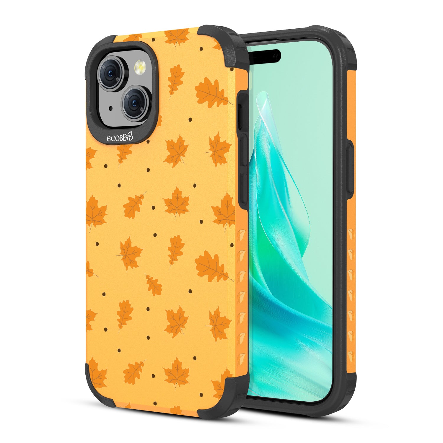 A New Leaf design on our Mojave rugged and compostable iPhone 15 MagSafe case synchronizes your phone with the shifting seasons, capturing the essence of transformation from vibrant green to crisp autumn colors. Just as the leaves evolve, your phone mirrors the beauty of change.