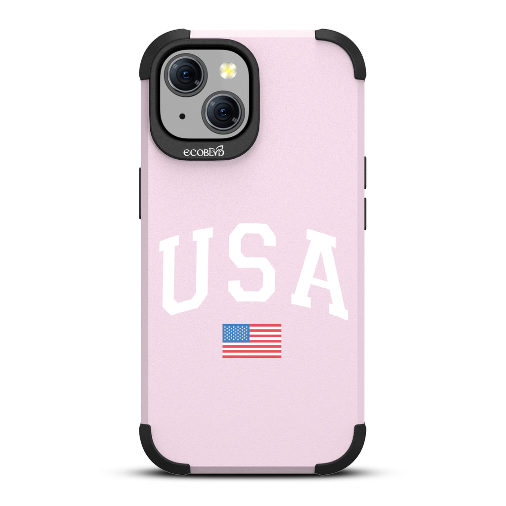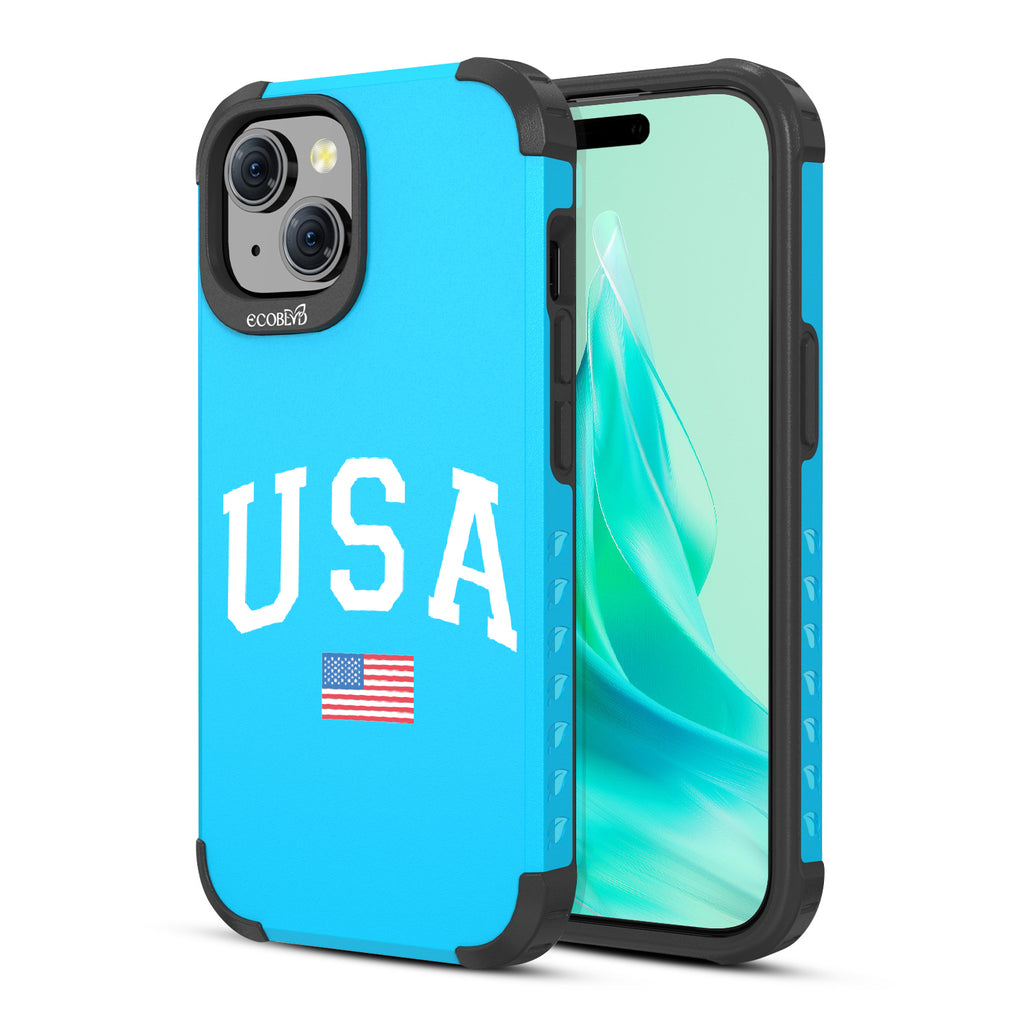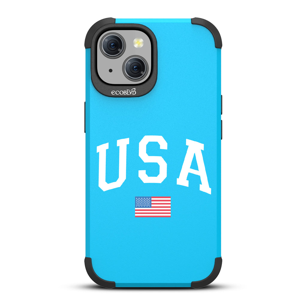 Cheer on the stars and stripes with the All-American design on our Mojave rugged iPhone 15 MagSafe case. With bold "USA" and the American flag, this case celebrates Team USA and the Olympic games.