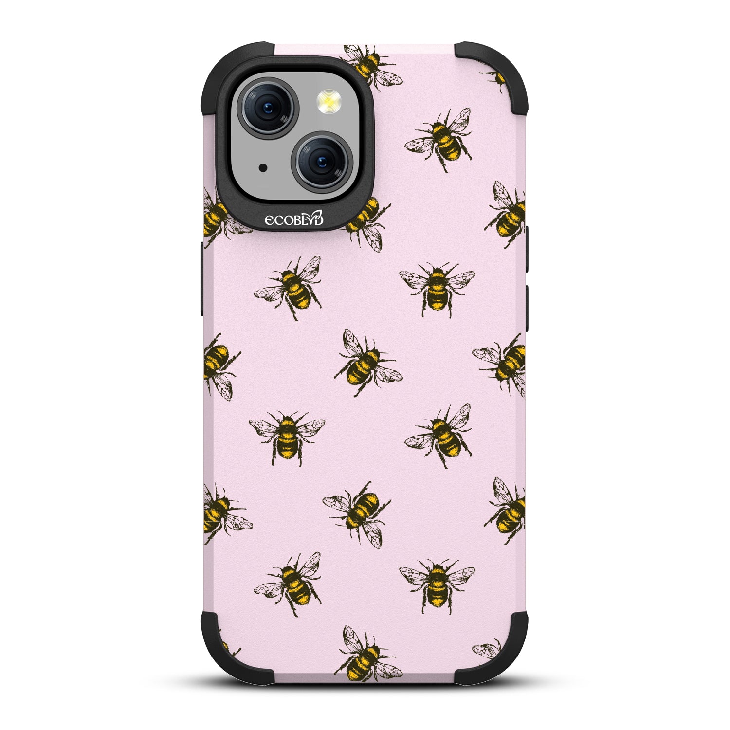 Give your phone a new reason to buzz, as the Bees design on our Mojave rugged and compostable iPhone 15 case features a group of busy bees flying around it. Available in five colorways: Midnight Black, Cascade Blue, Wildflower Pink, Illuminating Yellow, and the exclusive Pastel Lilac!