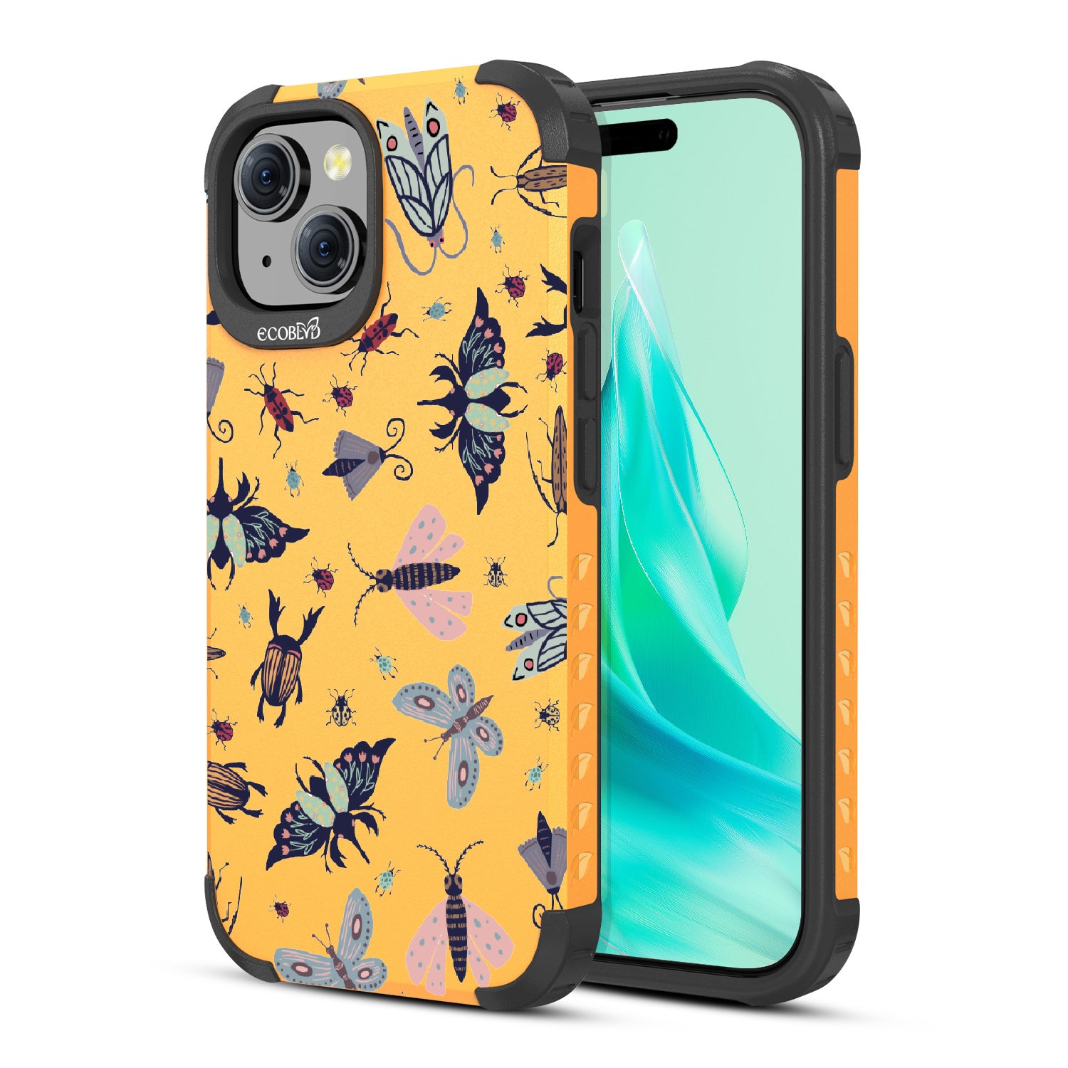 Want to make your phone stand out from the swarm? The Bug Out design on our Mojave rugged and compostable iPhone 15 case features a delightful array of whimsical insects, including fluttering butterflies and speedy dragonflies, that will keep you feeling playful and carefree in five captivating colors: Midnight Black, Cascade Blue, Wildflower Pink, Illuminating Yellow, and the exclusive Pastel Lilac!
