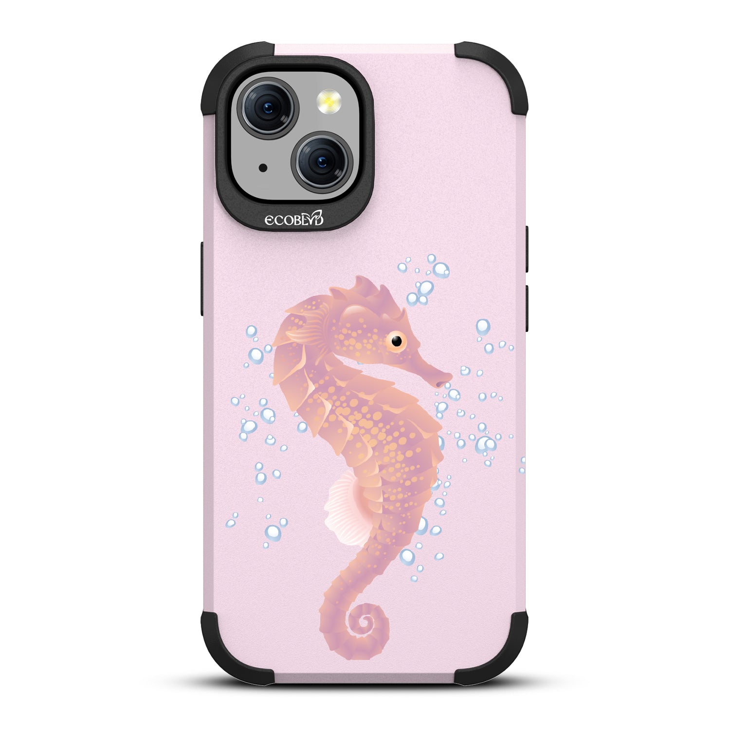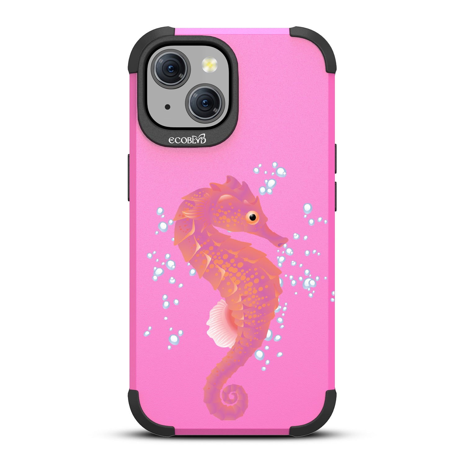 iPhone 15 MagSafe case! A seahorse leads the way, prancing through a stream of shimmering bubbles, turning your phone into the ultimate sea steed. With this design, you’re always in the winner’s circle.