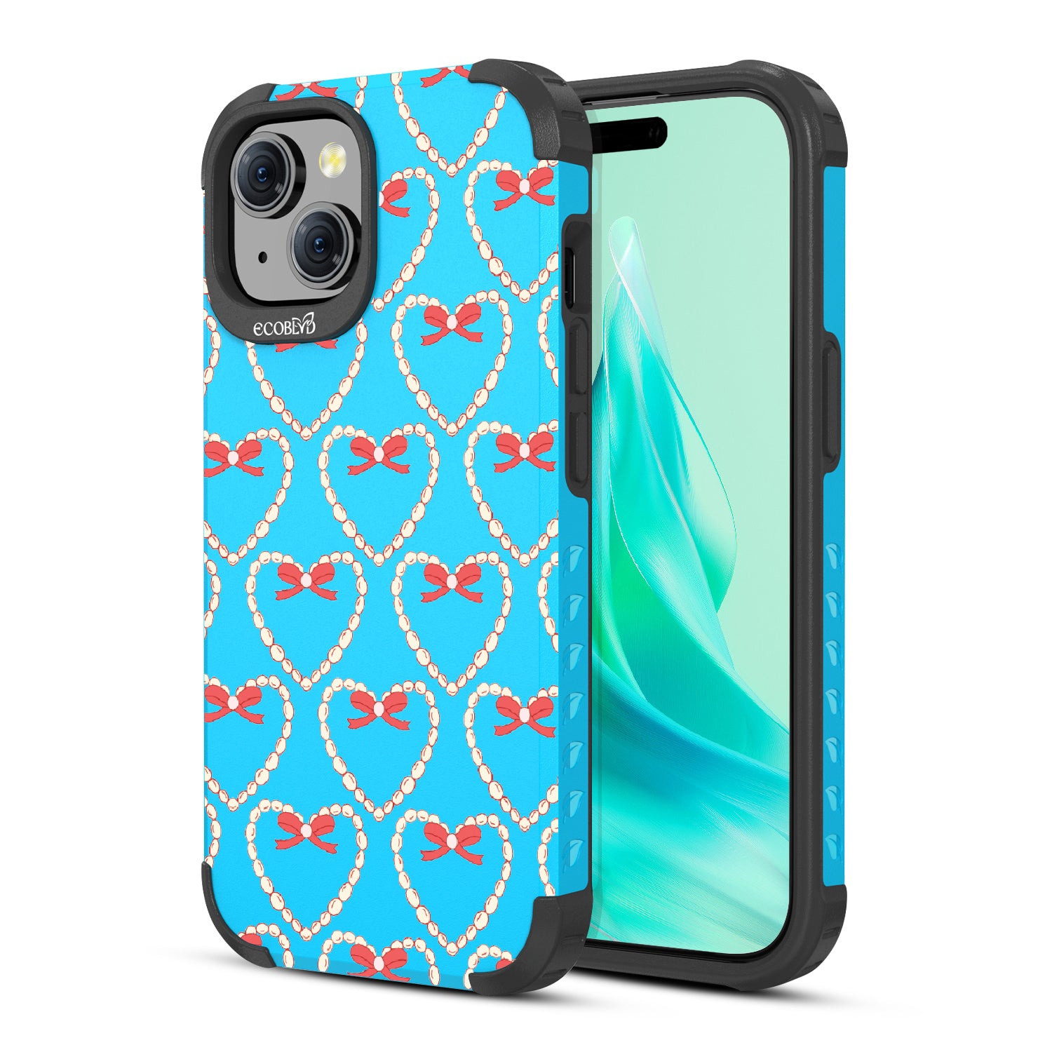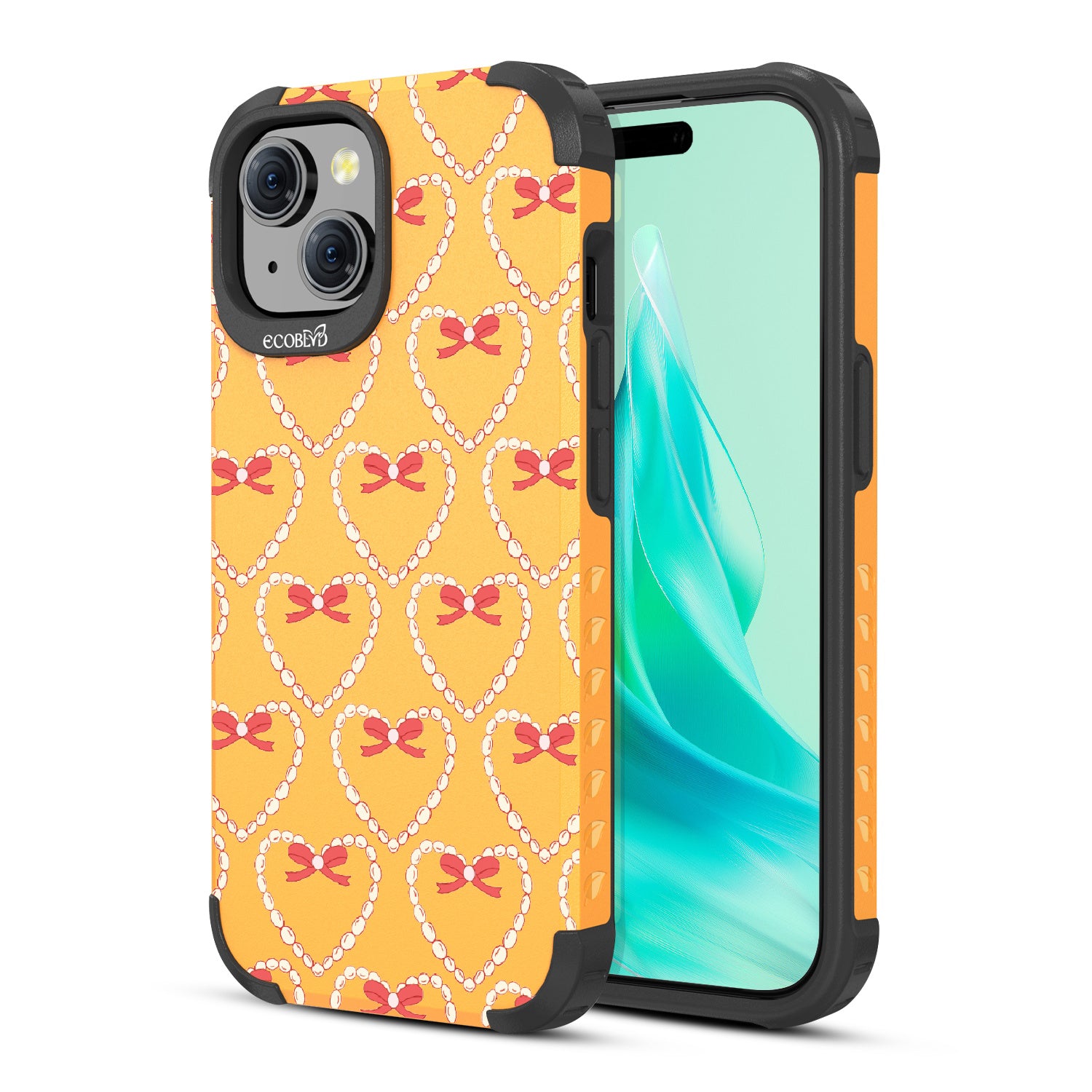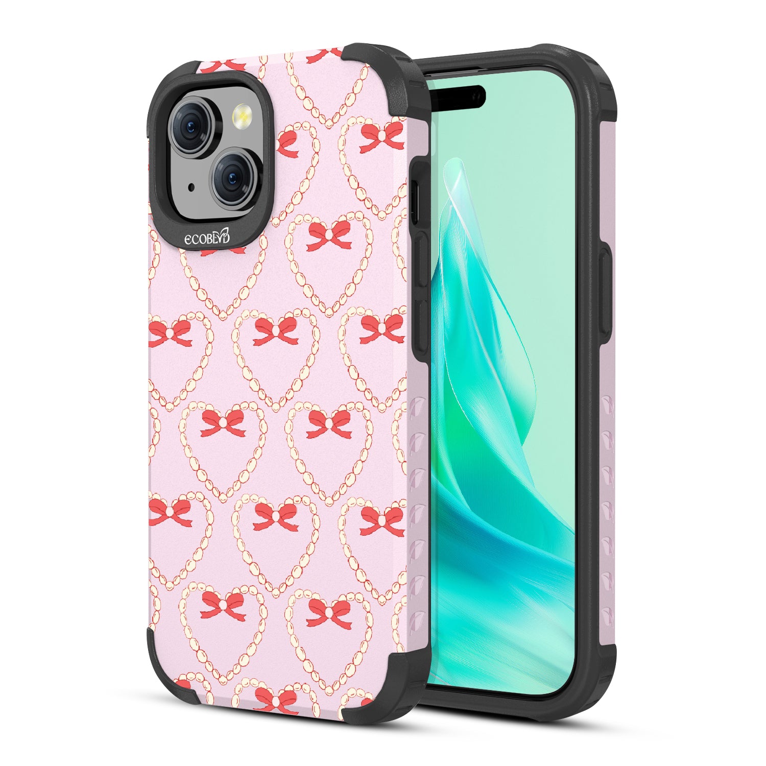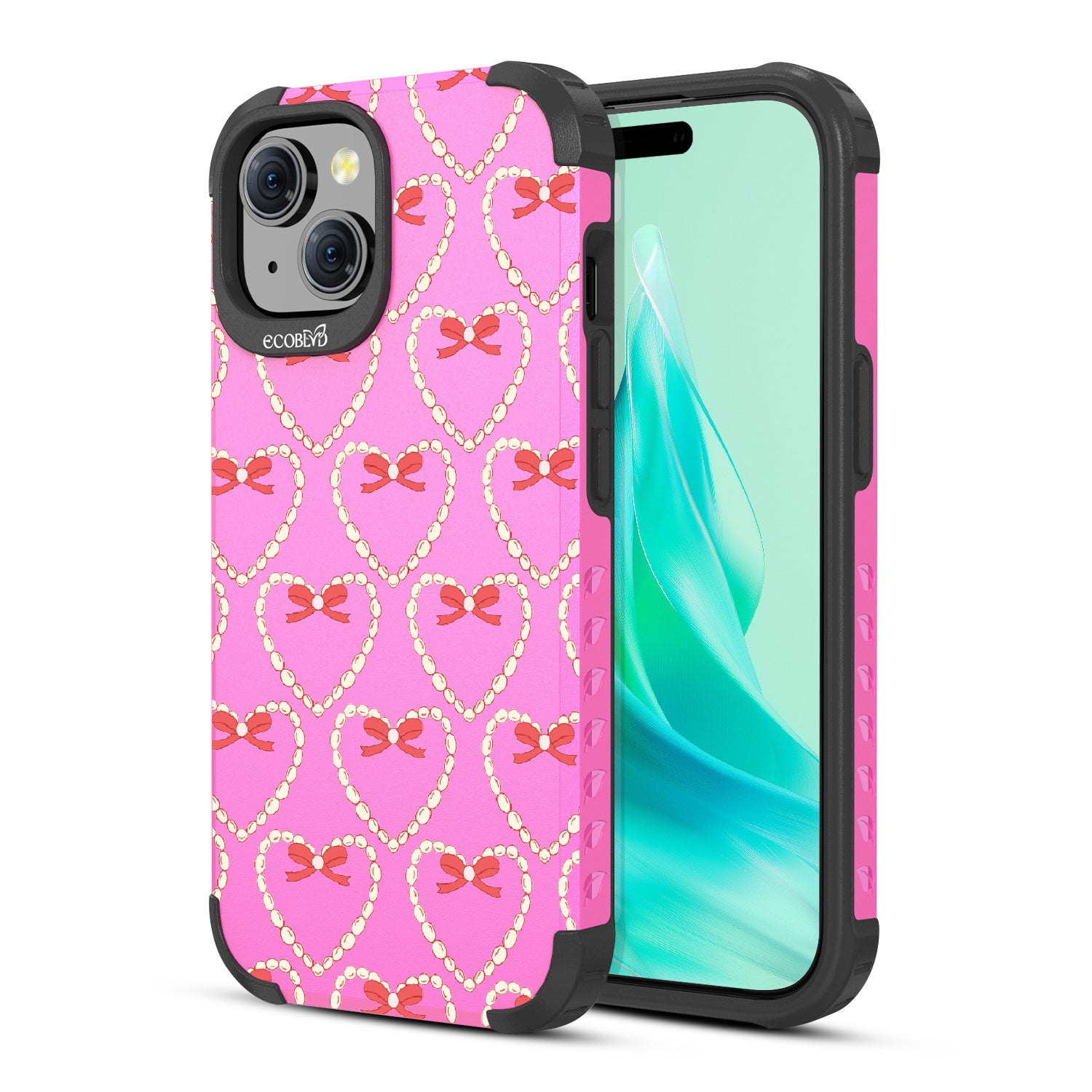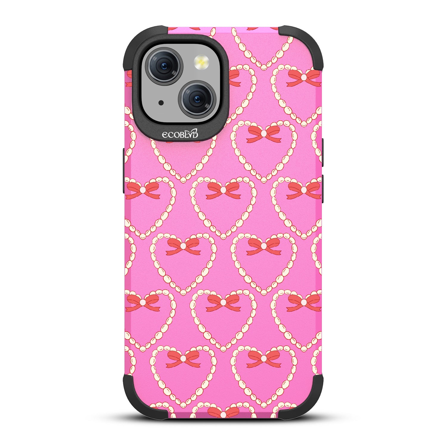 Tug at your Heartstrings with this beautifully crafted design on Mojave rugged iPhone 15 MagSafe case, featuring delicate pearls and coquettish bows arranged in heart shapes. Let your phone strum the chords of elegance with this captivating pattern. Each heart-shaped detail will make your style sing in love songs.