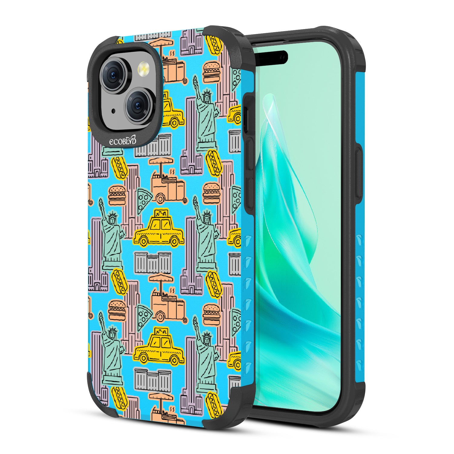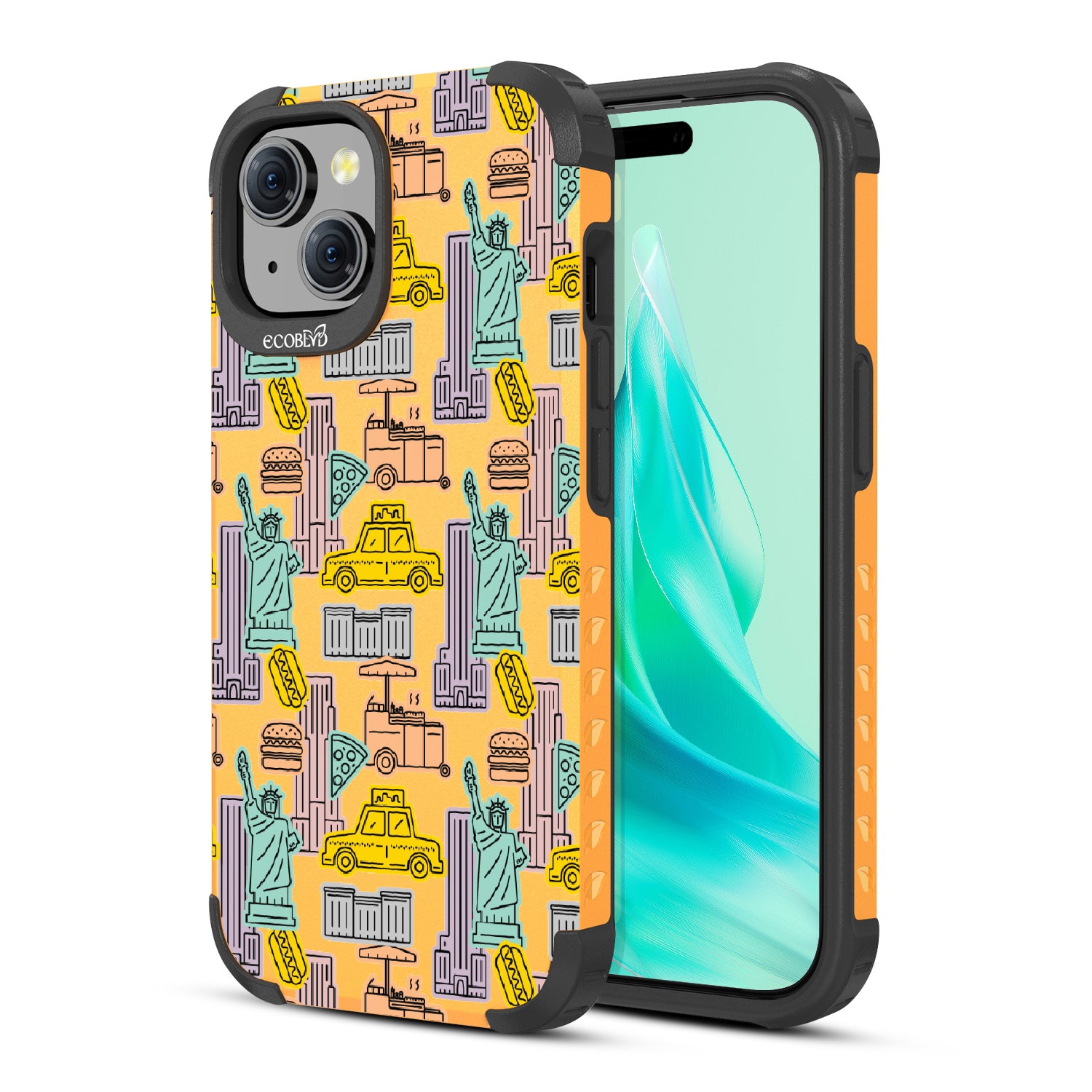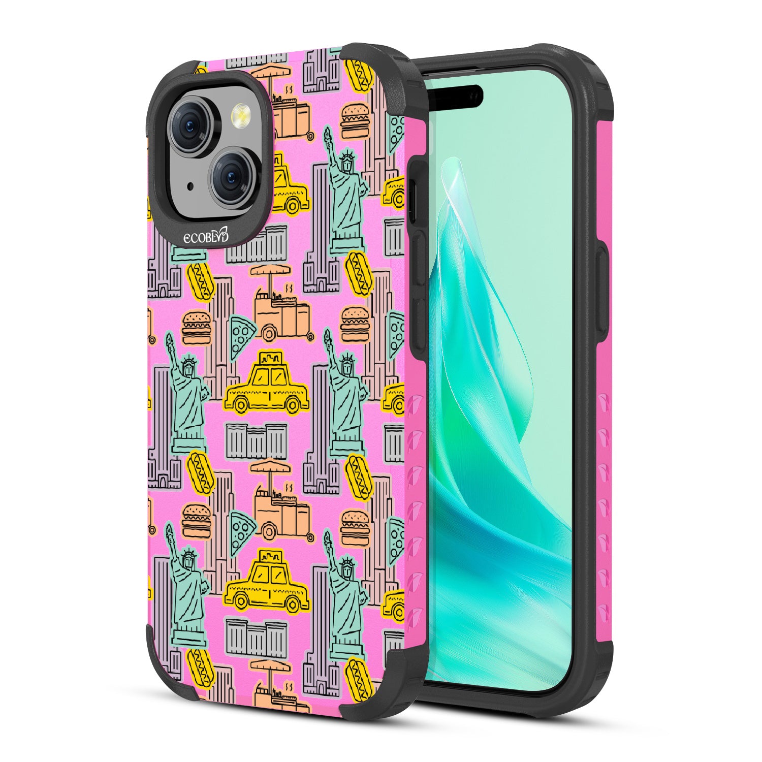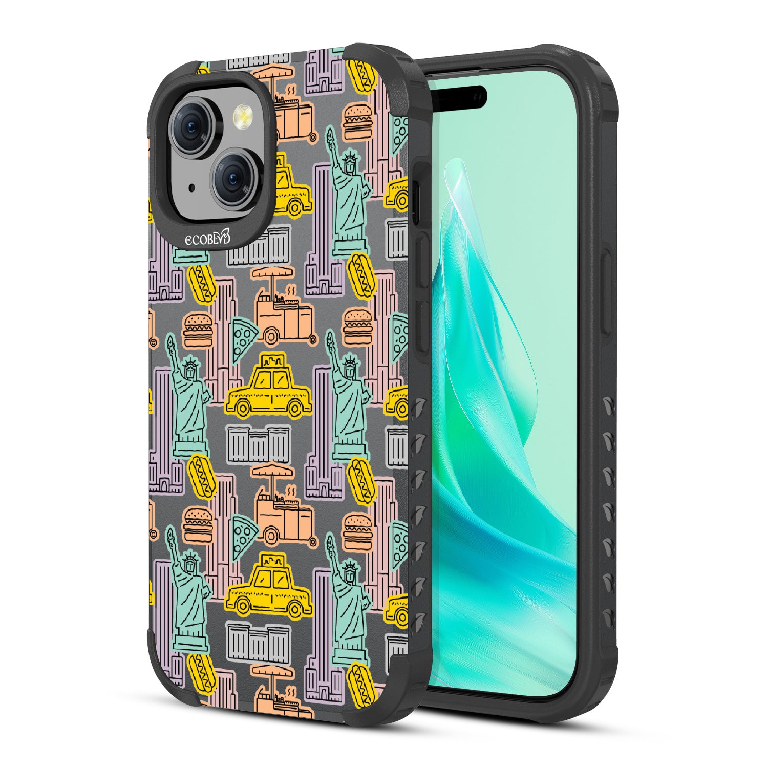 Capture the buzz of the city that never sleeps with the New York Minute design on our Mojave rugged iPhone 15 MagSafe case. It's a slice of the Big Apple, with iconic yellow cabs, steaming hotdogs, and Lady Liberty herself, all wrapped up in that unmistakable NYC rhythm.