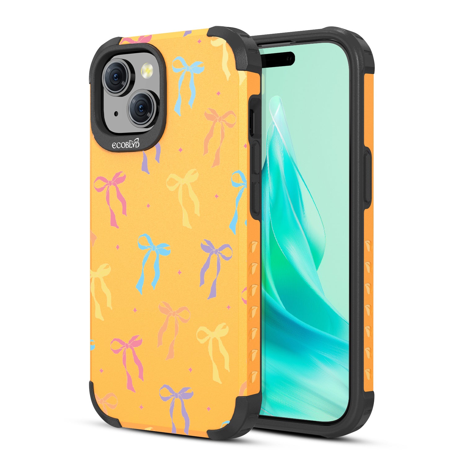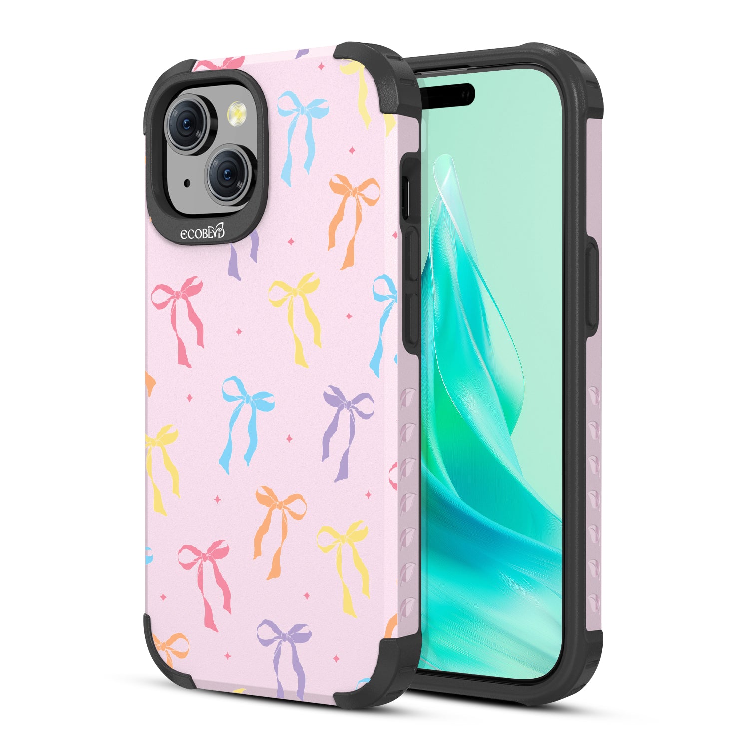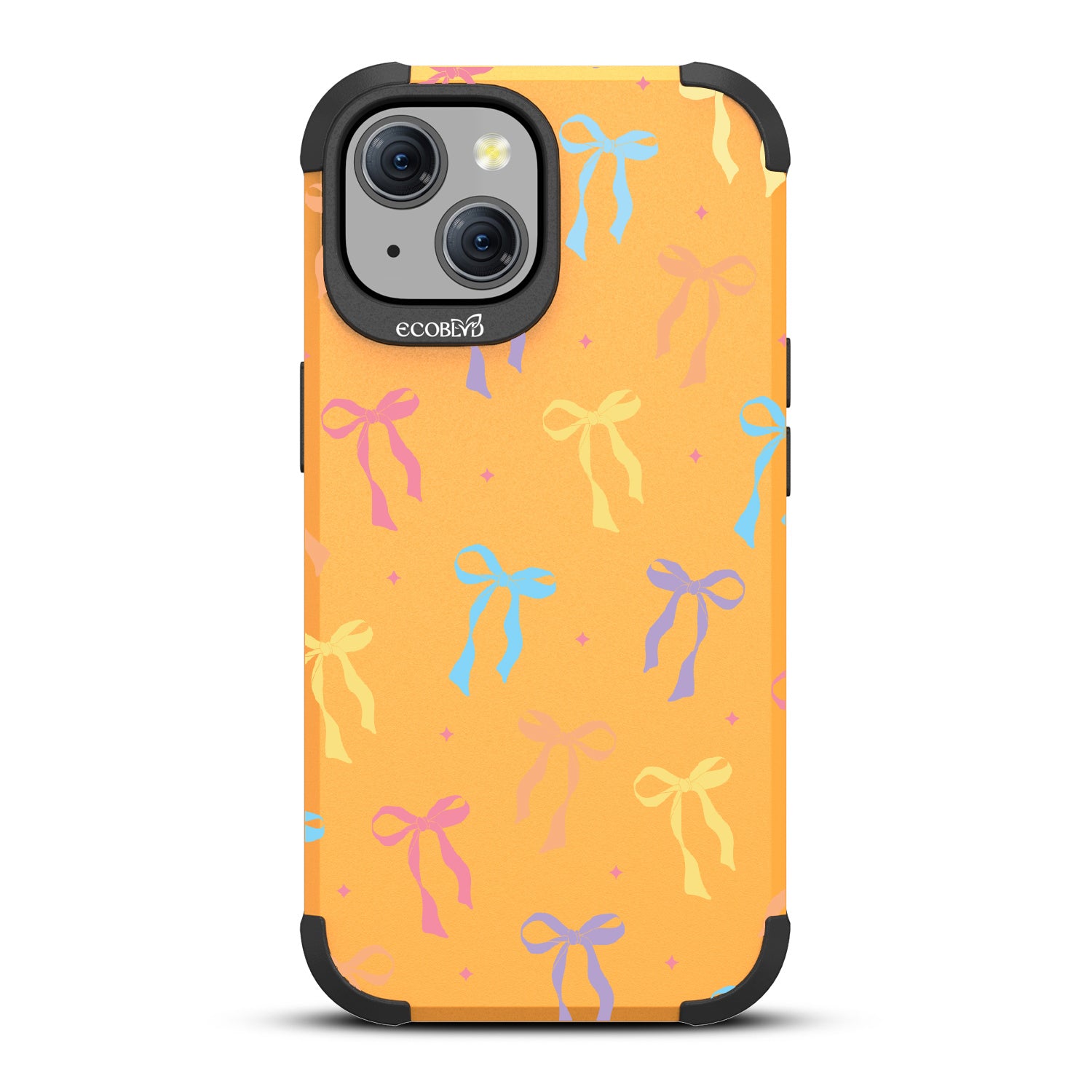 iPhone 15 MagSafe case. Showcasing pastel bows that seem to float effortlessly on a delicate backdrop, this design brings a flirty, soft girl aesthetic to your phone, making it a perfect accessory for expressing your playful and sophisticated side. Choose Ribbon Dreams and let your phone reflect your dreamiest, most charming self.