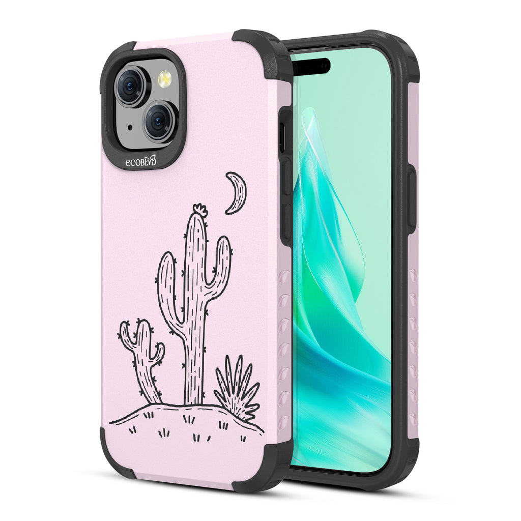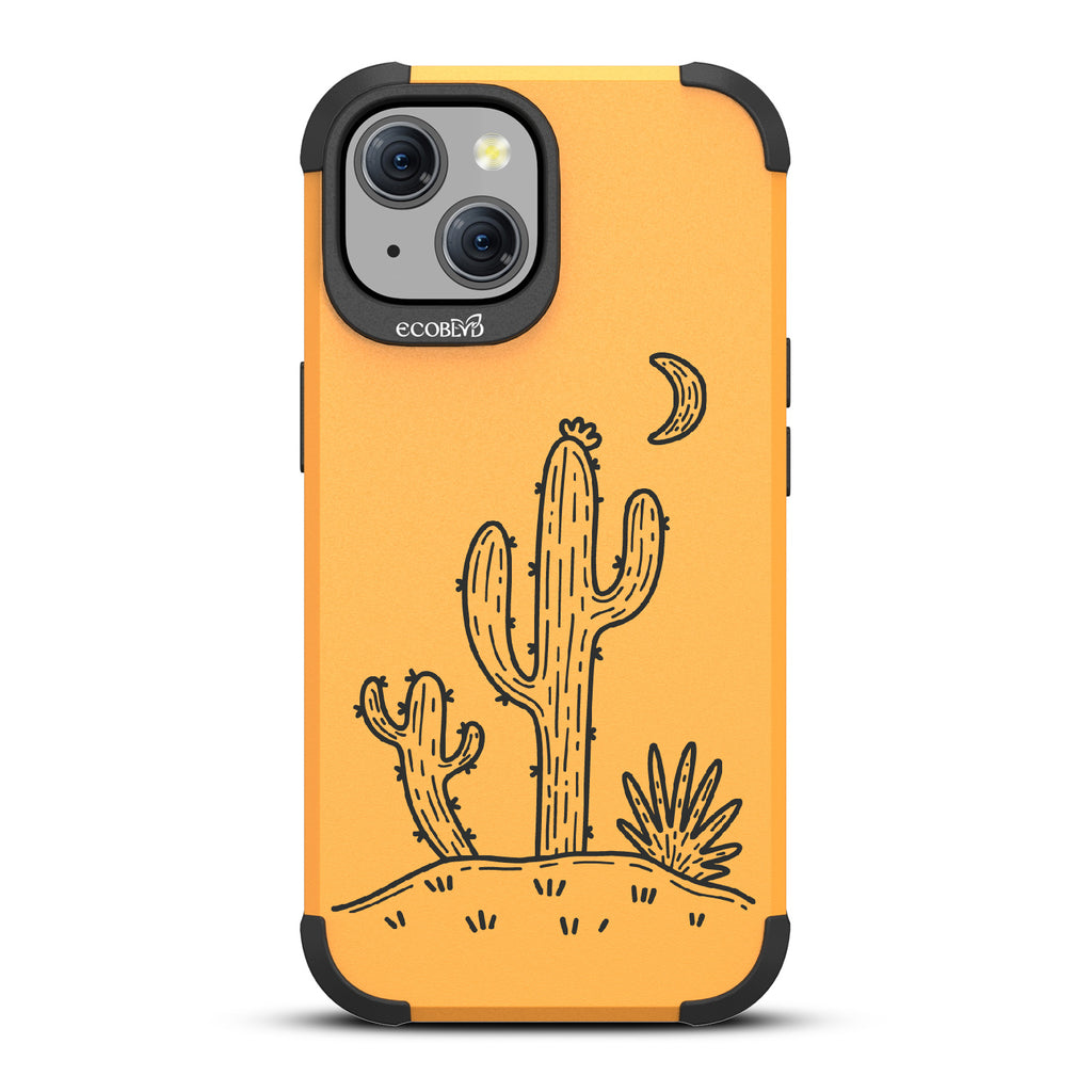 Lose yourself in the allure of the desert, where cacti stand guard, the tumbleweeds roll, and the night sky is woven with the moon's enchanting spell. The exclusive Sagebrush design on our Mojave rugged and compostable iPhone 15 case strikes a harmonious balance between timeless allure and contemporary flair, transforming your phone into a symbol of wanderlust and uncharted exploration. Available in five colorways: Midnight Black, Cascade Blue, Wildflower Pink, Illuminating Yellow, and the exclusive Pastel Lilac!