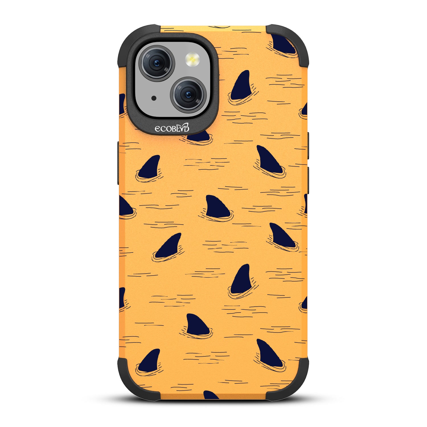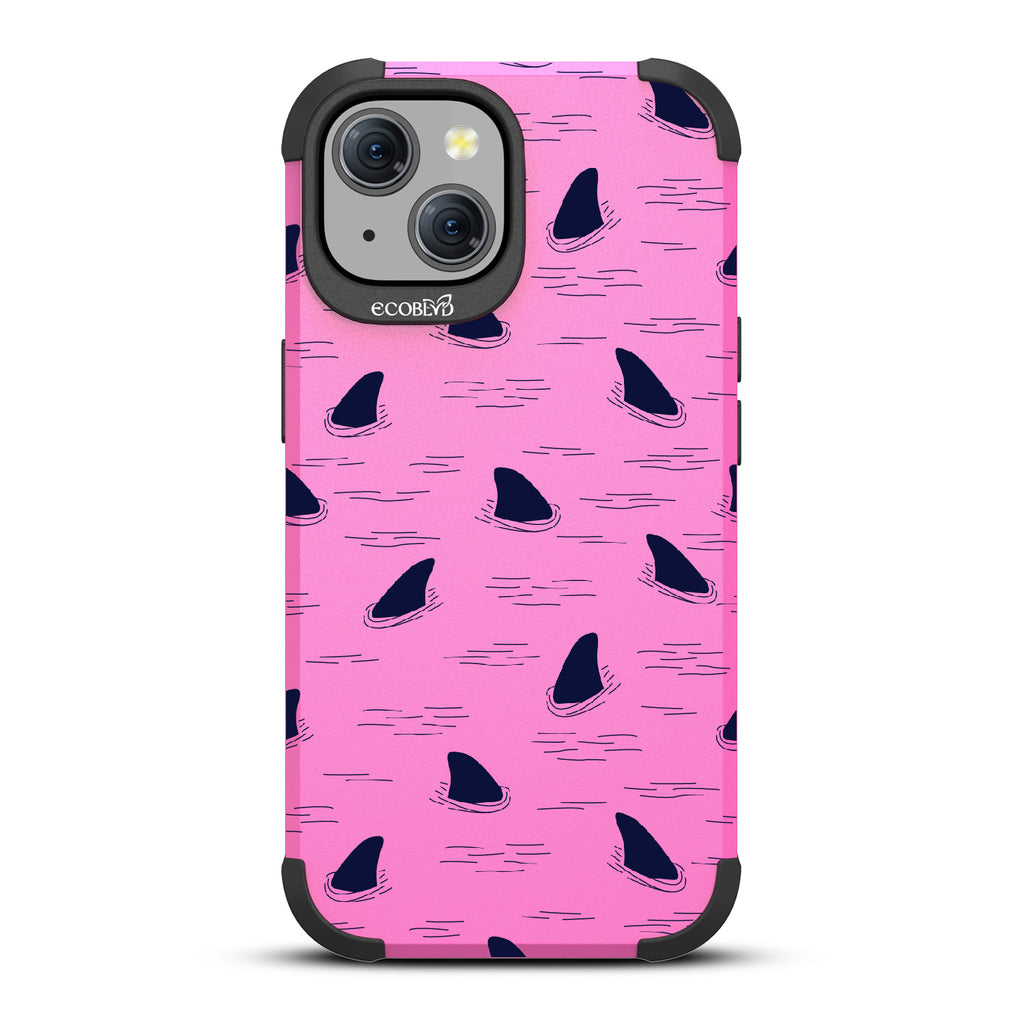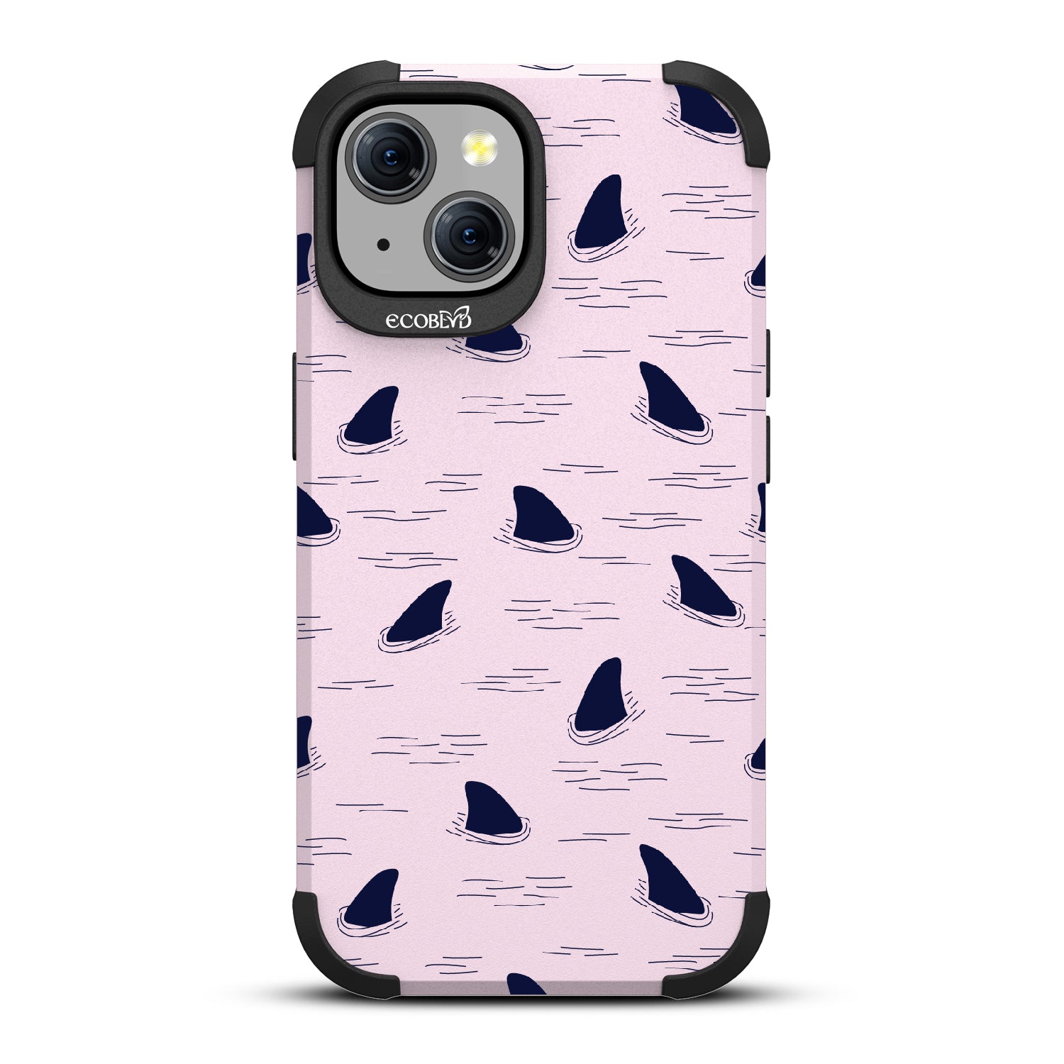 You never know what could be lurking around your phone as the Shark Fin design on our Mojave rugged and compostable iPhone 15 case surrounds it with an adrenaline-pumping look that shows off your fearless side and your bold spirit - brave enough to swim with sharks. Available in five colorways: Midnight Black, Cascade Blue, Wildflower Pink, Illuminating Yellow, and the exclusive Pastel Lilac!