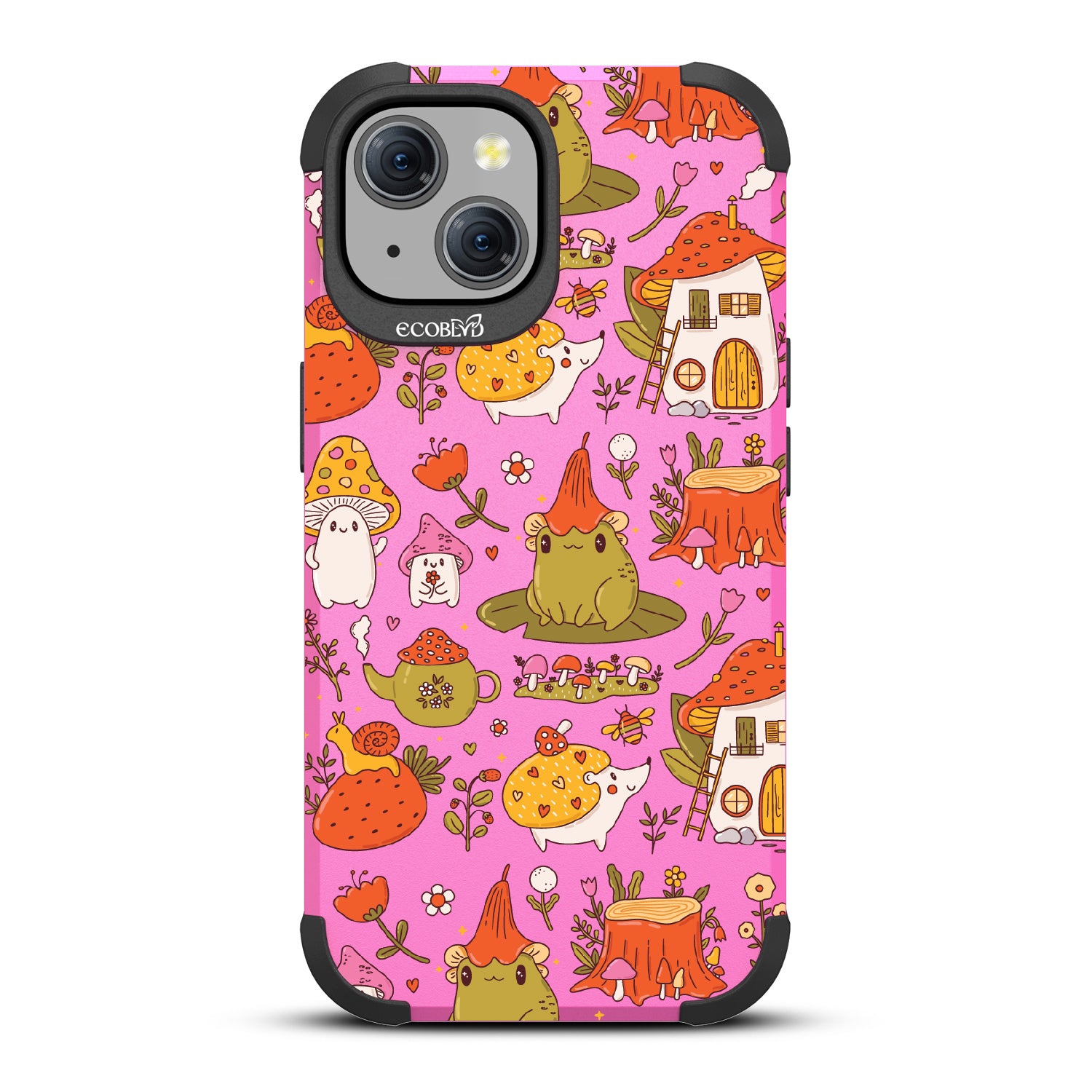 The Whimsy Woods design on our Mojave rugged iPhone 15 MagSafe case invites you to step into a whimsical wonderland where each tree holds a secret, and every path leads to adventure. Frolic alongside woodland creatures as they get lost among the toadstools, and let the magic of this enchanting forest ignite your imagination.
