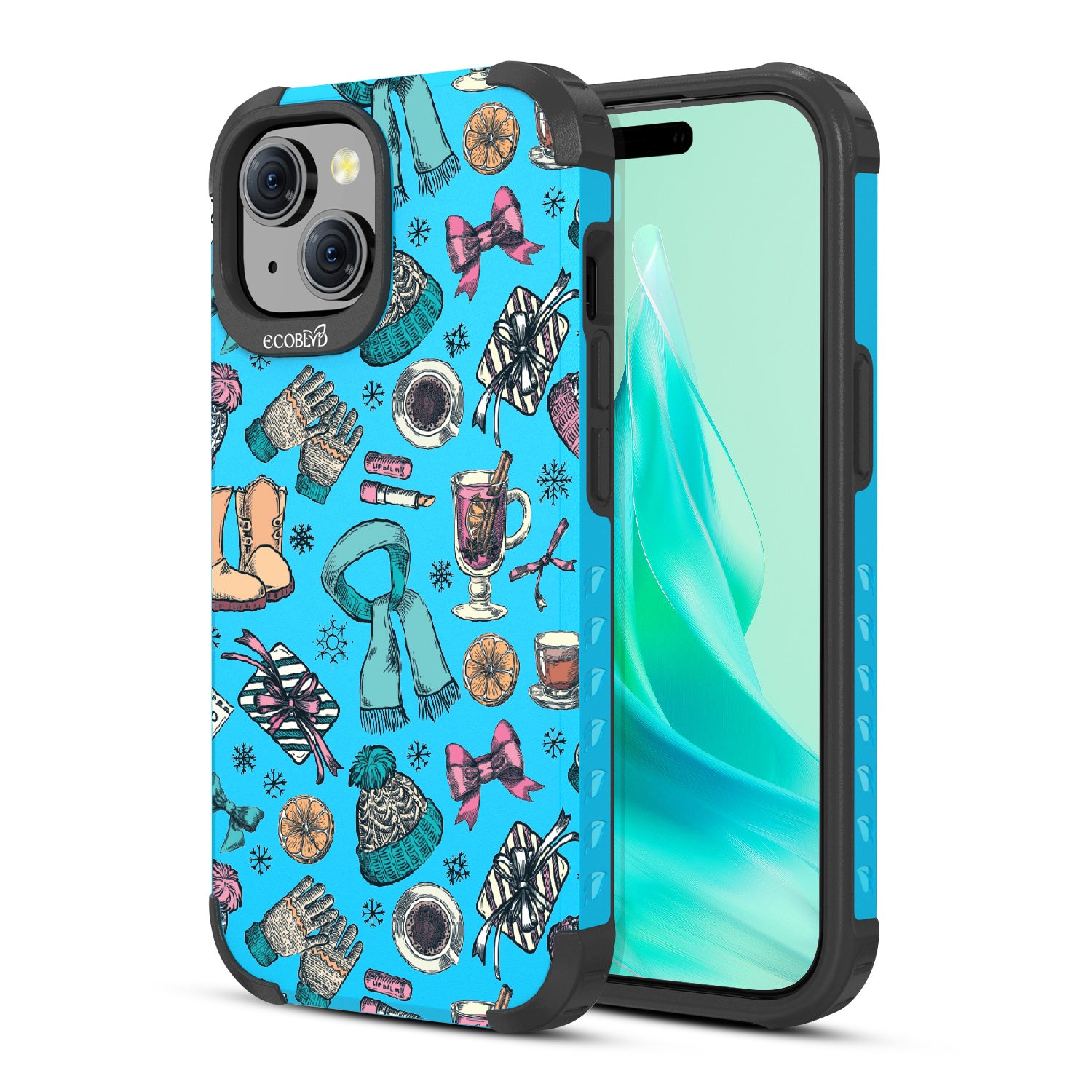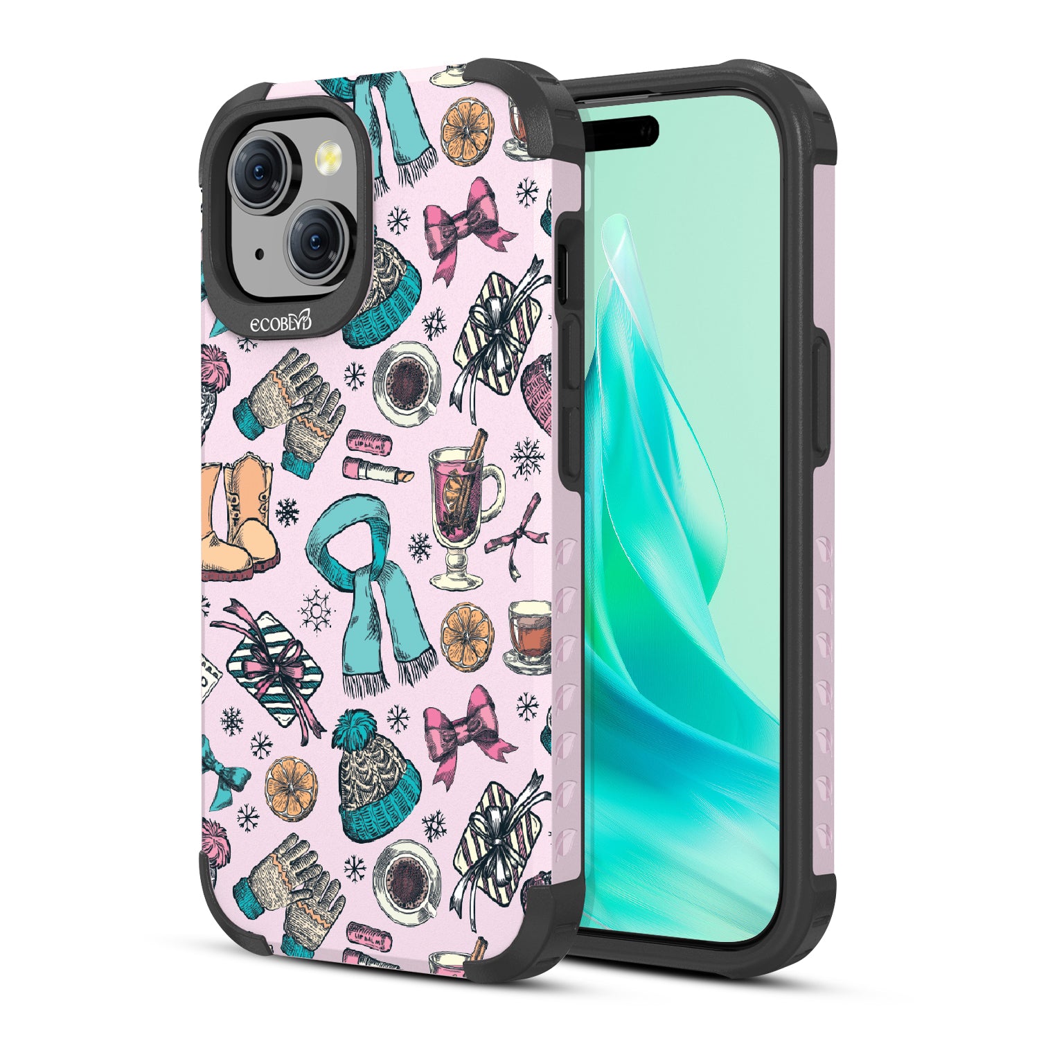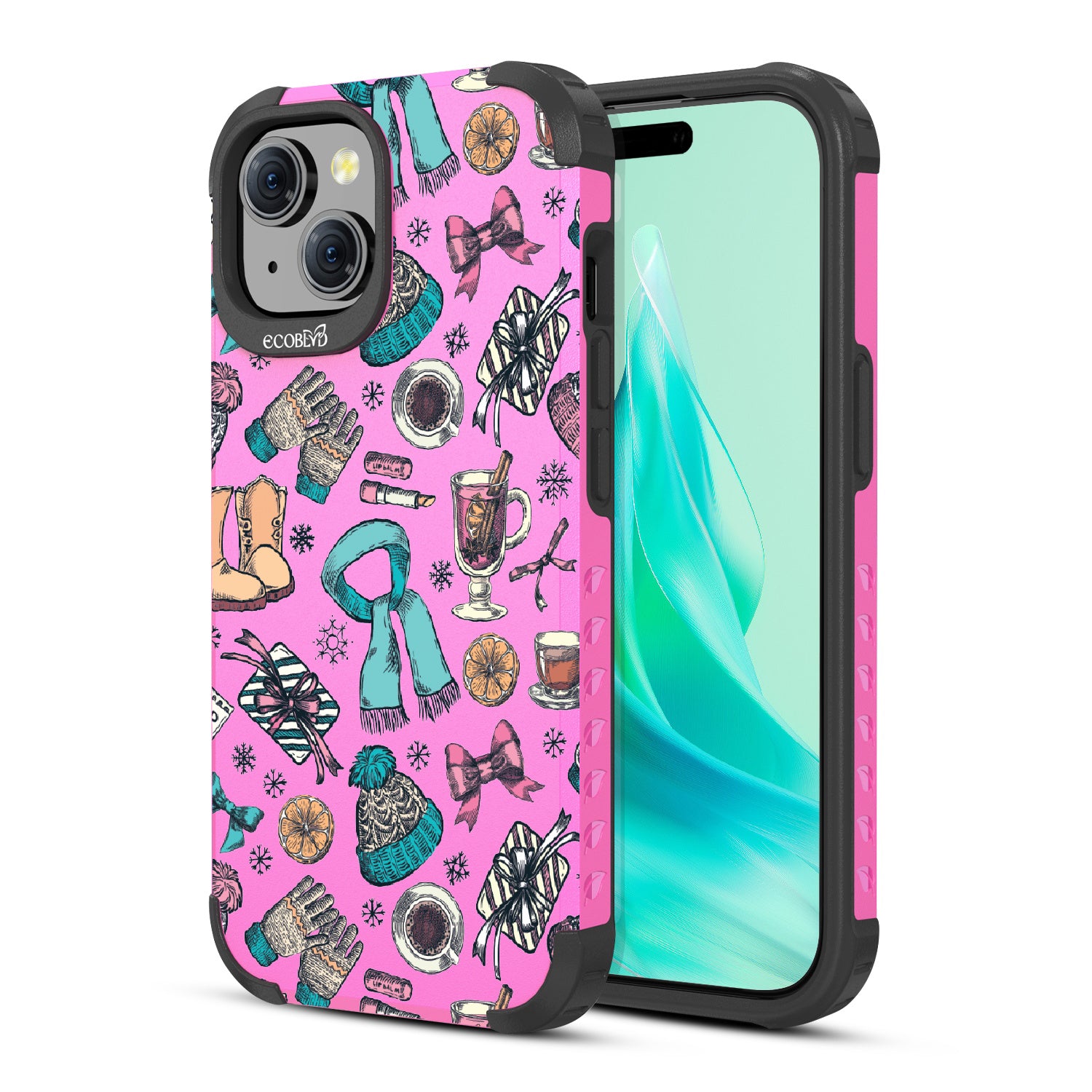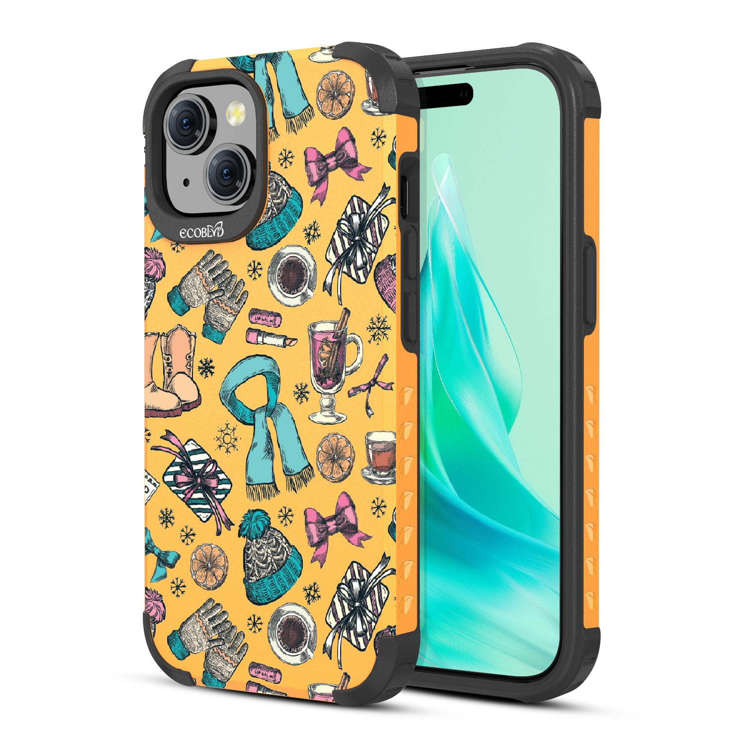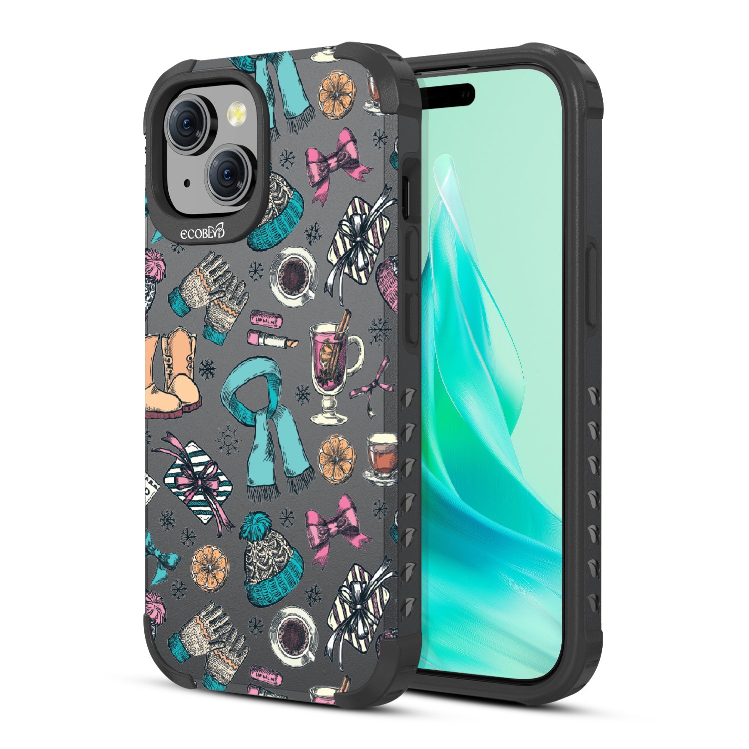 Keeping your phone warm this time of year has never been easier thanks to the Winter Essentials design on our Mojave rugged and compostable iPhone 15 MagSafe case, which includes beanies, scarves, mittens, furry boots, and hot drinks always at your fingertips.