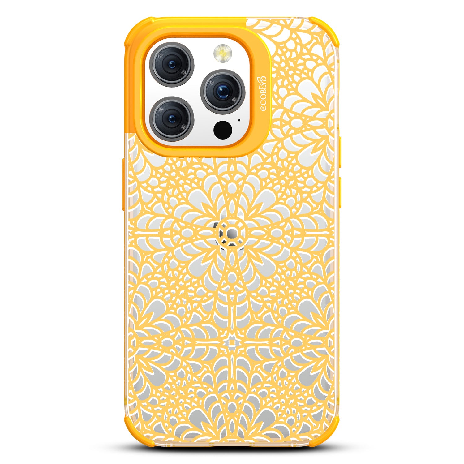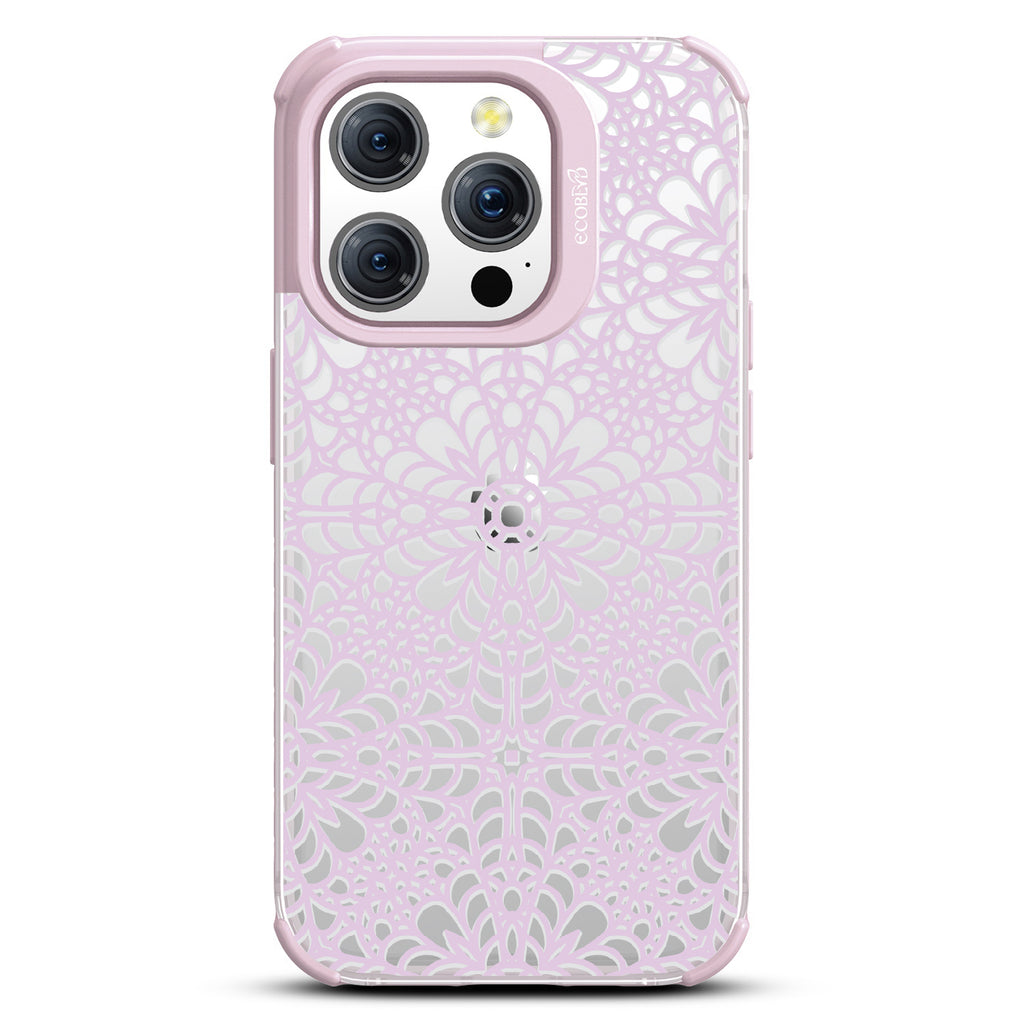 Immerse yourself in the elegance of the A Lil' Dainty clear iPhone 15 Pro case. Designed to honor the splendor of coastal waters, this phone case exudes sophistication with its delicate lace and tapestry-like patterns, available in five enchanting colors: Midnight Black, Cascade Blue, Pastel Lilac, Illuminating Yellow, and Wildflower Pink.