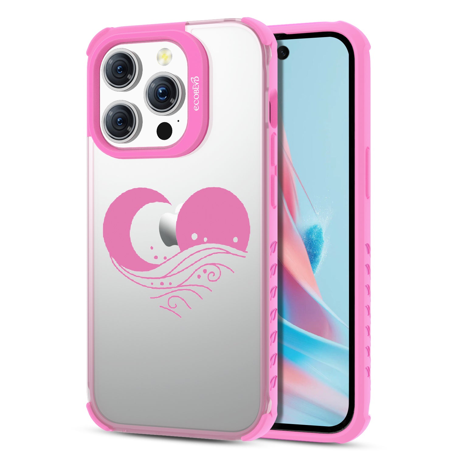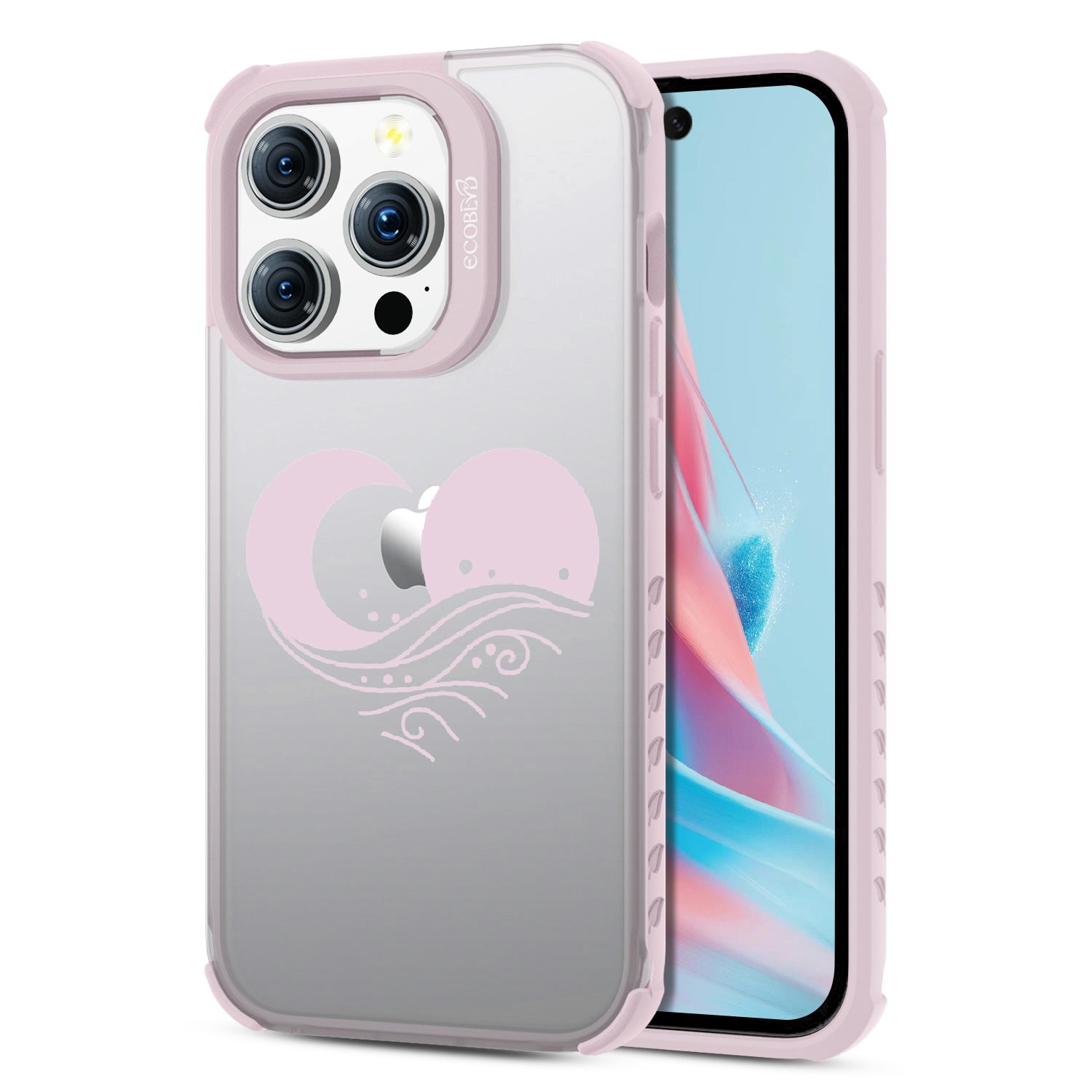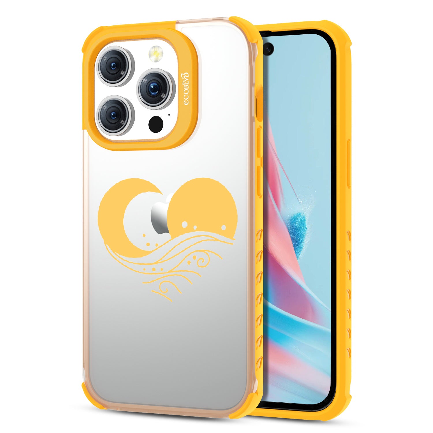 A perfect balance between light and dark, day and night, keeps the Eternal Wave design on our Laguna clear iPhone 15 Pro case going and covers your phone in complete harmony as they come together, forming a heart across five vibrant colors: Midnight Black, Cascade Blue, Pastel Lilac, Illuminating Yellow, and Wildflower Pink.