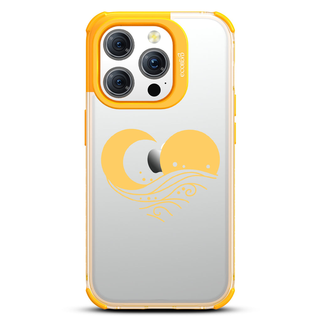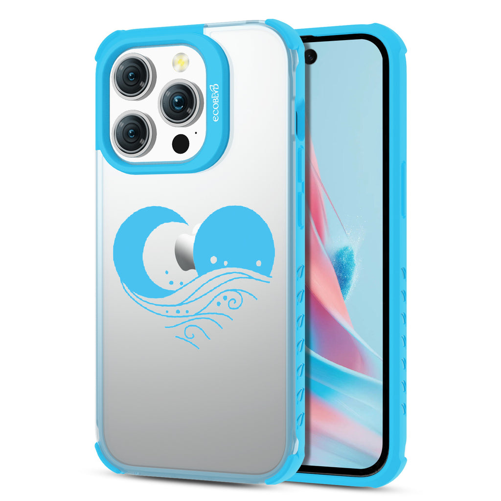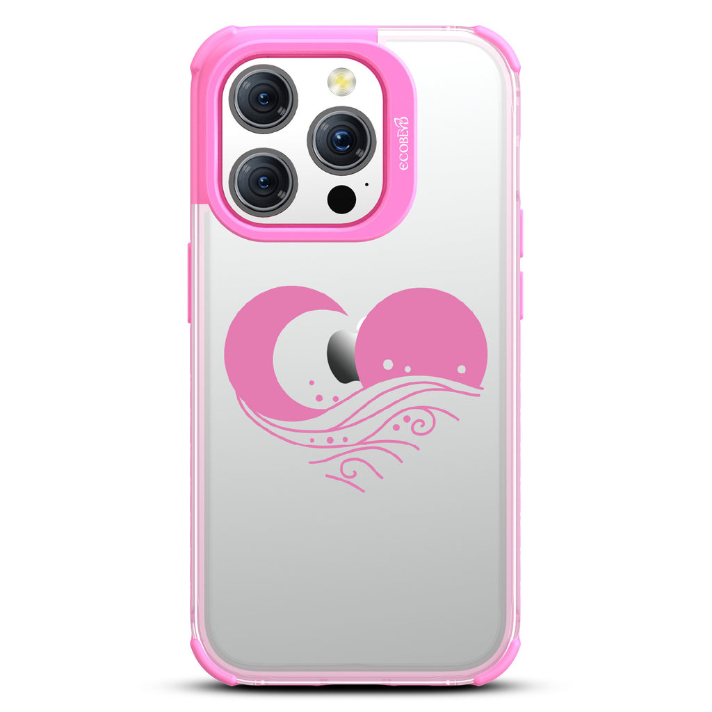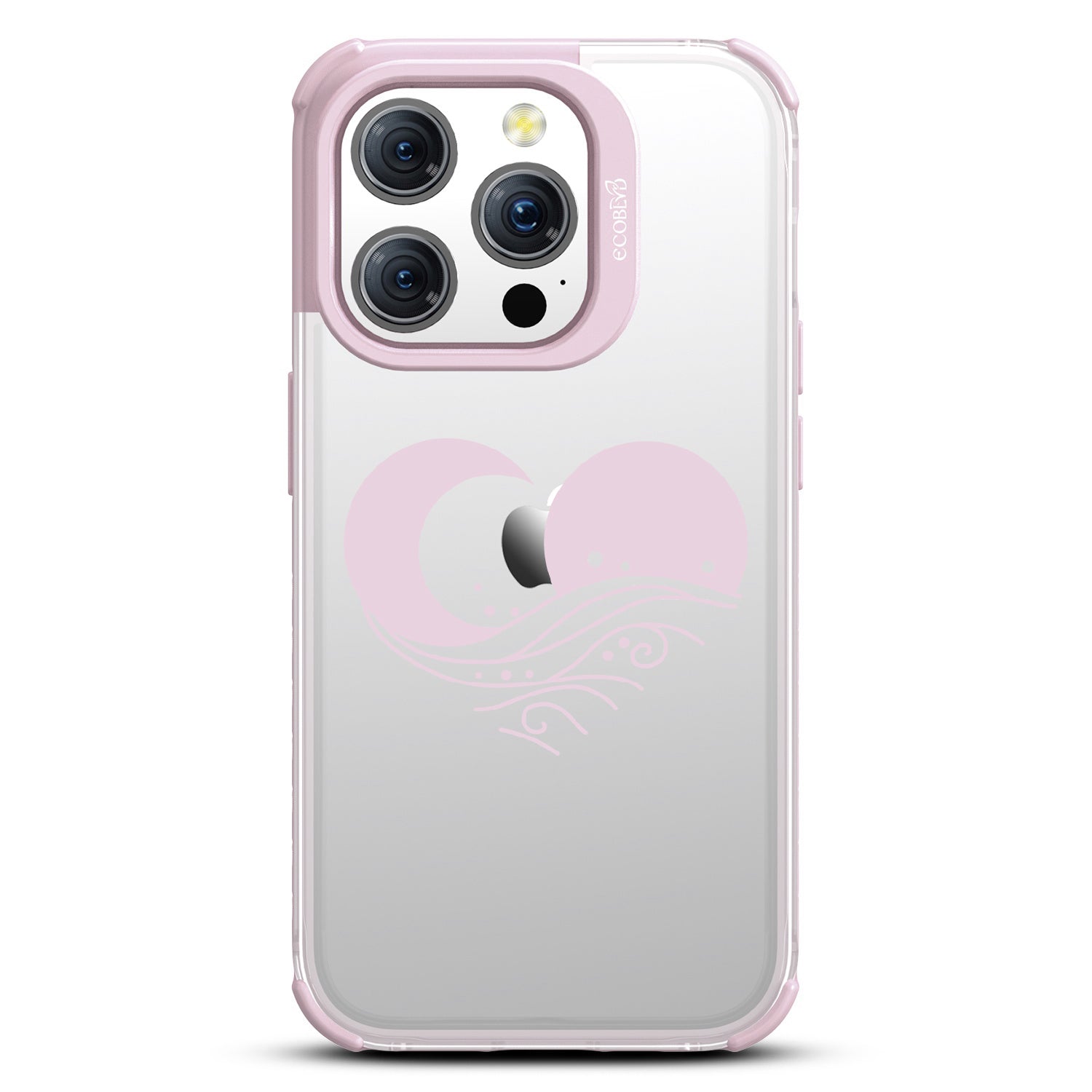 A perfect balance between light and dark, day and night, keeps the Eternal Wave design on our Laguna clear iPhone 15 Pro case going and covers your phone in complete harmony as they come together, forming a heart across five vibrant colors: Midnight Black, Cascade Blue, Pastel Lilac, Illuminating Yellow, and Wildflower Pink.