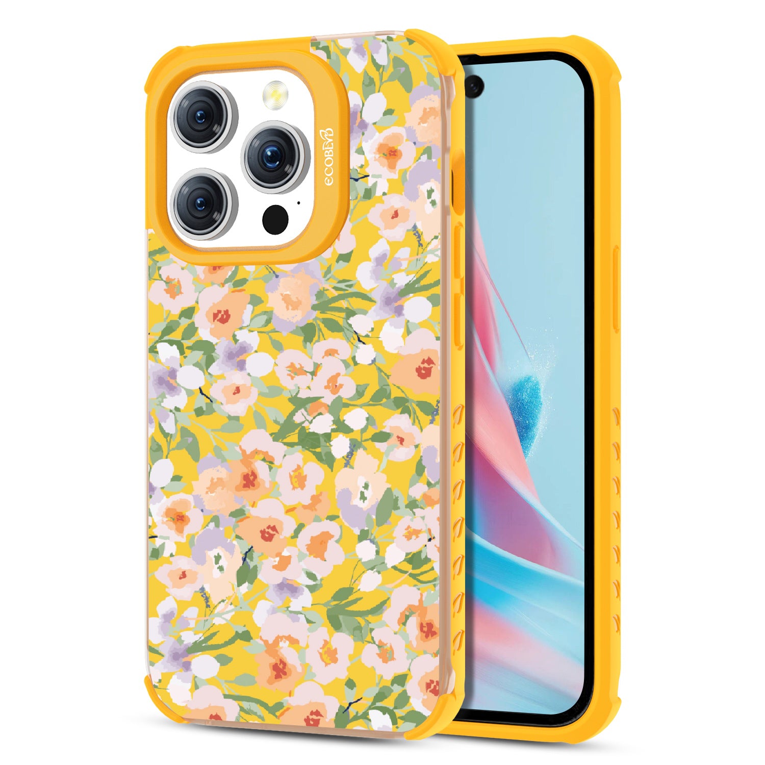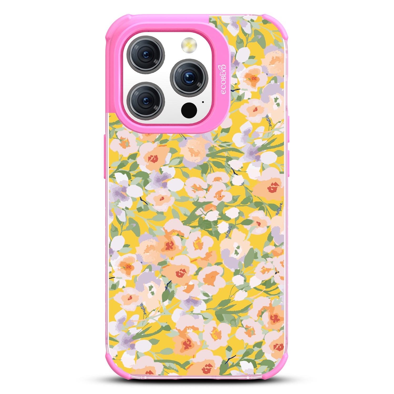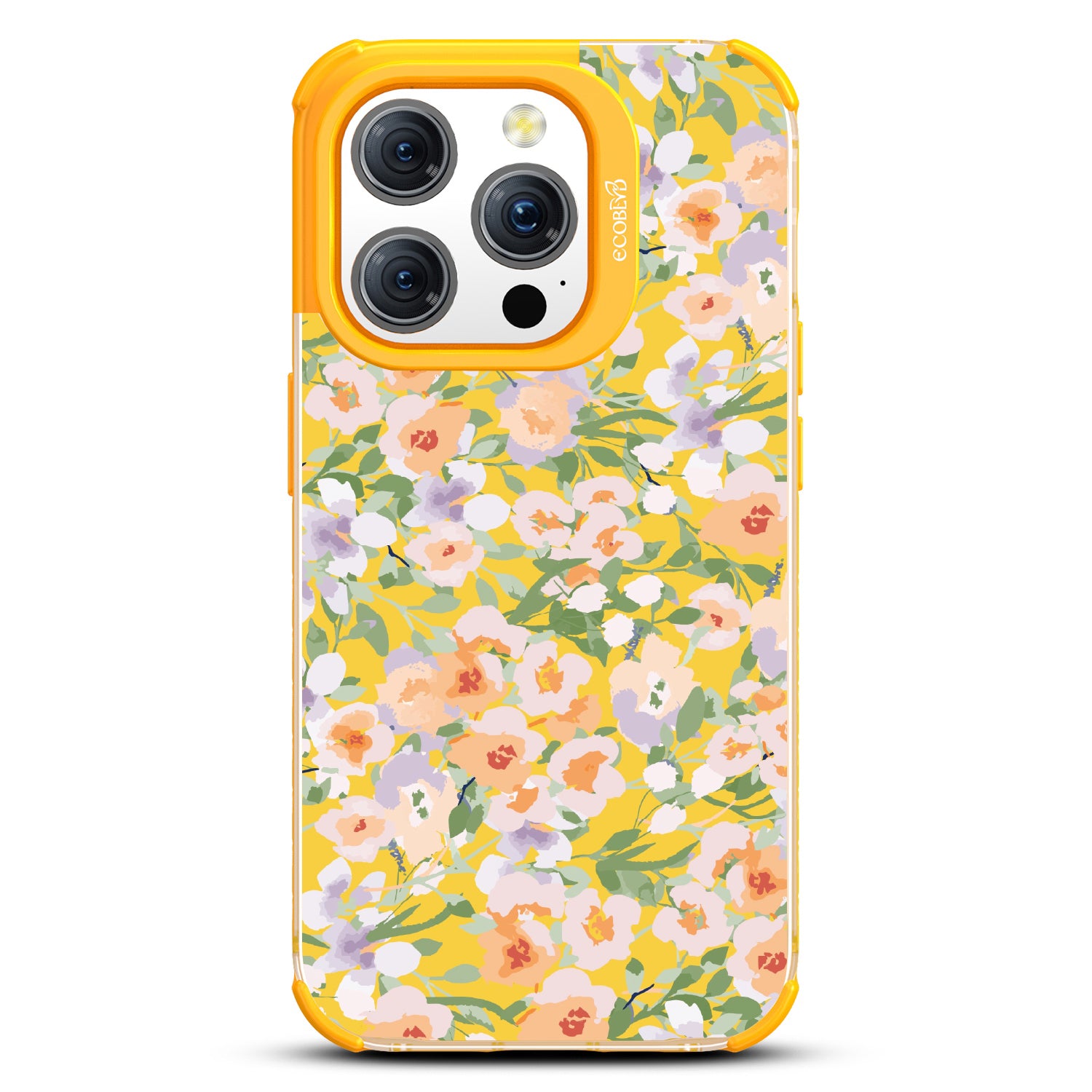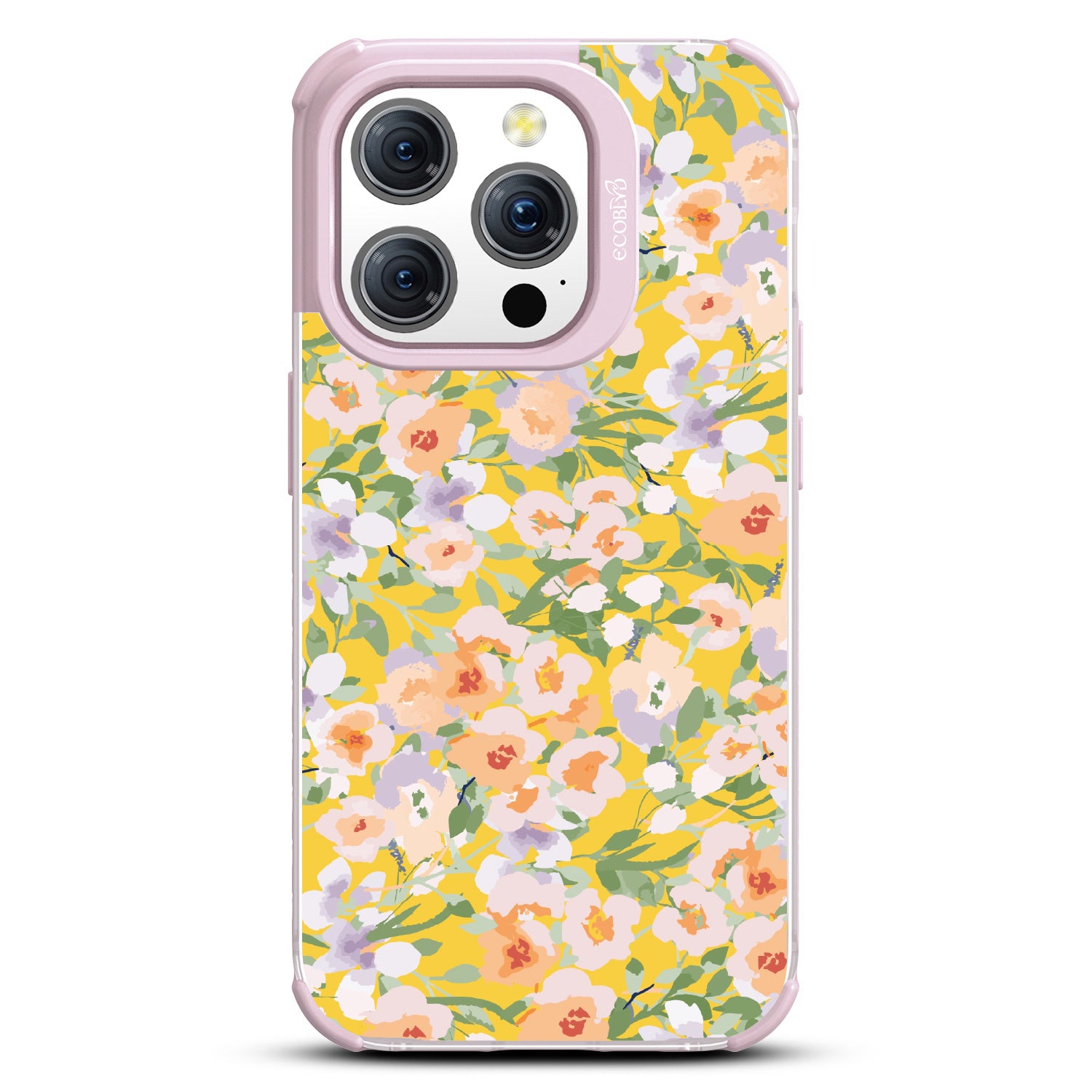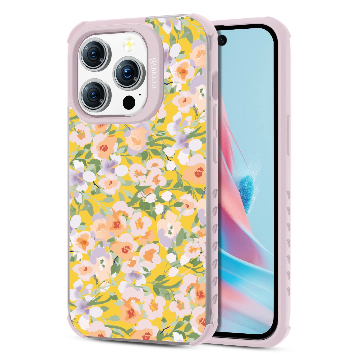 The sun paints with light, and flowers carry the glow. The Flourish & Shine design on our Laguna clear iPhone 15 Pro case blends sweeping yellows, peachy petals, and airy greens in soft, expressive brushstrokes. A composition that radiates warmth, movement, and the quiet brilliance of nature’s palette.