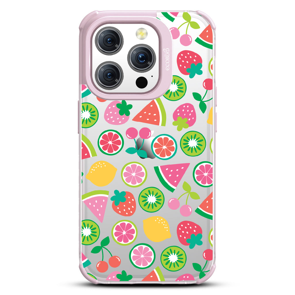 Savor the juicy goodness of summer with the Juicy Fruit design on our Laguna clear iPhone 15 Pro phone case, a delightful blend of vibrant fruits that will quench your style thirst. From the juicy watermelon to the tangy lemon, zesty lime, tropical guava, refreshing kiwi, luscious strawberries, and succulent cherries, this case is a juicy treat for your eyes. This phone case is a reminder to see the juicy side of life, to add a pop of fruity freshness to your style, and to use your phone to start juicy conversations.