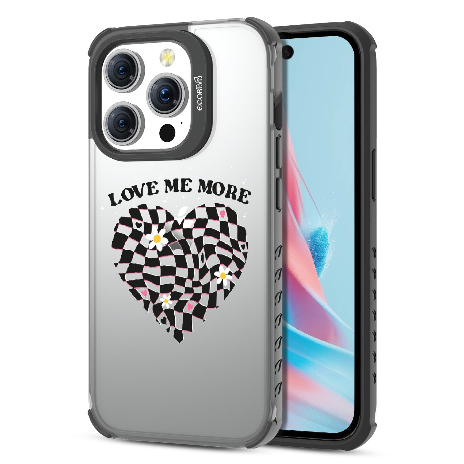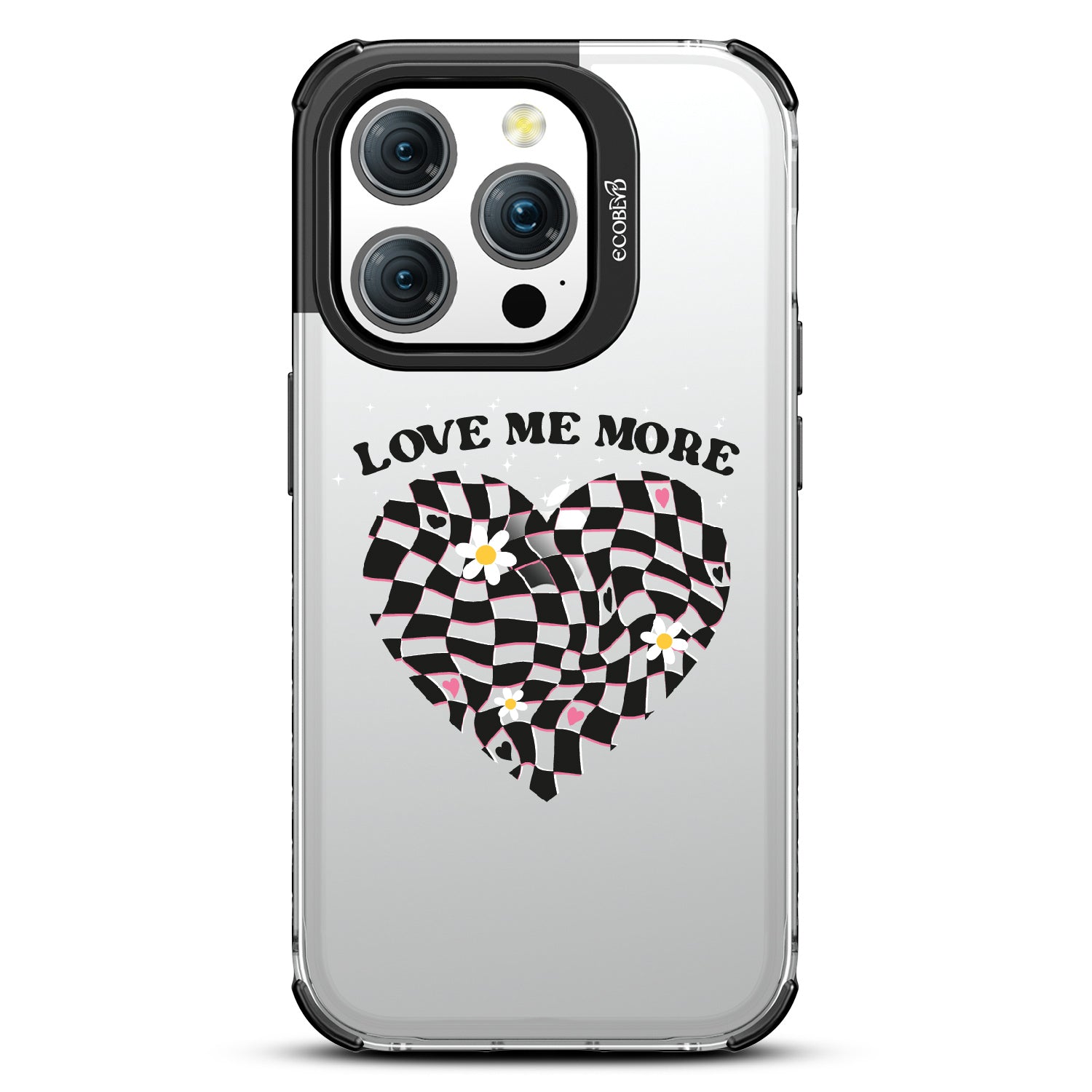 On our Laguna clear iPhone 15 Pro phone case, Love Me More intricately portrays the language of desire, with a checkered heart adorned by an intoxicating symphony of blossoms. The patterns speak volumes of yearnings, while the text passionately conveys the plea for more passion, leaving an indelible mark that echoes "Forever in Your Heart."