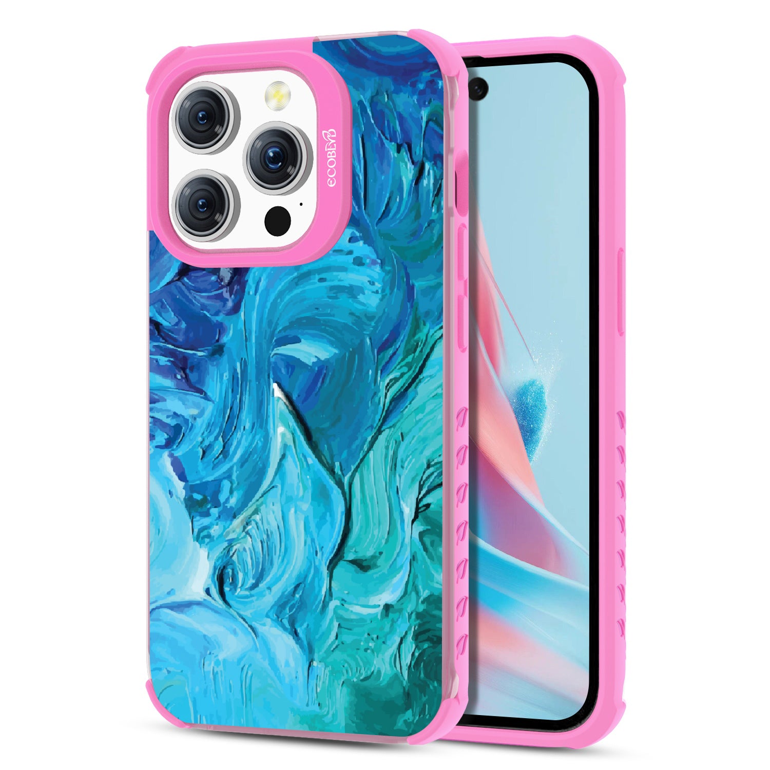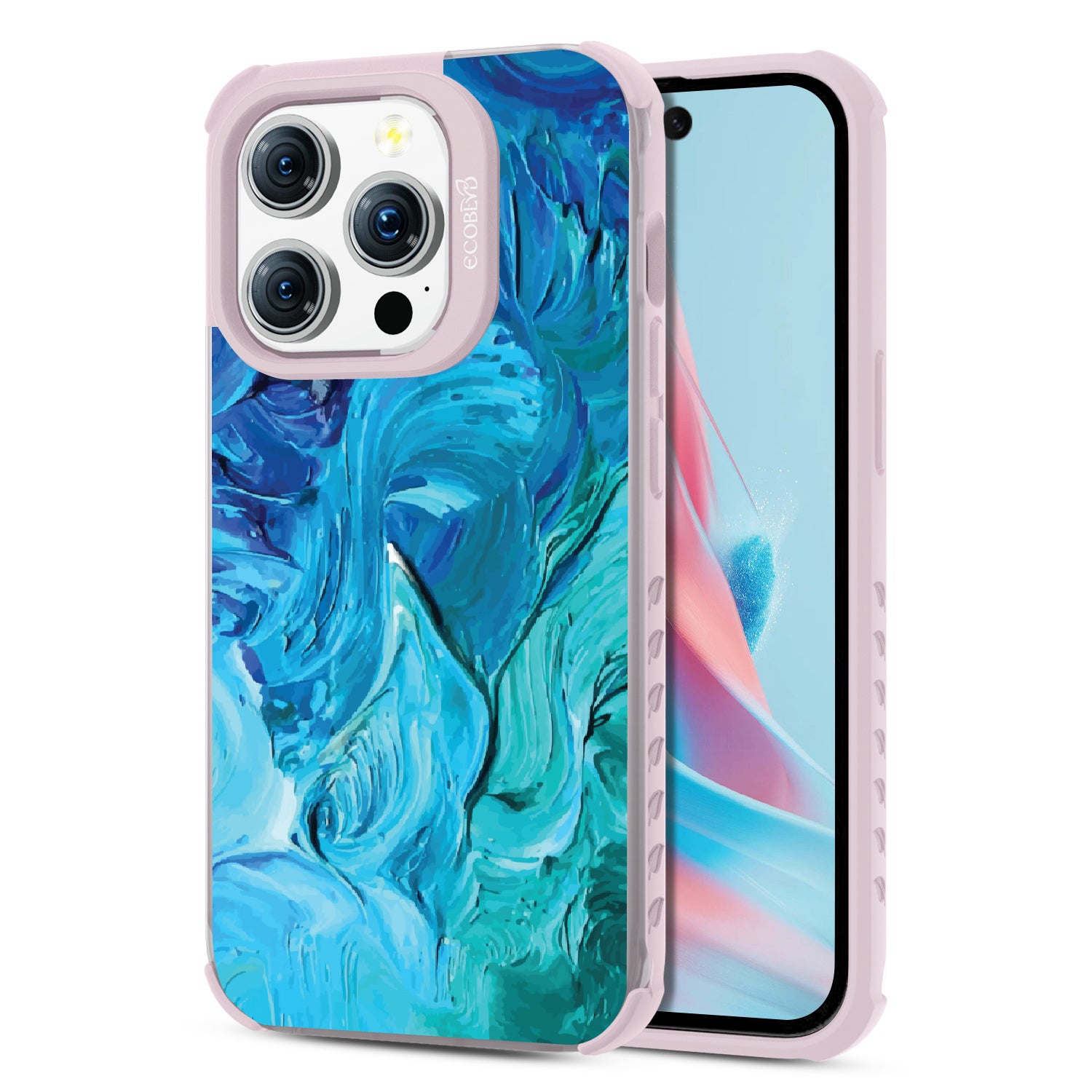 Let the current take control. The Oceanswept design on our Laguna clear iPhone 15 Pro case swirls in fluid blues and greens, mimicking the way the tide carves patterns into the shore. A look shaped by movement, depth, and the artistry of the sea.