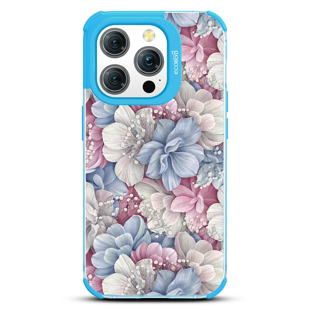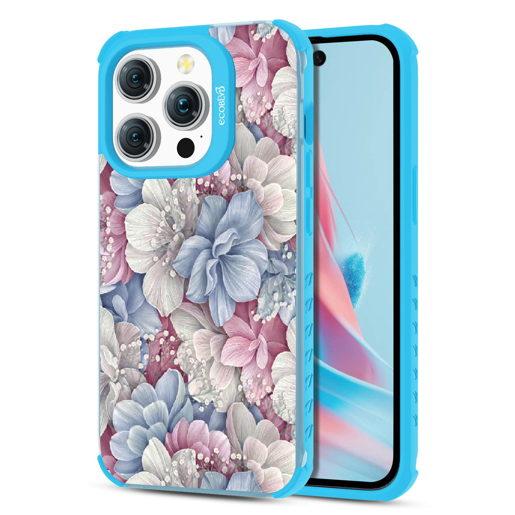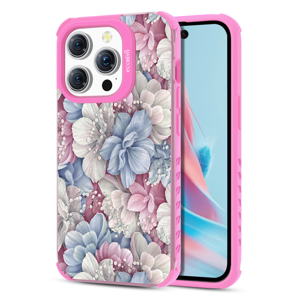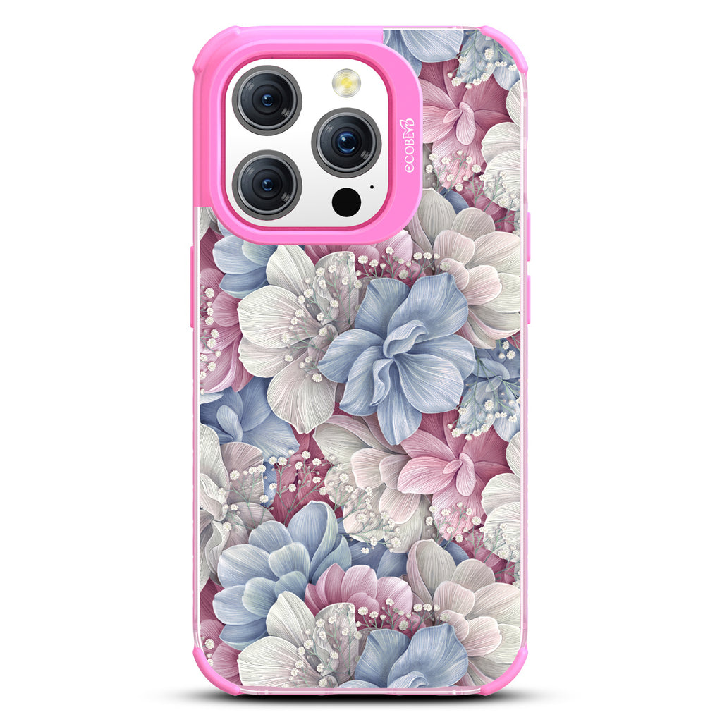 The Petals & Pearls design on our Laguna clear iPhone 15 Pro case is like a melody of spring, its pastel colors swaying like a sweet tune and the water droplets on the petals ringing like pearls, harmoniously reflecting the blooming beauty of the season in four colors: Midnight Black, Cascade Blue, Pastel Lilac, and Wildflower Pink.