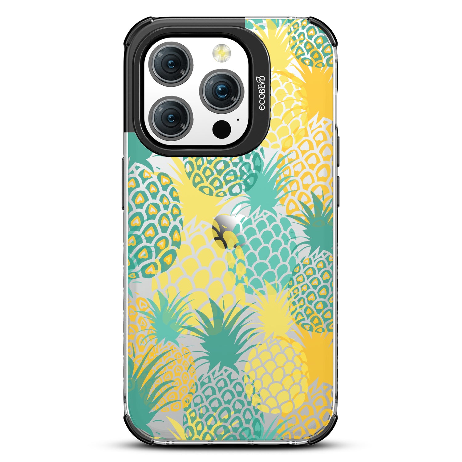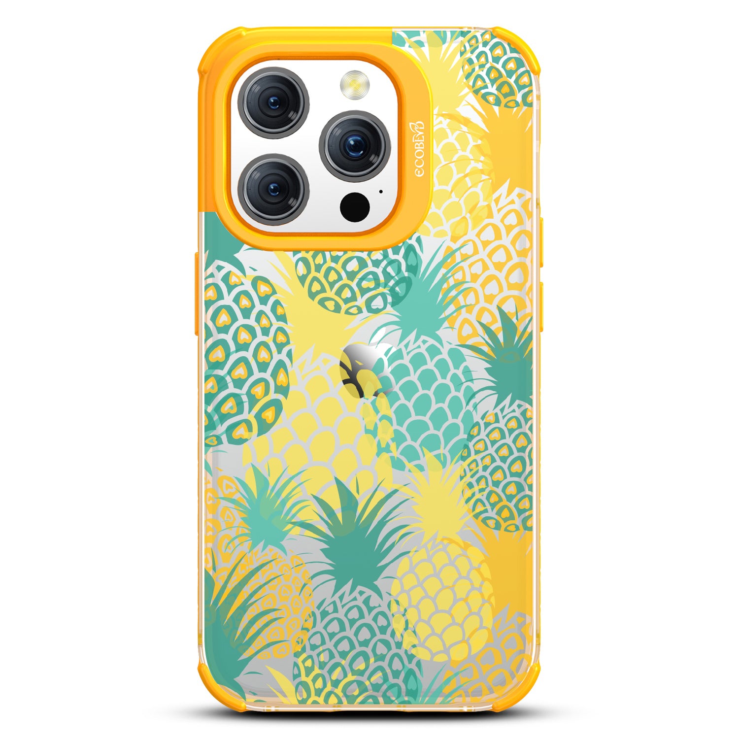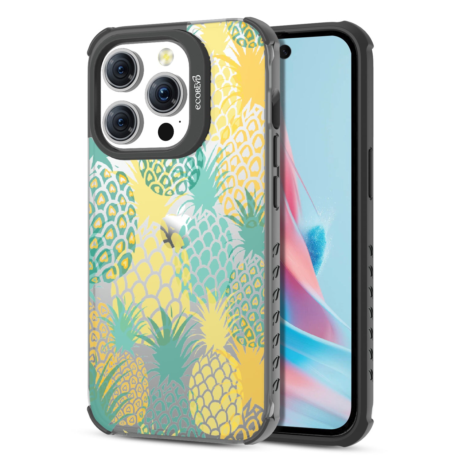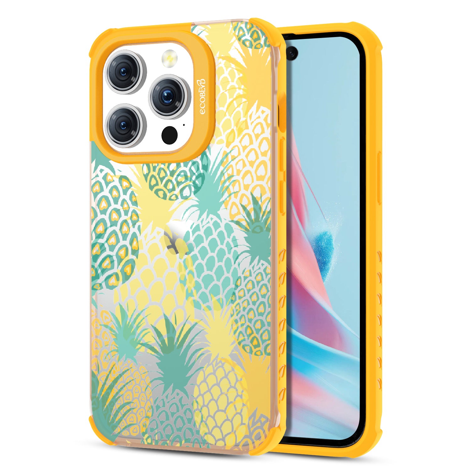 Laguna clear iPhone 15 Pro case is for you! Pineapple Breeze is a refreshing design that embodies the spirit of tropical relaxation. Its vibrant array of ripe pineapples will transport you to exotic shores, where the golden rays of the sun dance upon your skin.