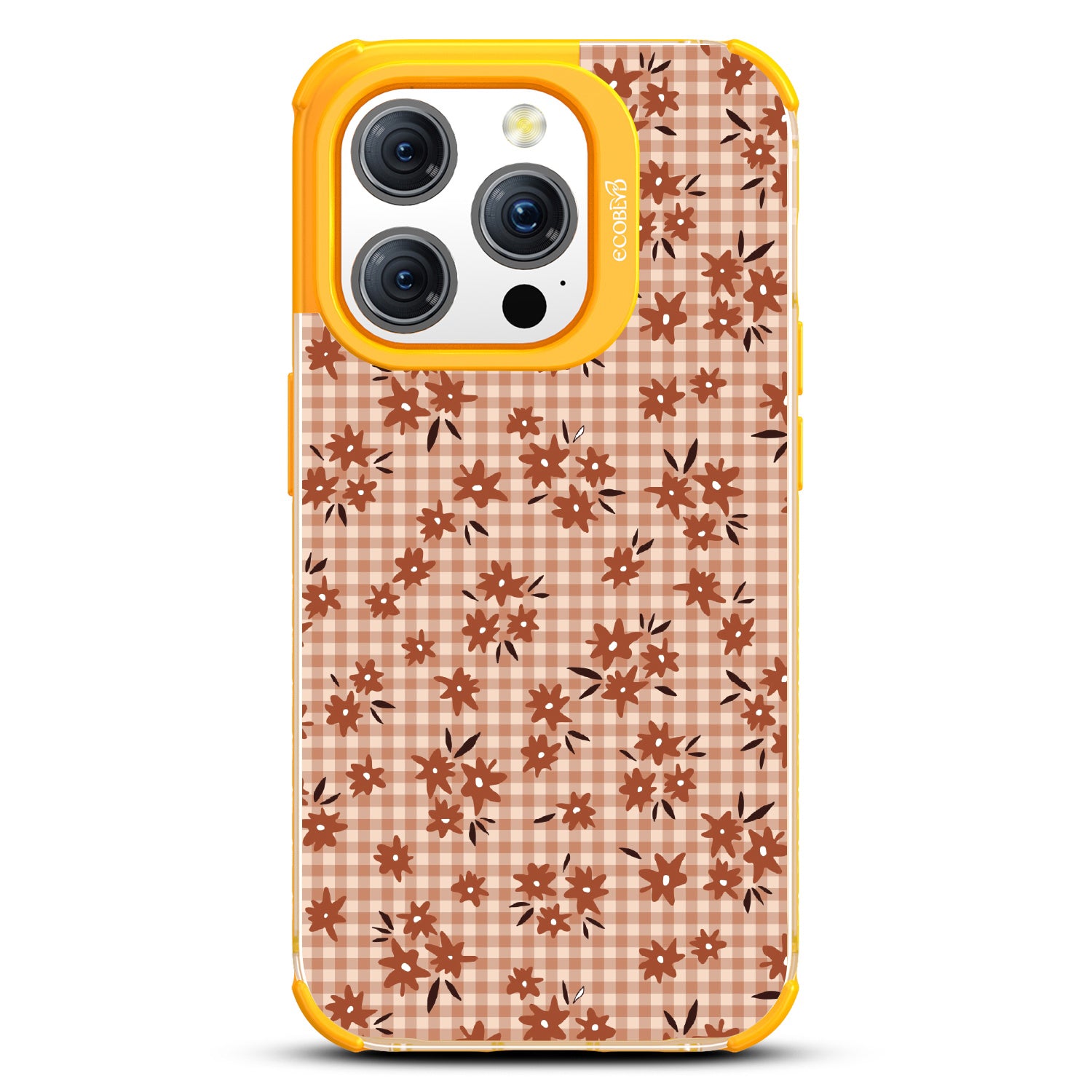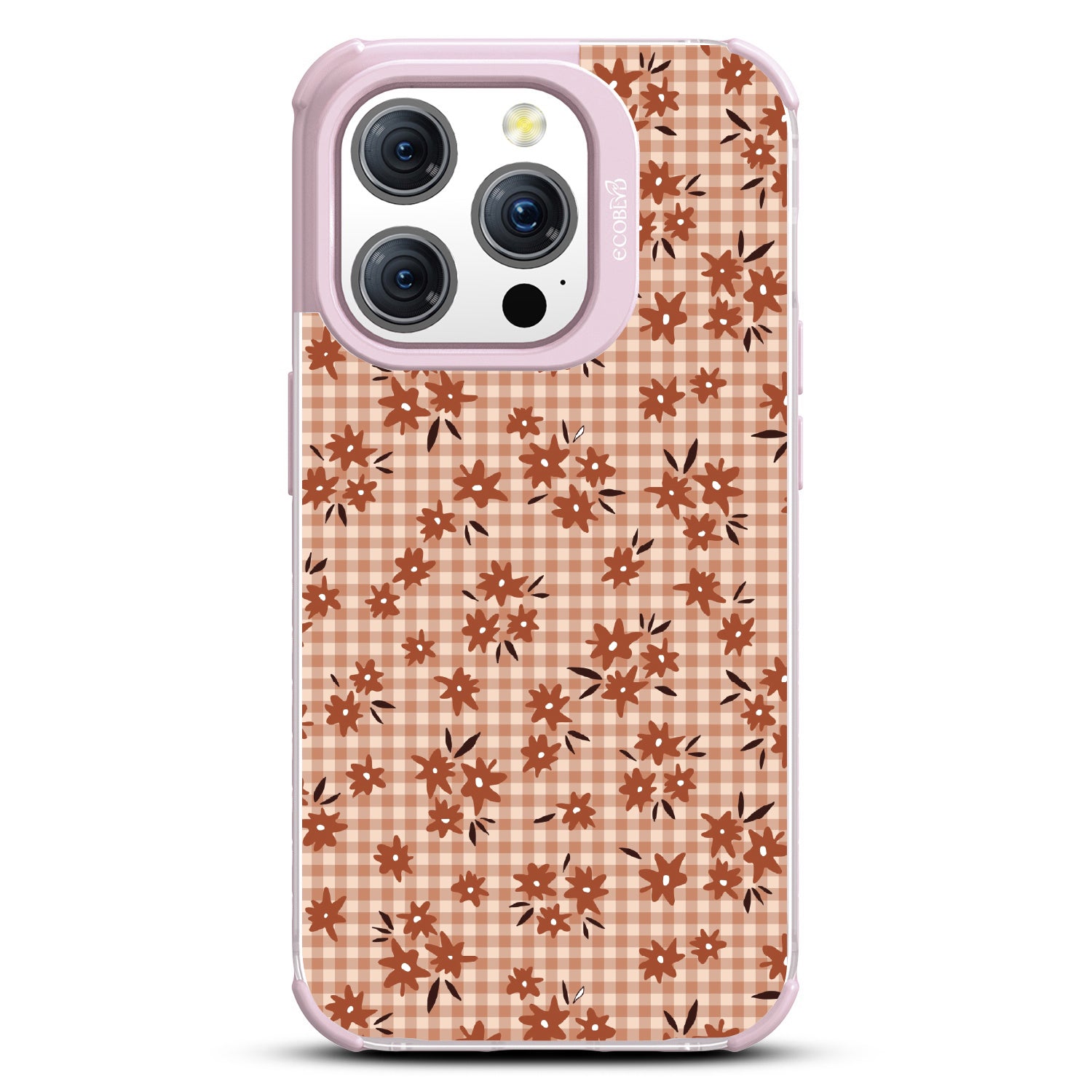 Wrap yourself in fall’s coziest combo with the Plaid and Petals design on our Laguna clear iPhone 15 Pro cases. It’s like your favorite flannel shirt decided to bloom, blending warm plaid checks with soft flowers scattered across the surface. Earthy browns and creams set the tone, while the playful florals bring a light-hearted touch. It’s fall, but with a floral twist—perfect for layering your look with a mix of rustic and fresh vibes.