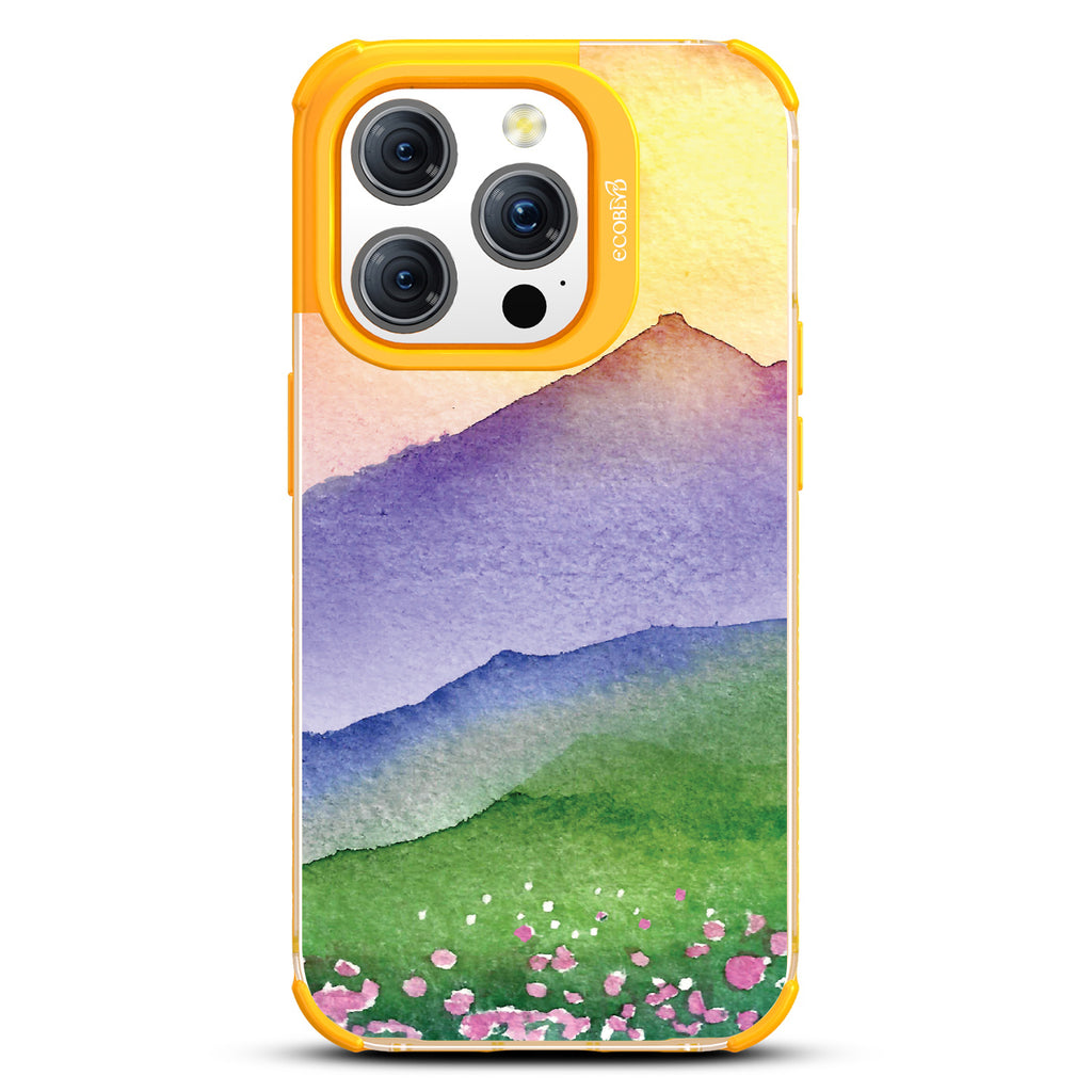 End your day on a high note with the Summit Sunset design on our Laguna clear iPhone 15 Pro case, where the glow of sunset bathes the mountains in soft light. This case captures that perfect moment of day's end in the highlands, reminding us of nature's spectacular farewell to the sun. It's the warm glow of the day's end, right on your phone.