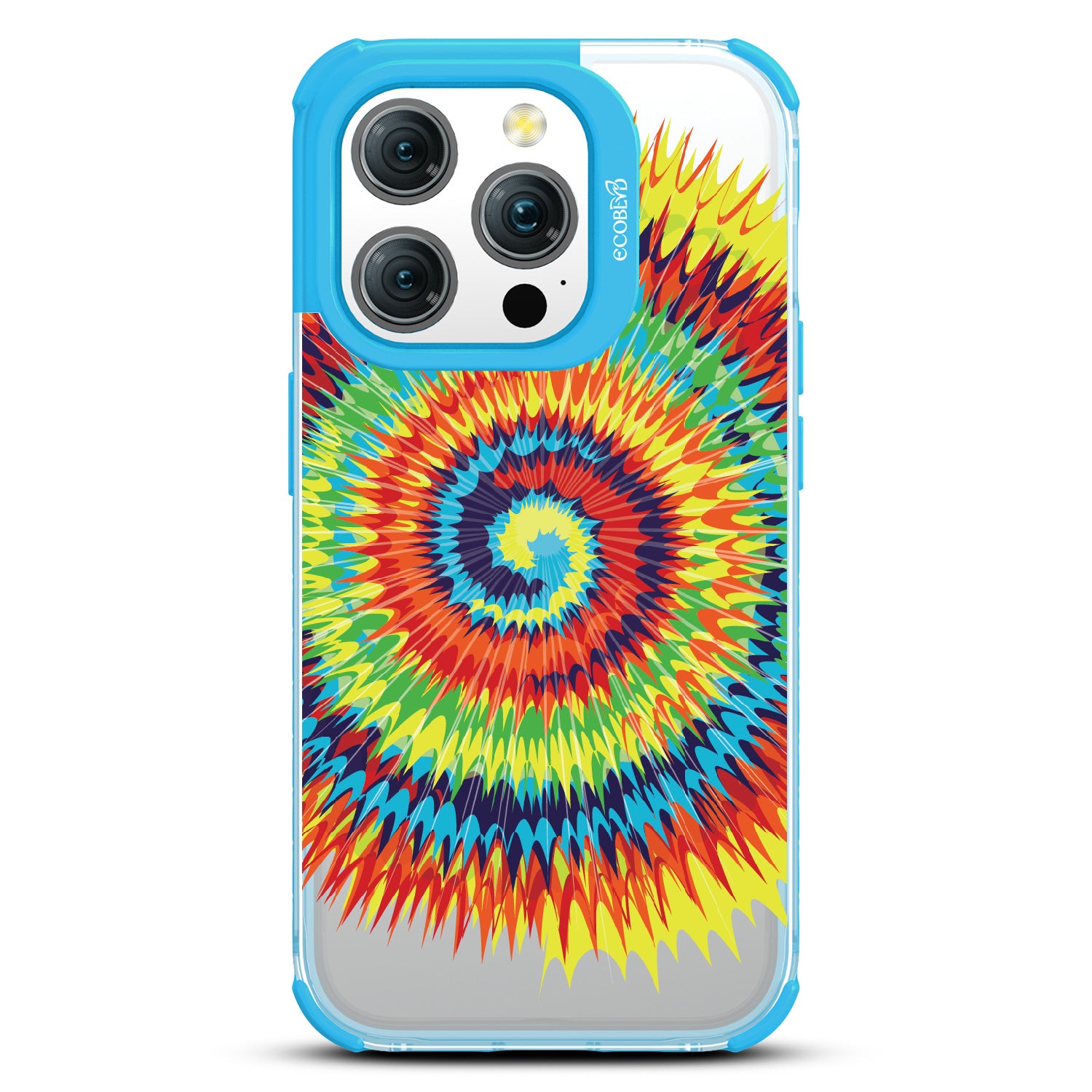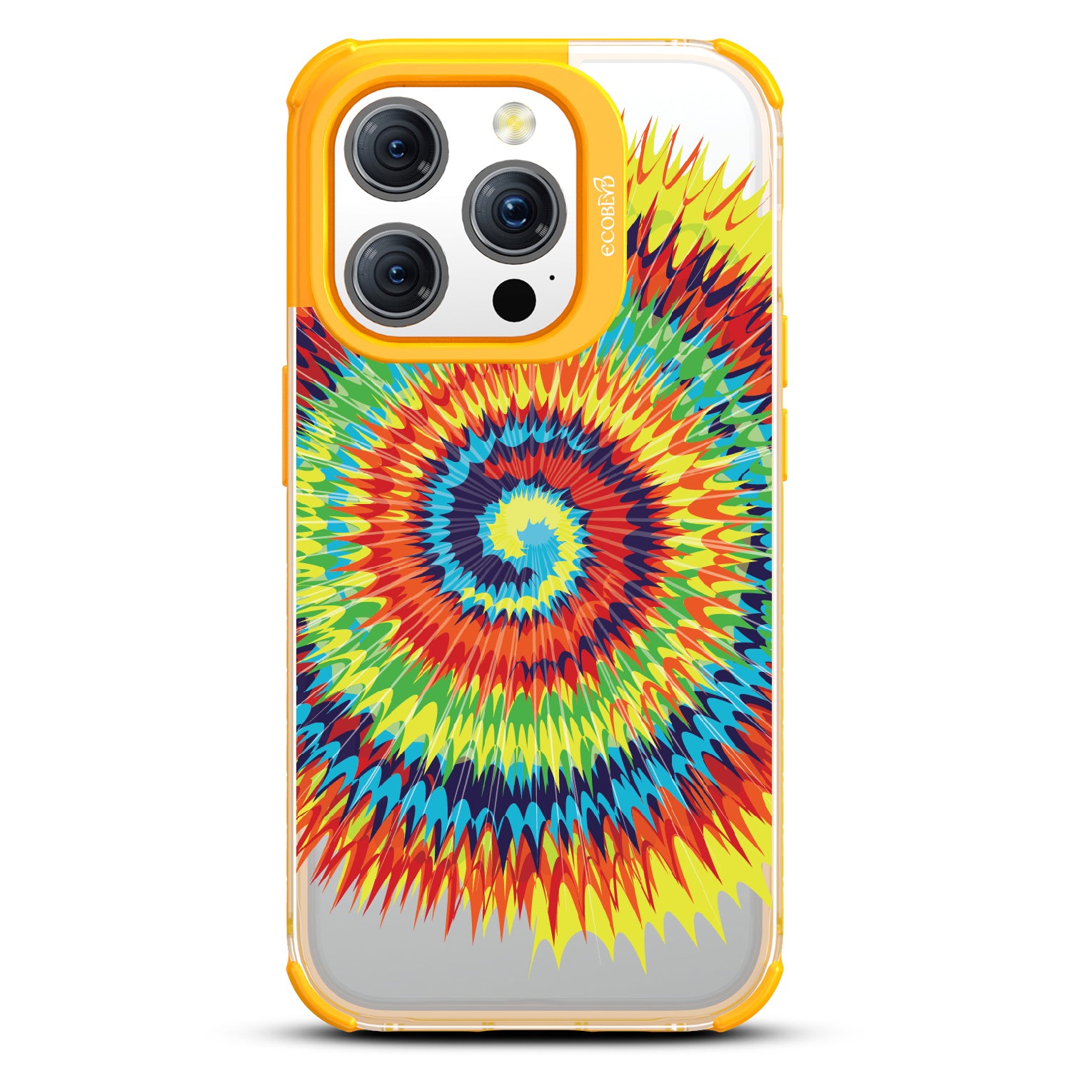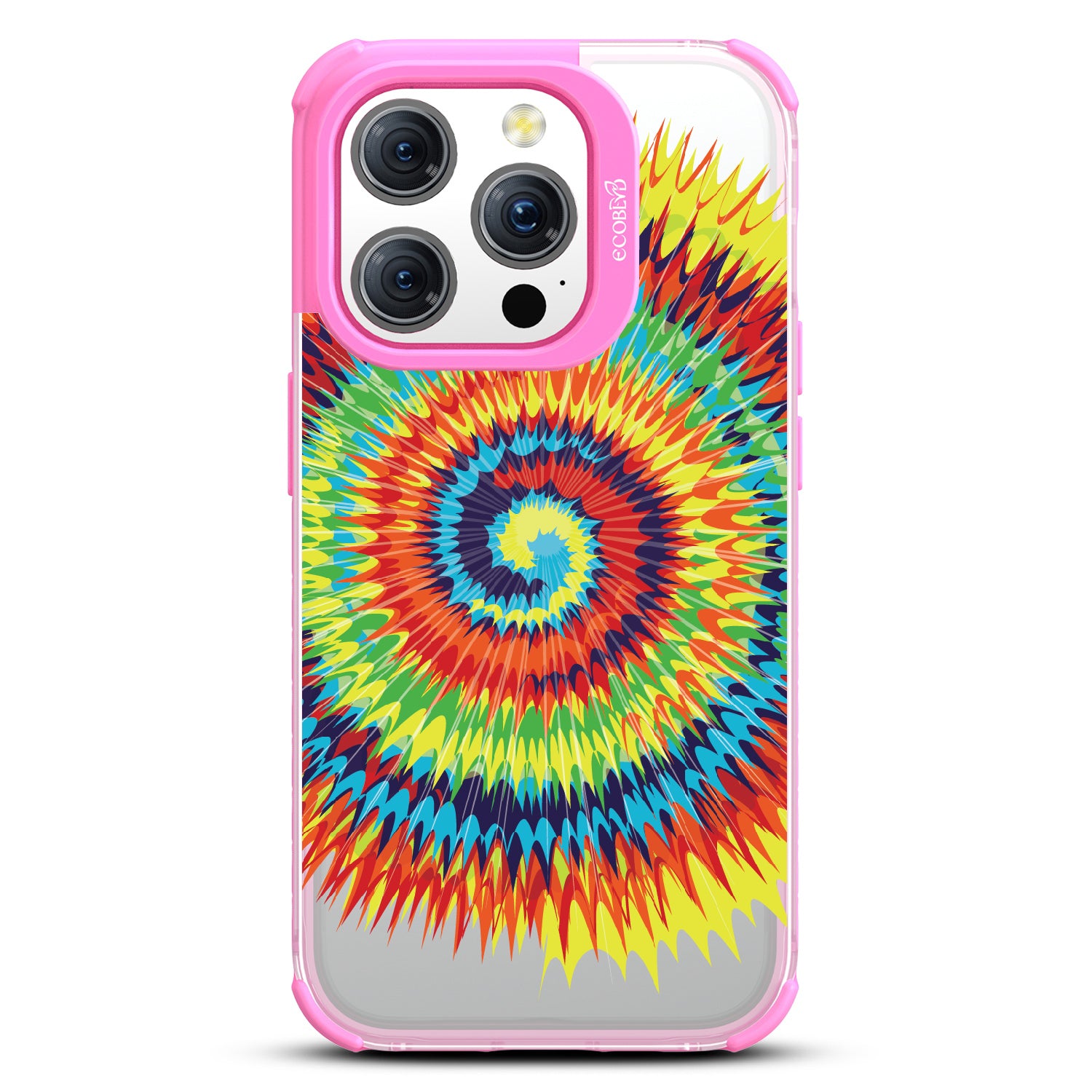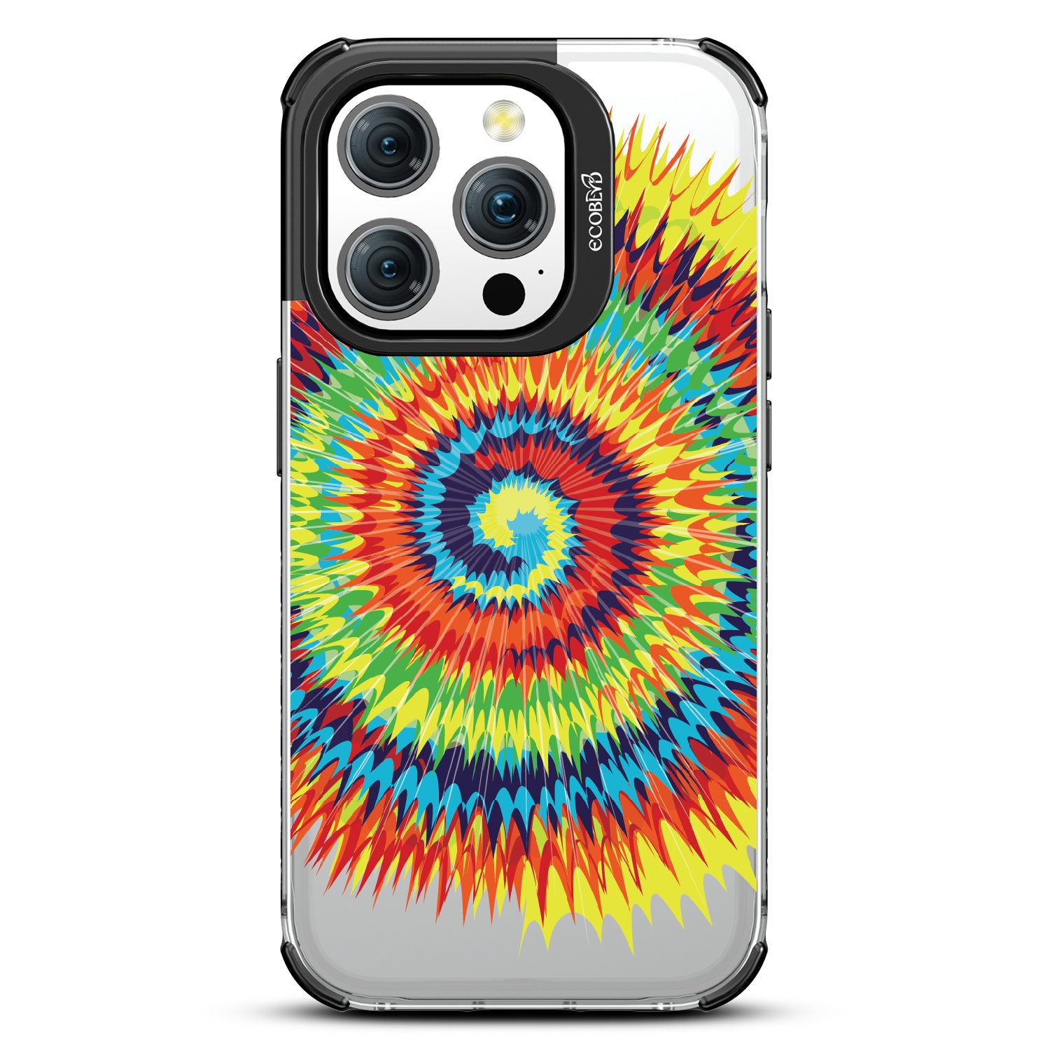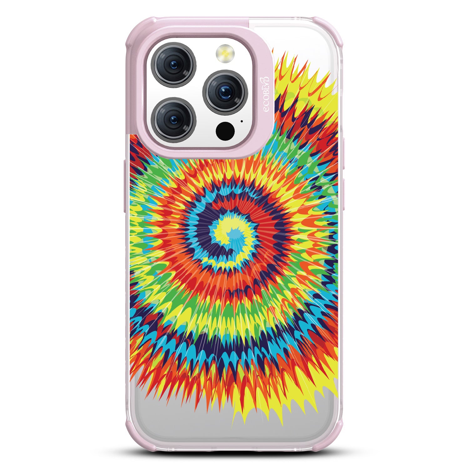 Bringing back the summer days of backyard BBQs, beach days, and fun in the sun, the Tie Dye design on our Laguna clear iPhone 15 Pro case features a retro rainbow swirl pattern giving your phone an eye-catching twist.
