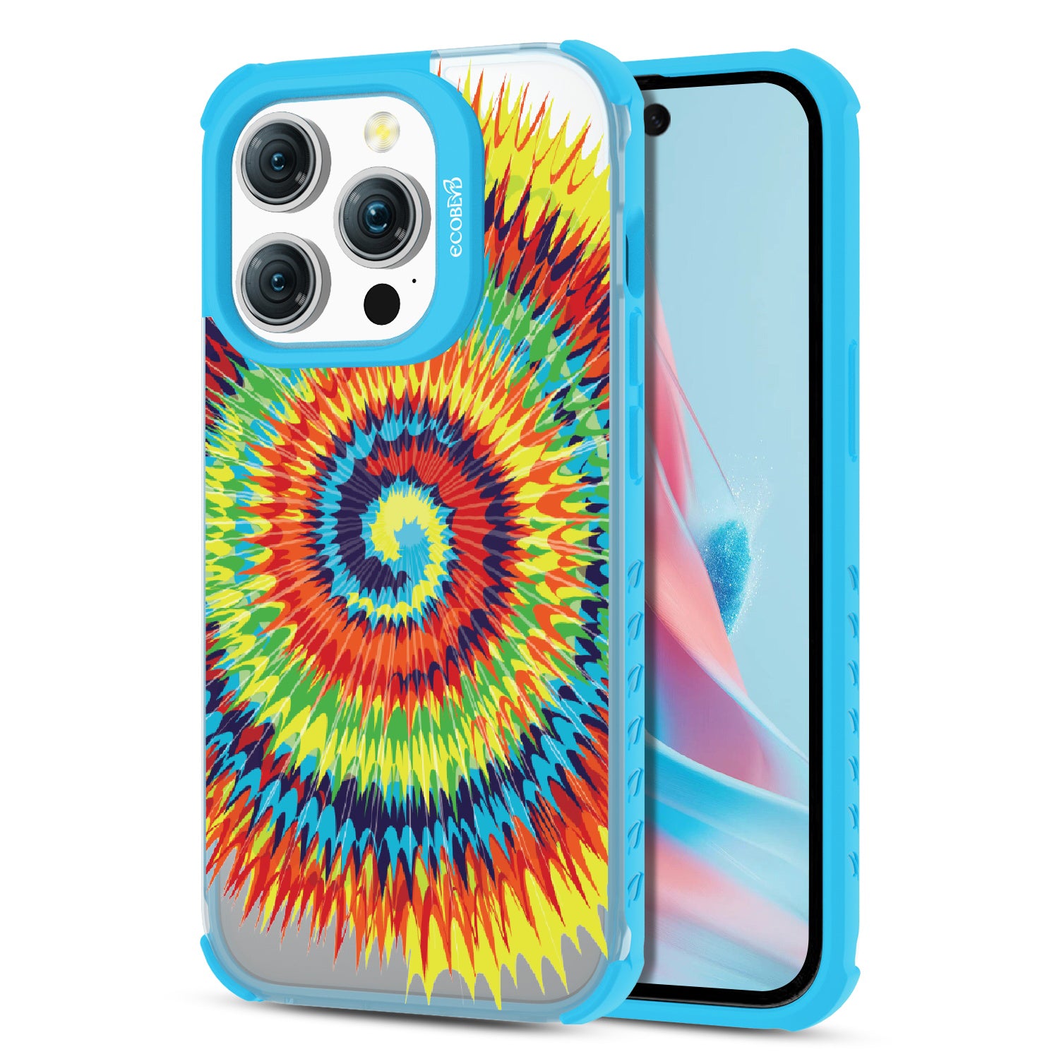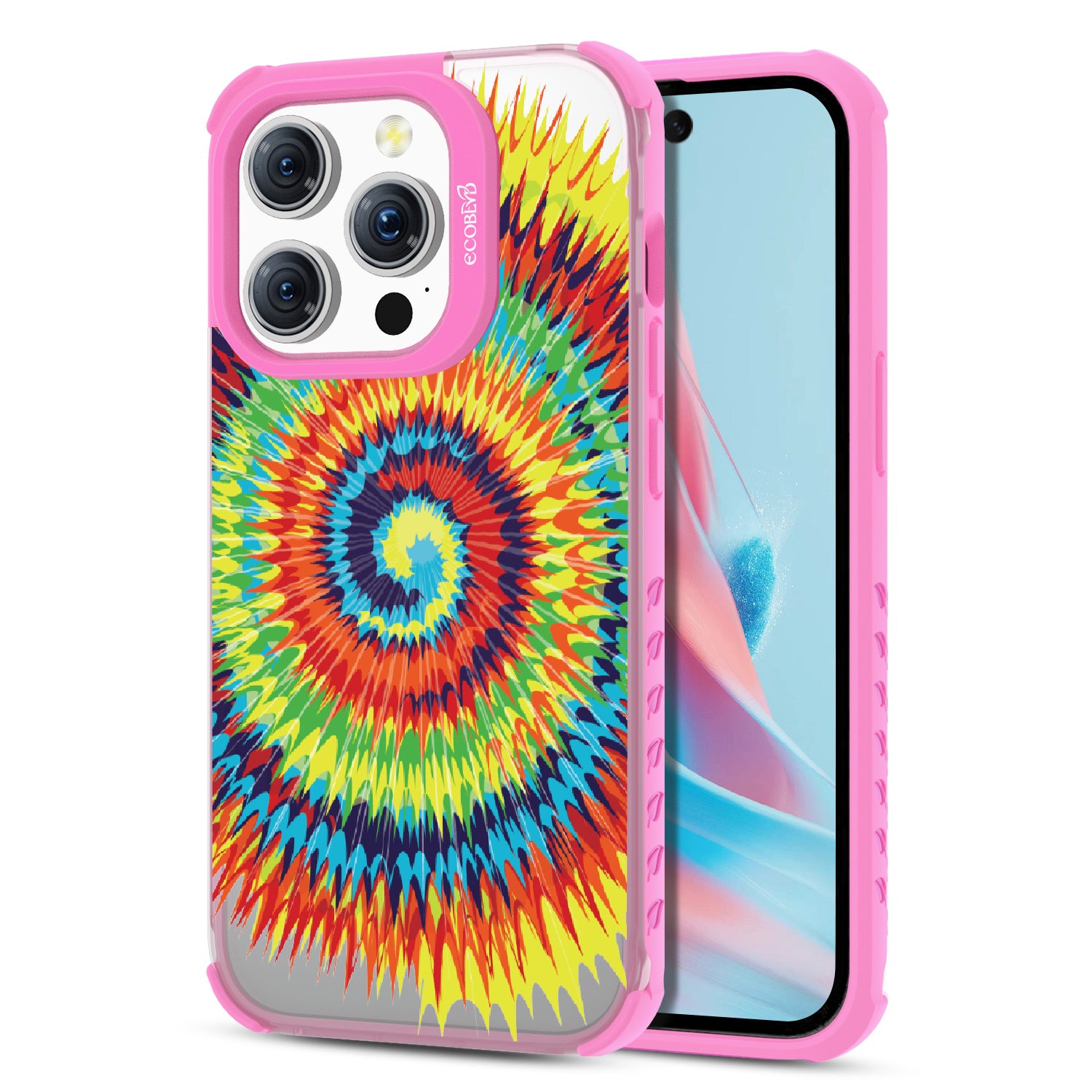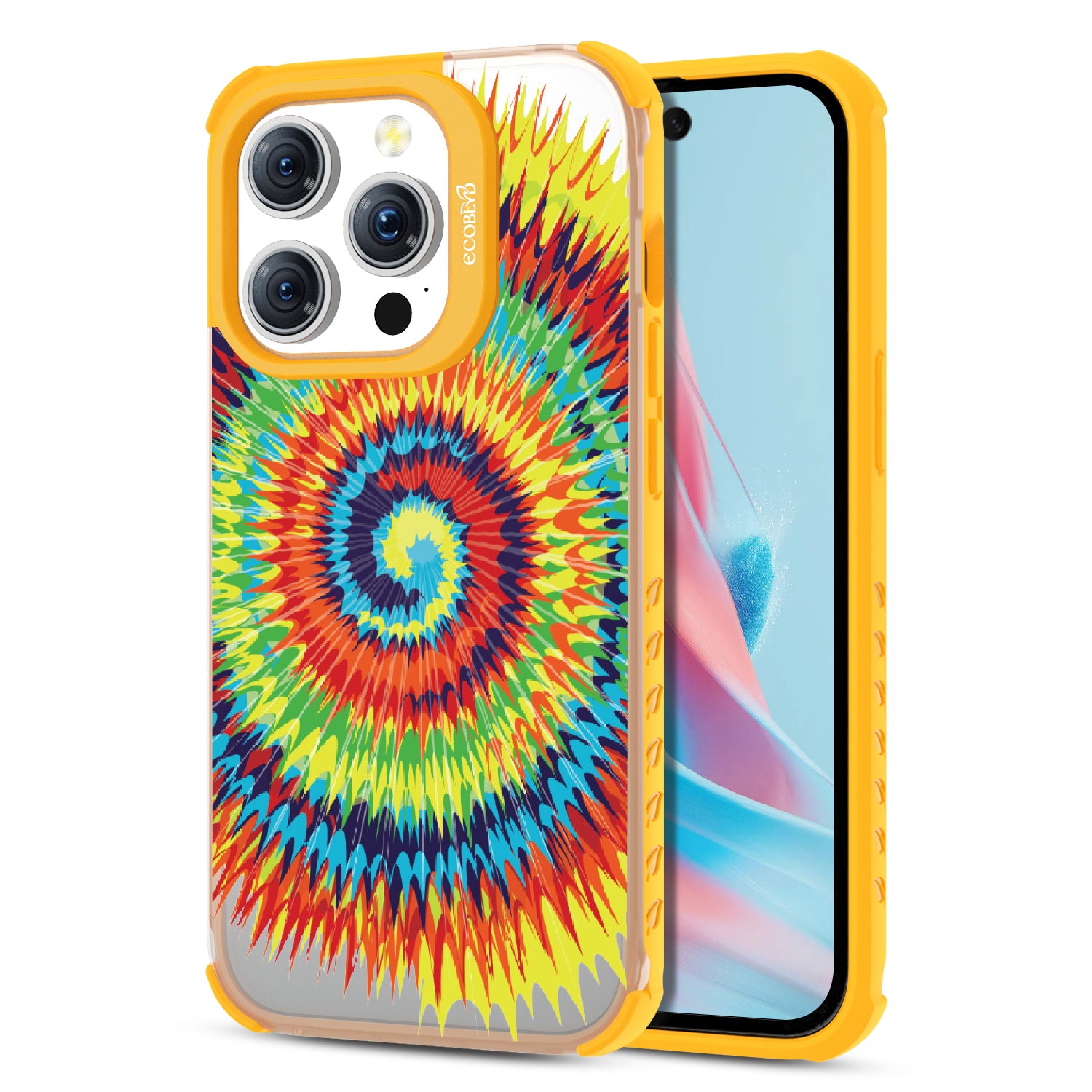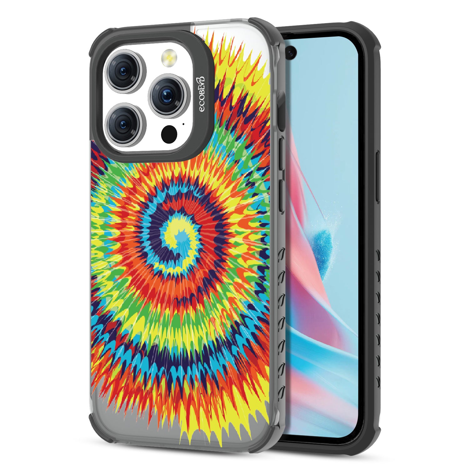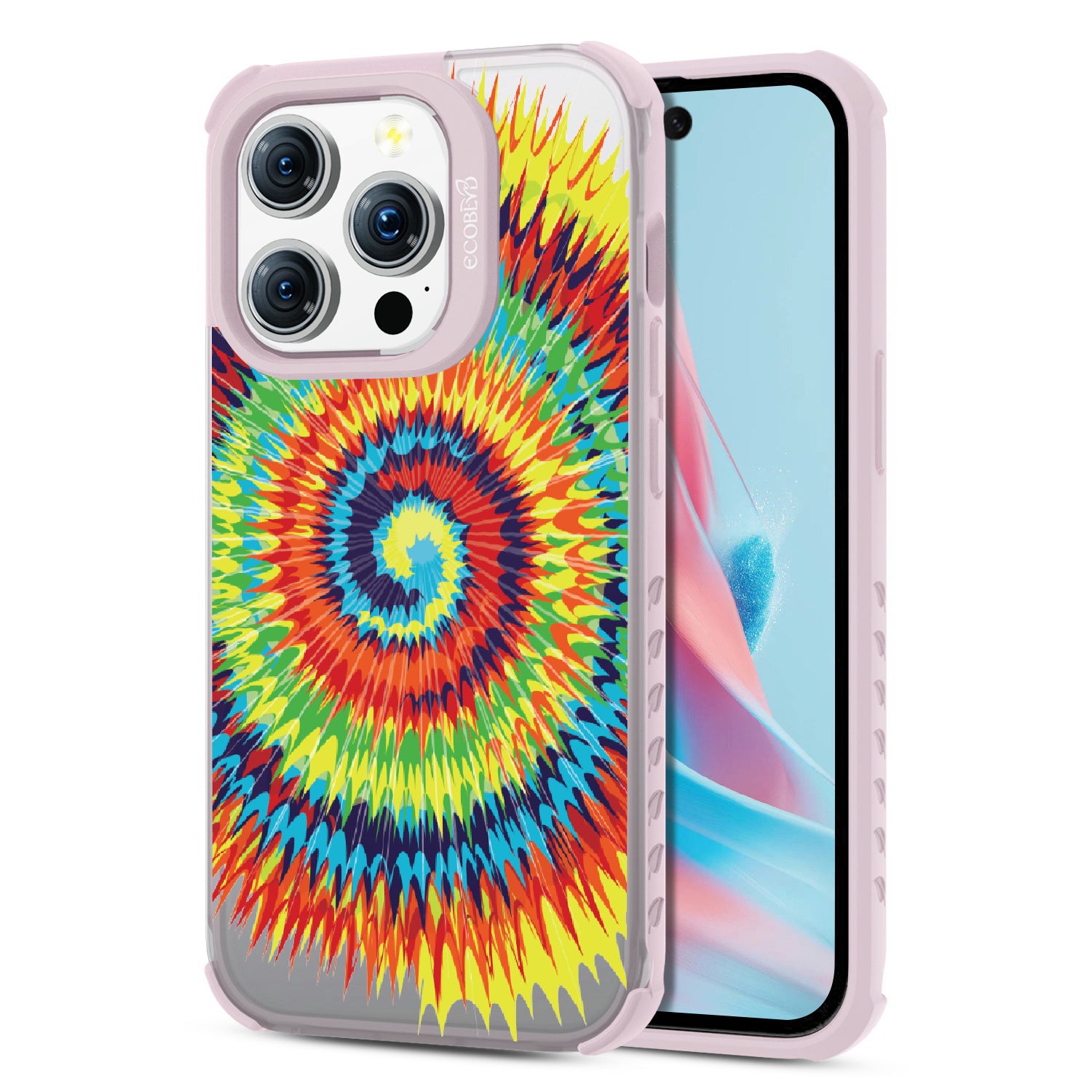Bringing back the summer days of backyard BBQs, beach days, and fun in the sun, the Tie Dye design on our Laguna clear iPhone 15 Pro case features a retro rainbow swirl pattern giving your phone an eye-catching twist.