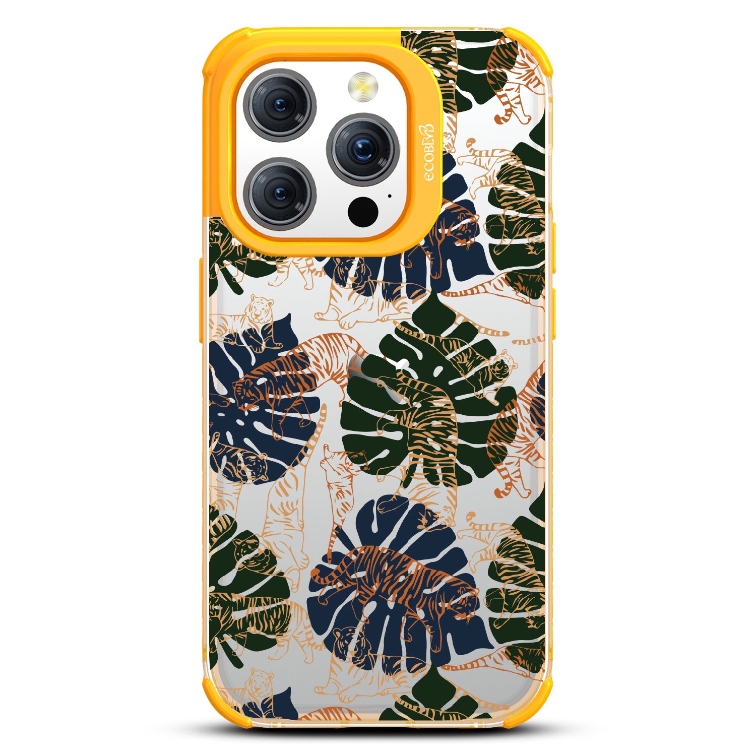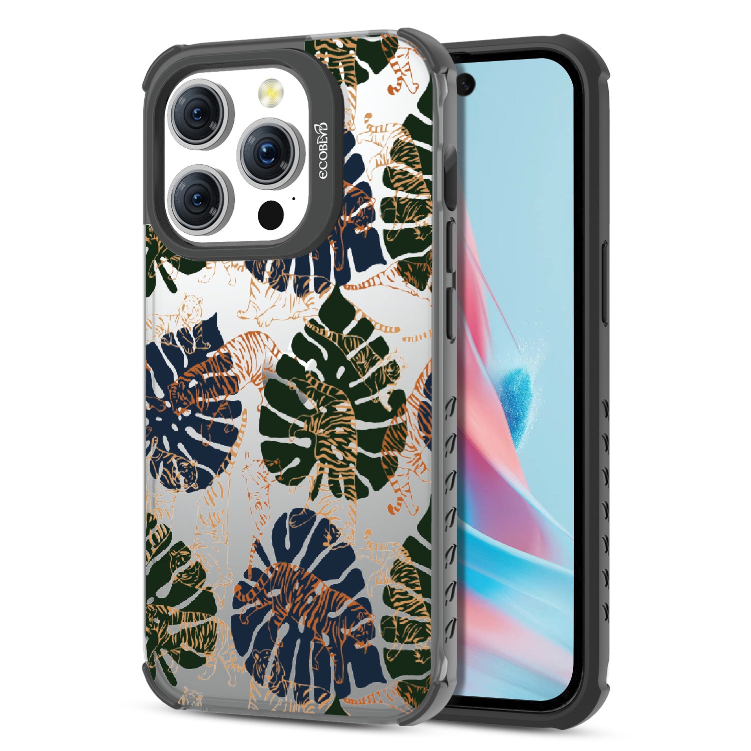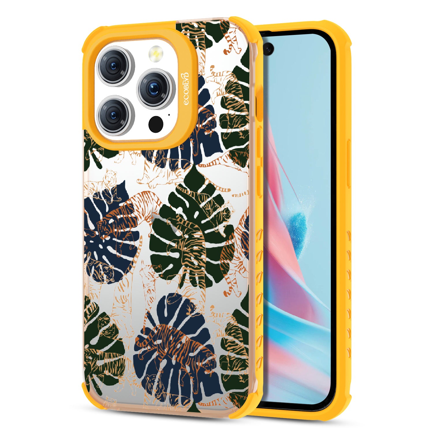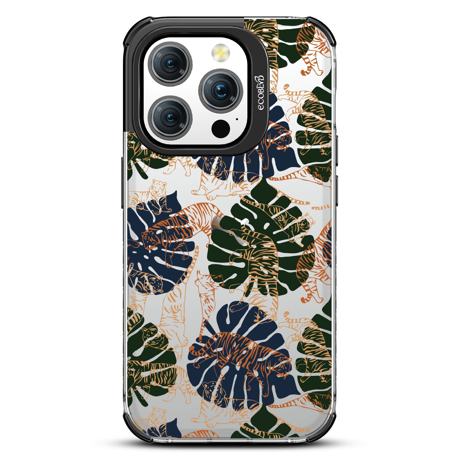 Immerse yourself in the vivid world of Tropic Roar exclusively crafted for the Laguna clear iPhone 15 Pro case. This wild phone case design transports you to the heart of the jungle's allure so you can enjoy impeccable style and protection, all while supporting ocean conservation efforts. Make a roaring impression with our Tropic Roar phone case design, where the untamed allure of the jungle meets your vibrant personality. Let the tropical foliage and bold tiger silhouettes amplify your style game and set you apart as a force to be reckoned with. With this phone case, you'll be strutting confidently, turning heads, and leaving everyone in awe of your fierce fashion sense.