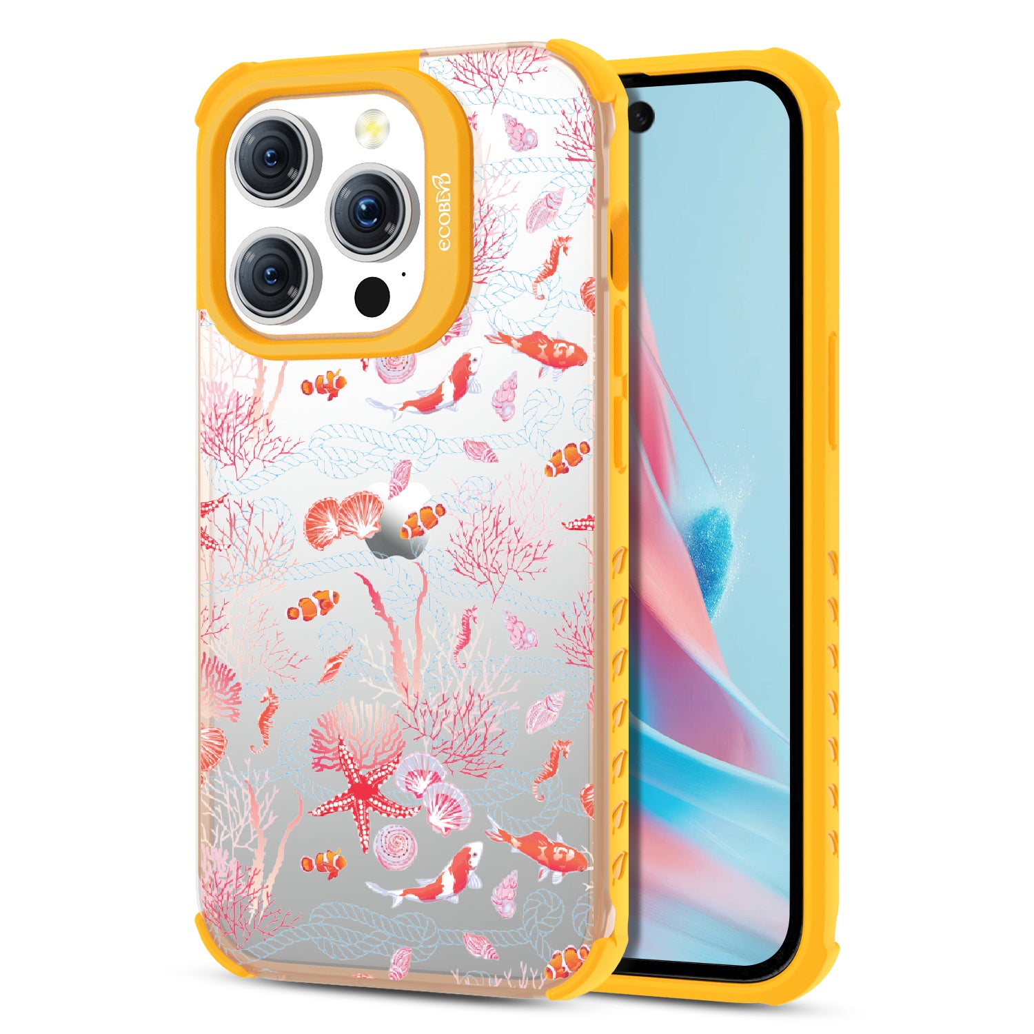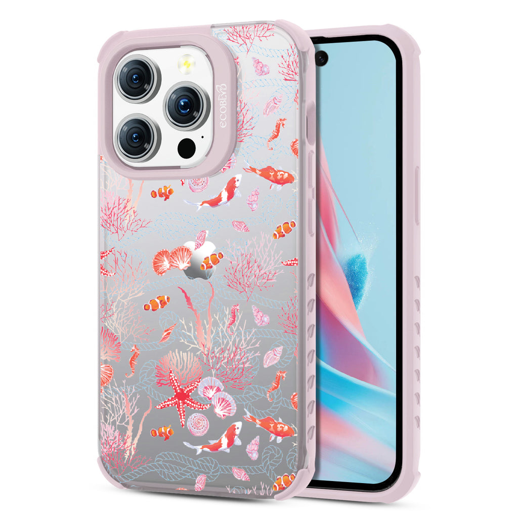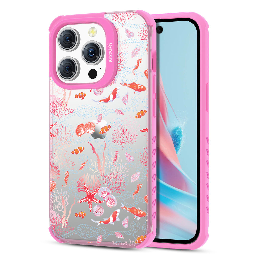 iPhone 15 Pro phone case, you'll see, your phone’s full of glee, under the sea! Coral and critters, they all come together, swirling in hues, pinks, and blues, where life’s better wetter, take it from me! Your phone will be dancing, twirling, and prancing, carrying the magic of the ocean so fancy! So let your phone be, full of joy and glee, under the sea.