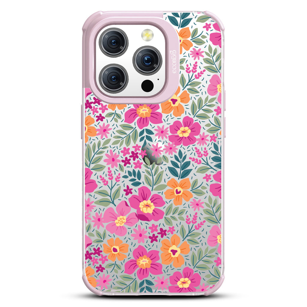 Don't be fooled by the name, the Wallflowers design on our Laguna clear iPhone 15 Pro case makes you stand out from the crowd as it features a playful and colorful floral pattern.