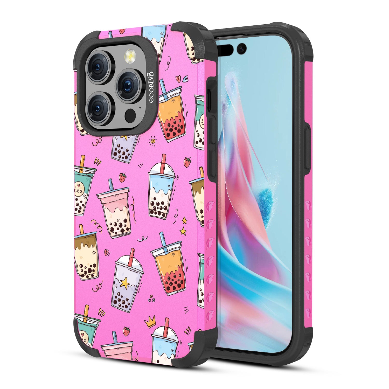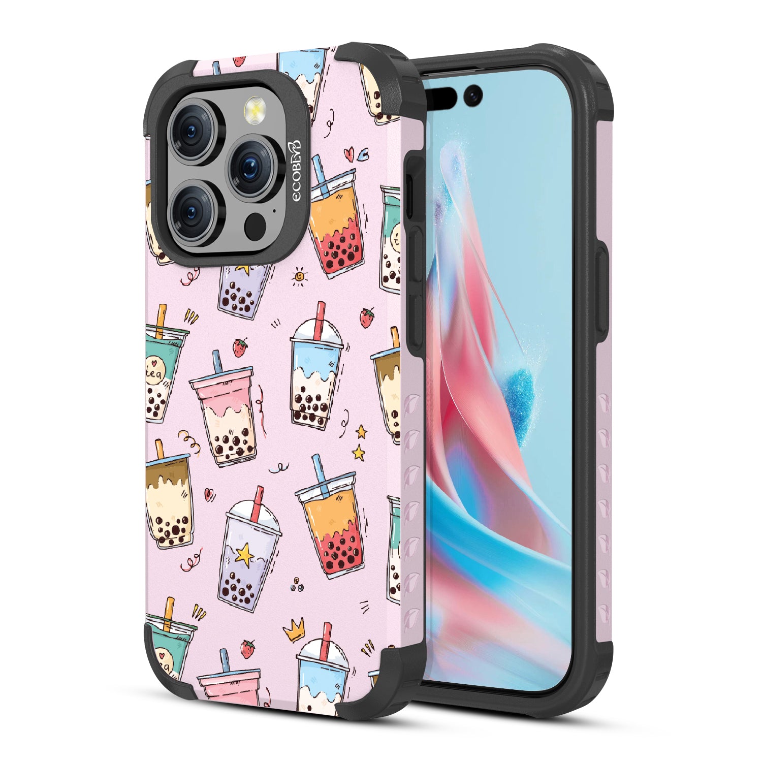 Your best-teas are always by your side. Colorful bubble tea cups in taro, matcha, and strawberry hues make this design on our Mojave rugged and compostable iPhone 15 Pro case a playful celebration of flavor and friendship. A sweet reminder that good drinks (and good friends) make life better.