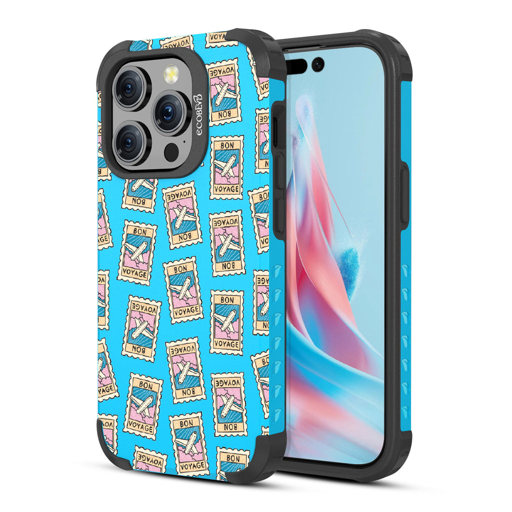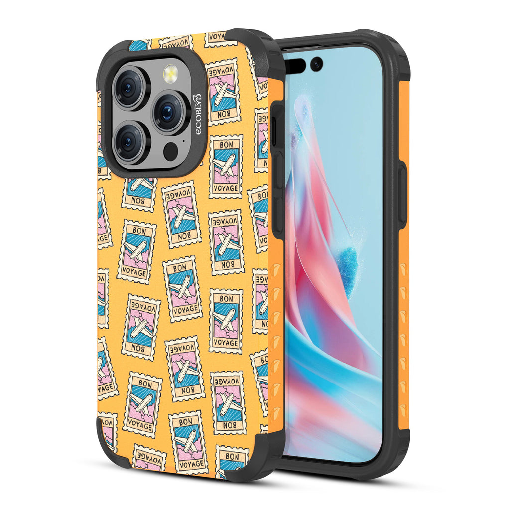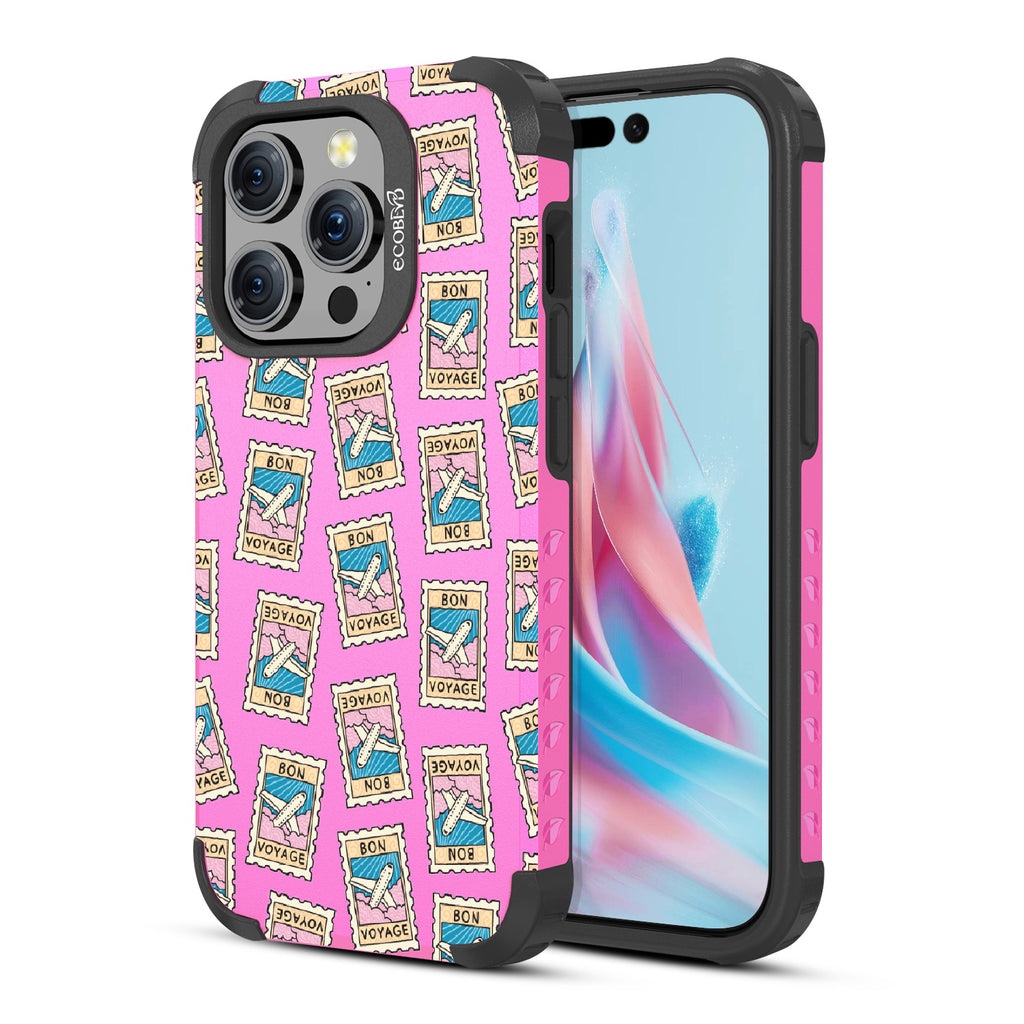 Ready for a stylish departure? The Bon Voyage design on our Mojave rugged iPhone 15 Pro MagSafe case, is your phone's own first-class upgrade, where every 'Bon Voyage' stamp is a nod to your next great getaway. It's like turning on flight mode with a twist of runway—your sidekick dressed for adventure. Snap this case on, and let your phone's wanderlust lead the way. Buckle up, traveler—your pocket-sized co-pilot is about to make every journey fashionably memorable.