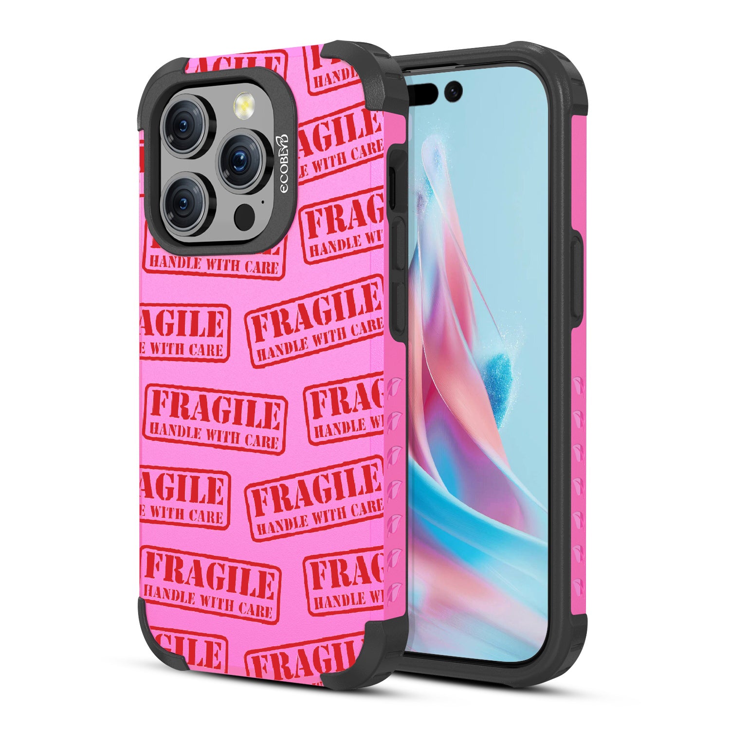 Your phone is precious cargo, and the Handle With Care design on our Mojave rugged Mojave rugged iPhone 15 Pro MagSafe case makes sure everyone knows it. Like the most treasured package in the post, this design stamps your device with VIP status, demanding the gentle touch and special attention reserved for the things we can't live without.