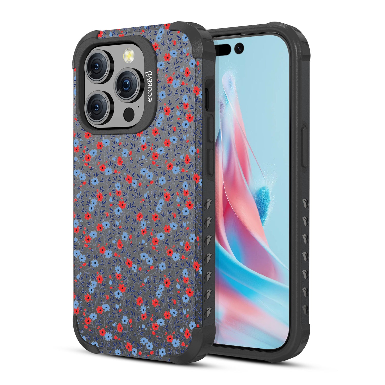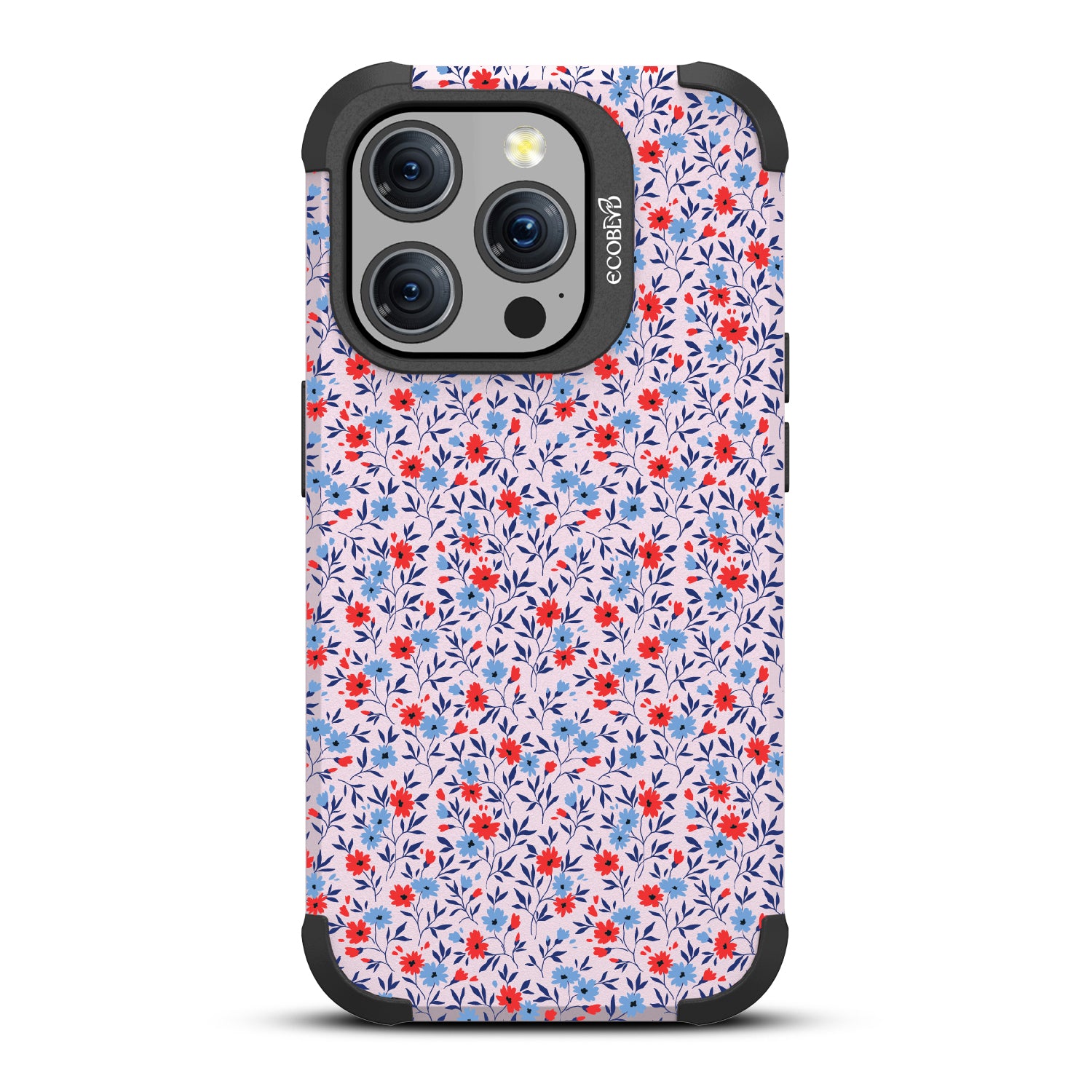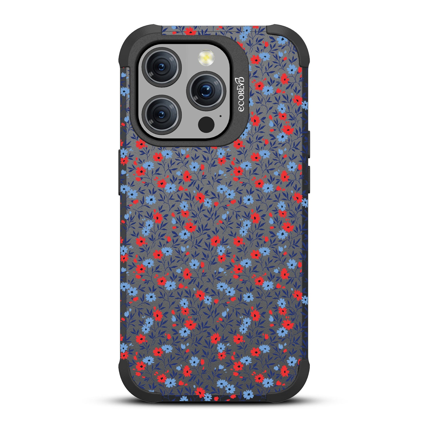 Show off your country roots with the Home Grown design on our Mojave rugged   iPhone 15 Pro MagSafe case. Adorned with red, white, and blue flowers, this vintage floral pattern brings rustic charm and, some true American flair.