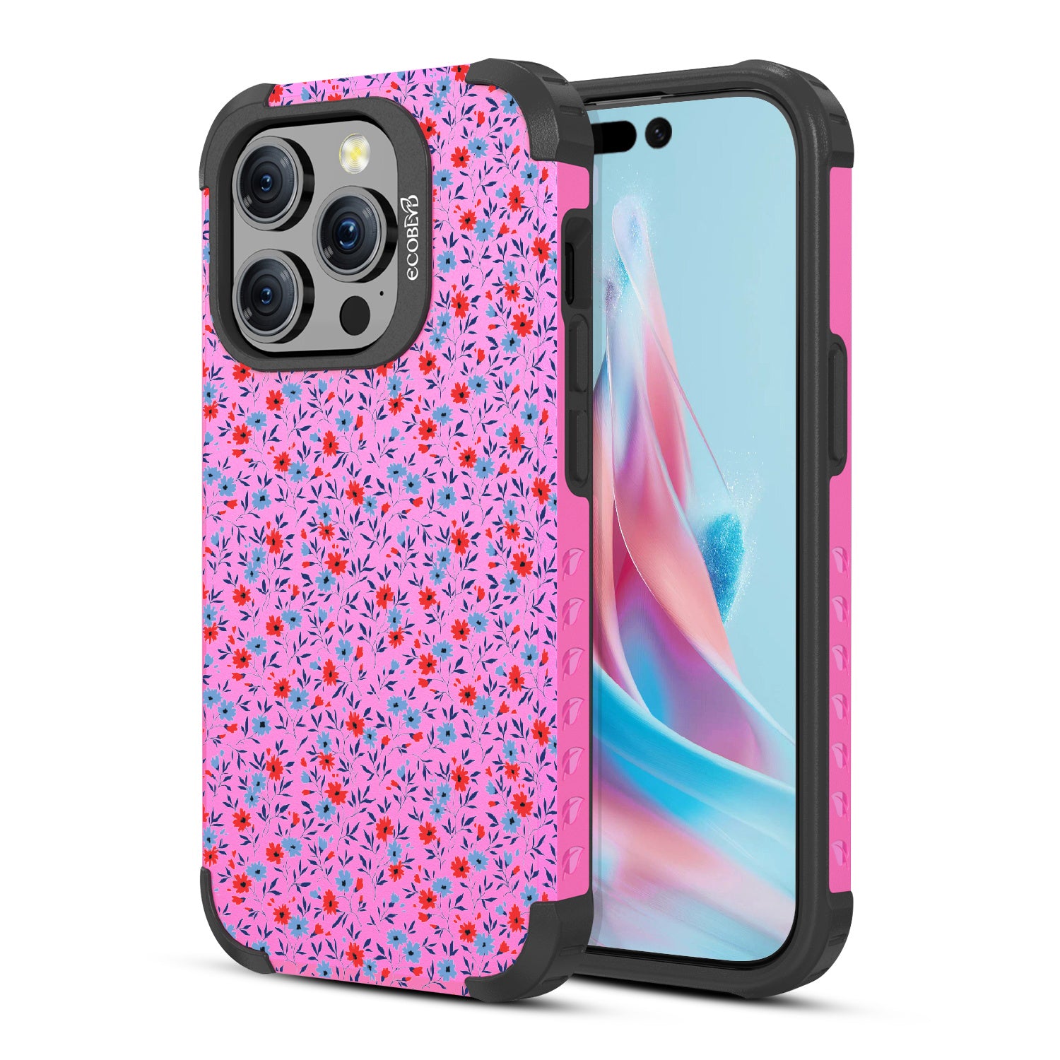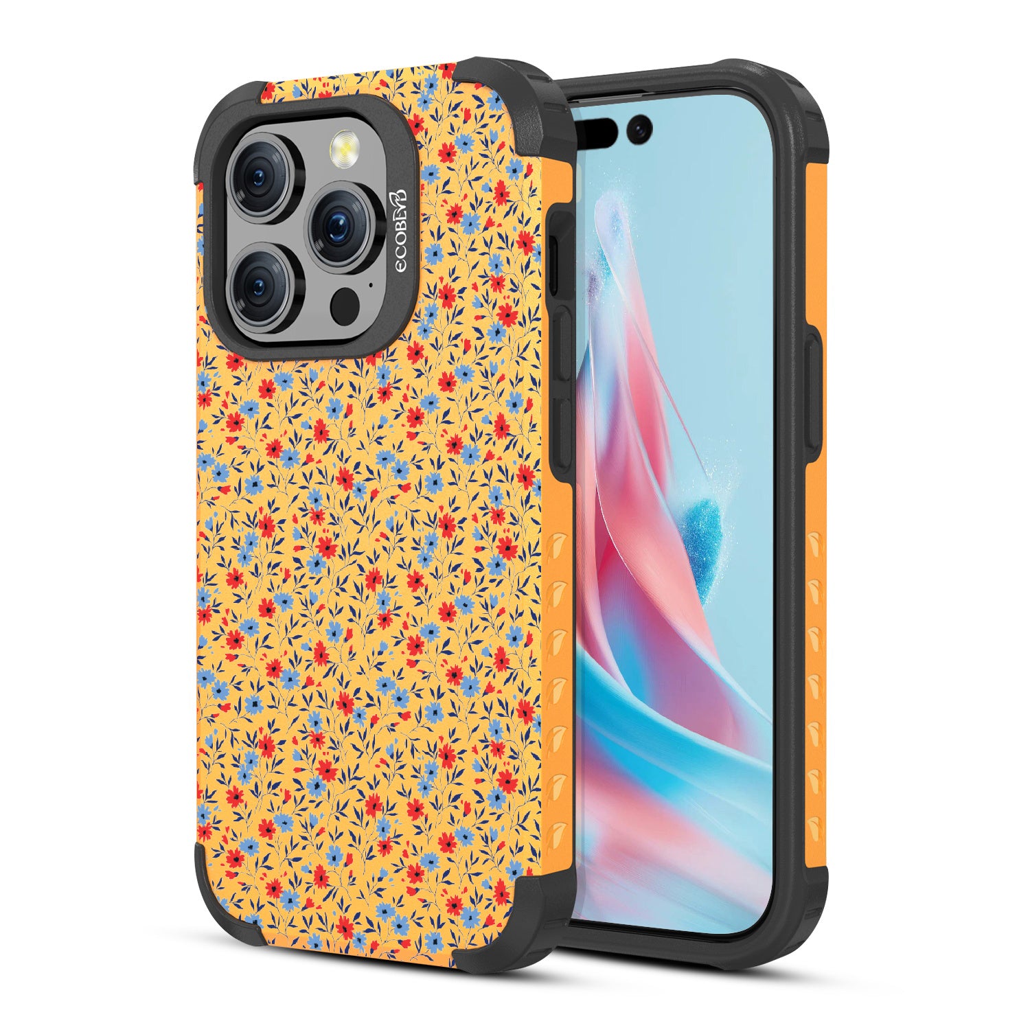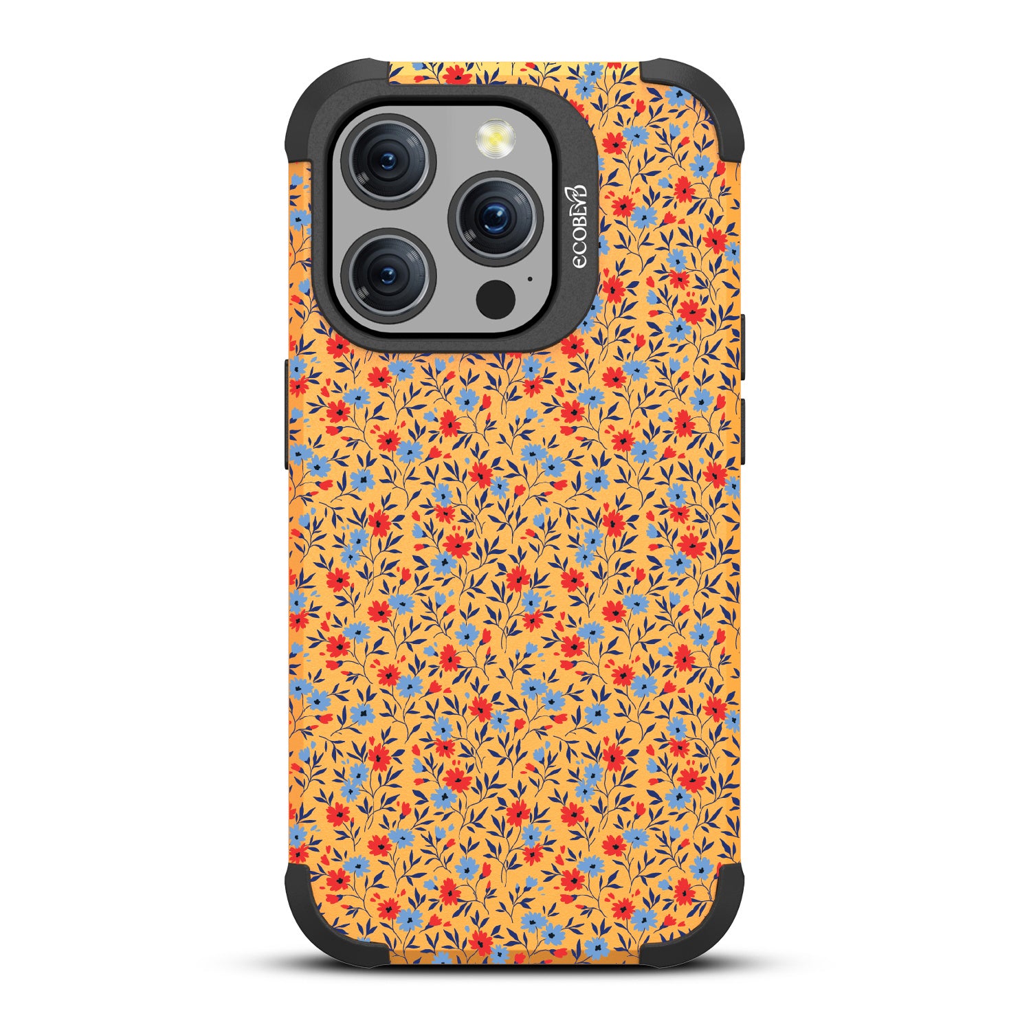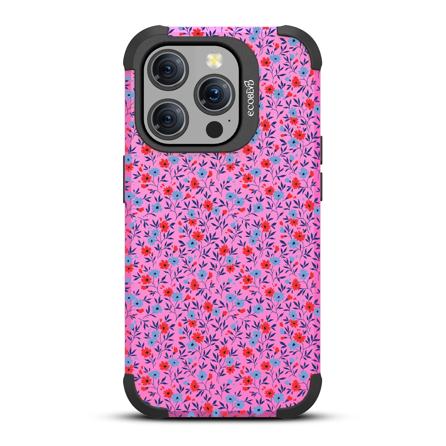 Show off your country roots with the Home Grown design on our Mojave rugged   iPhone 15 Pro MagSafe case. Adorned with red, white, and blue flowers, this vintage floral pattern brings rustic charm and, some true American flair.