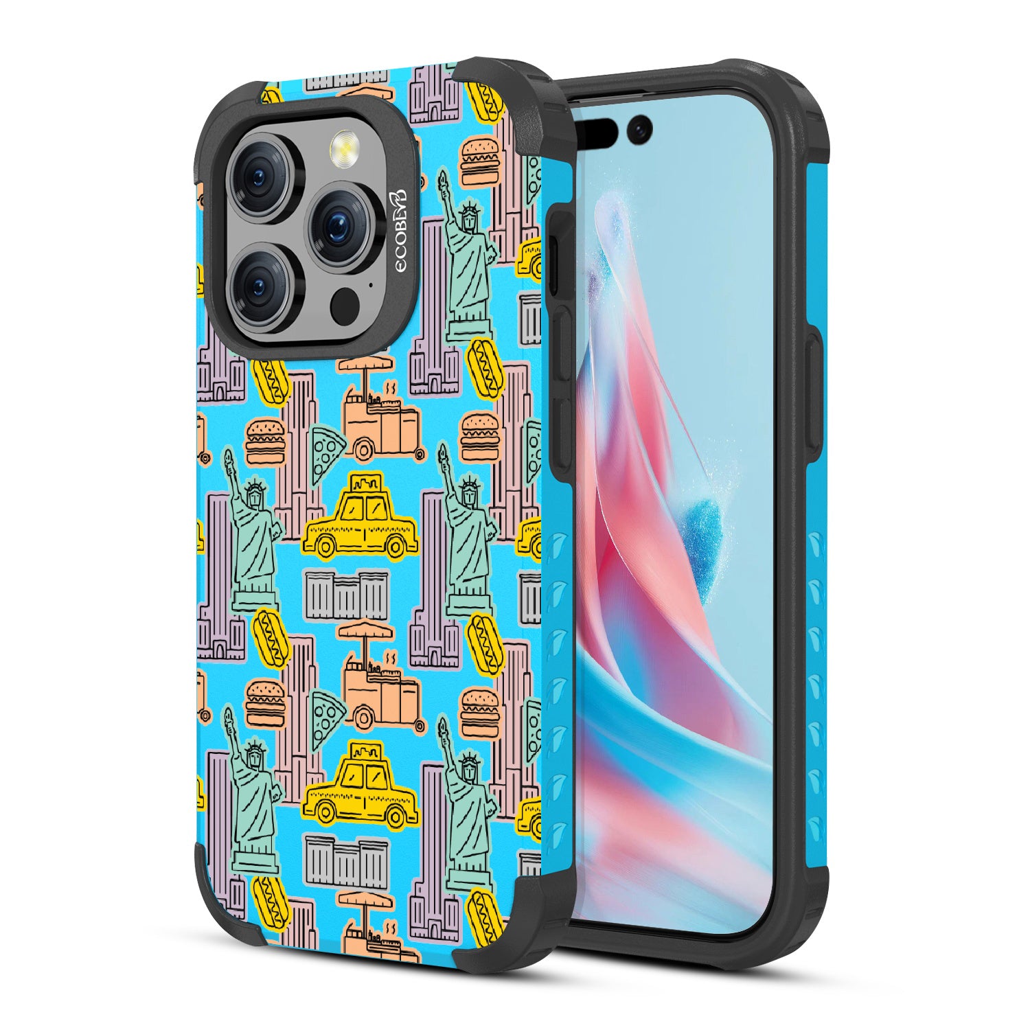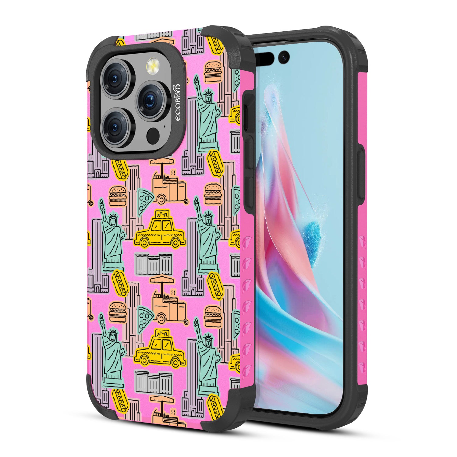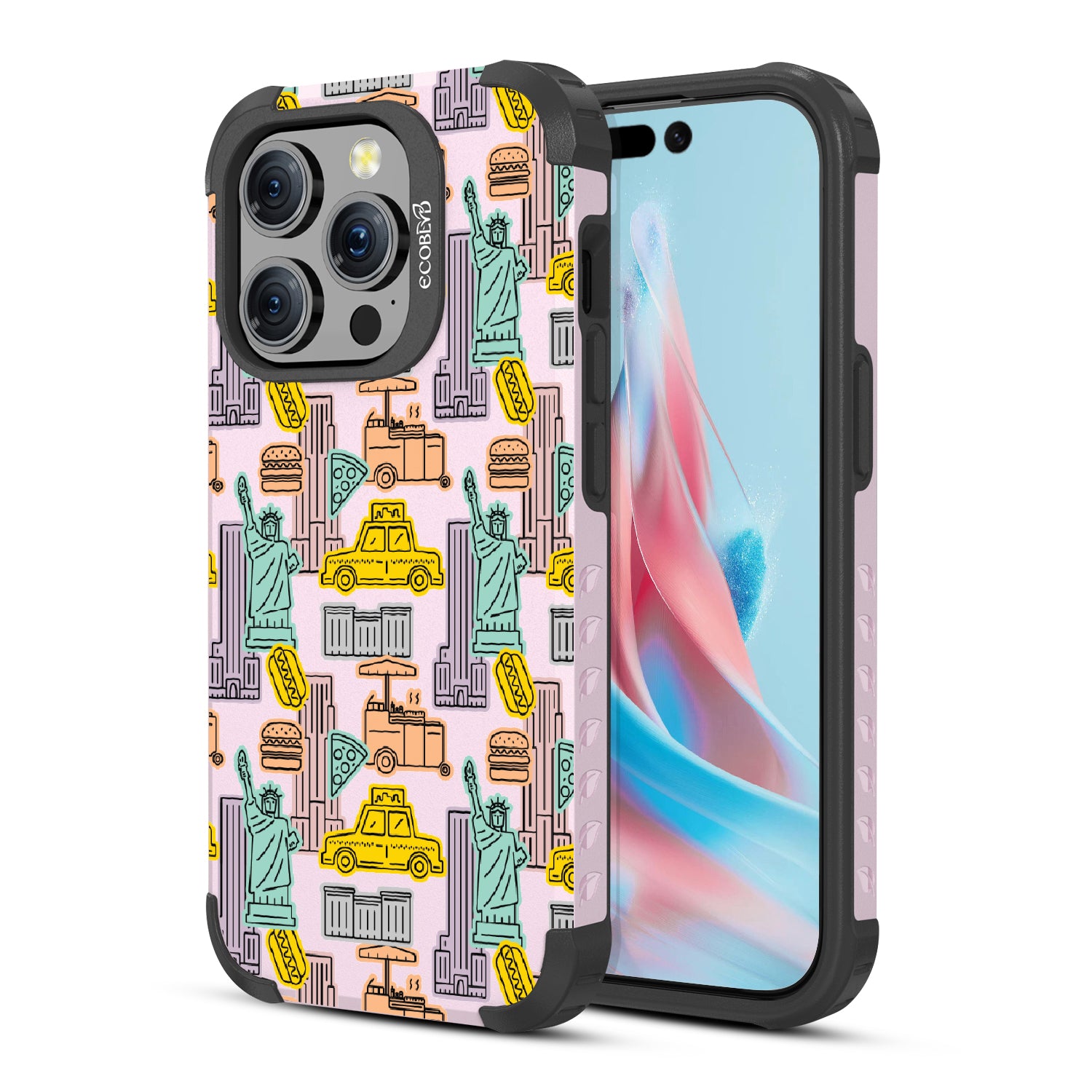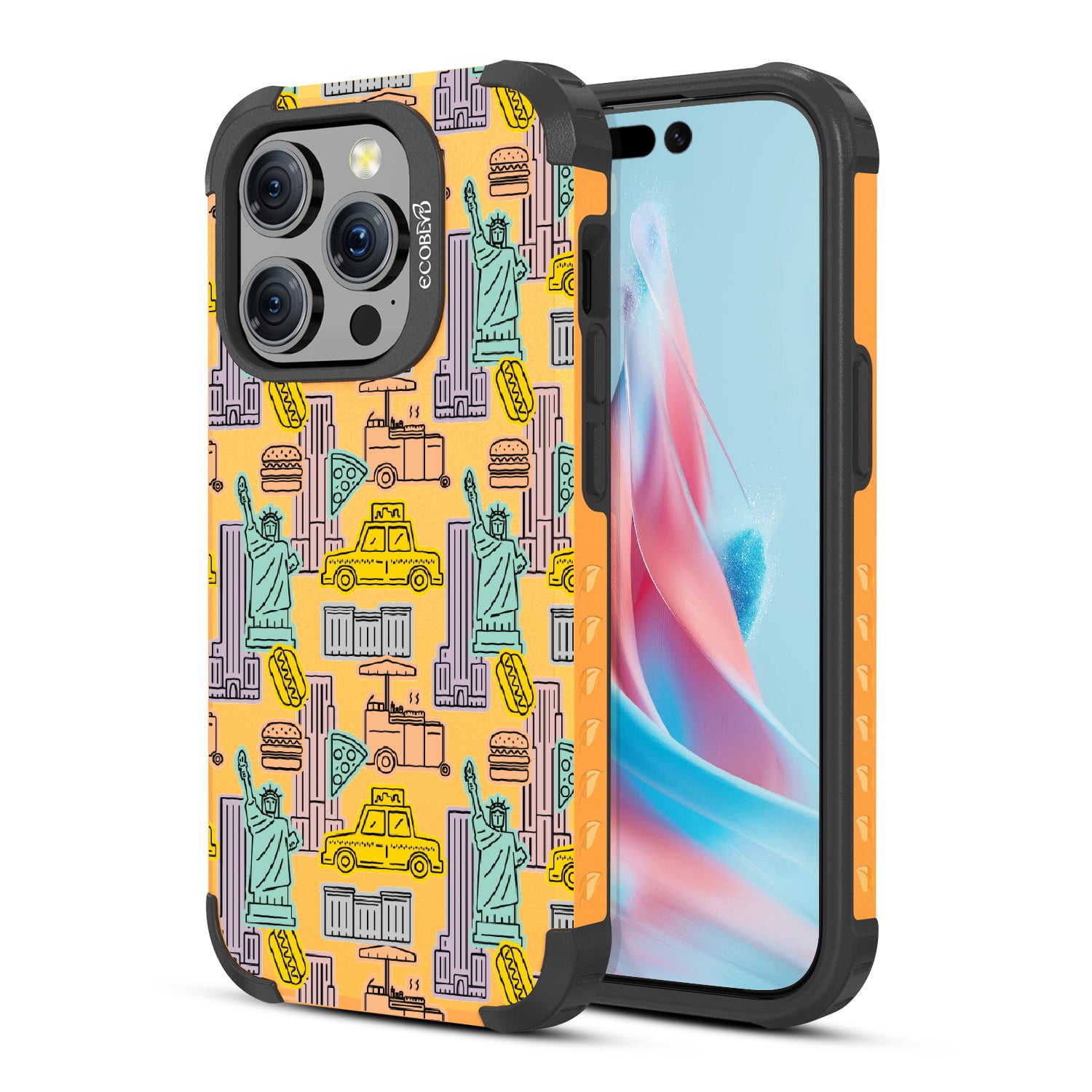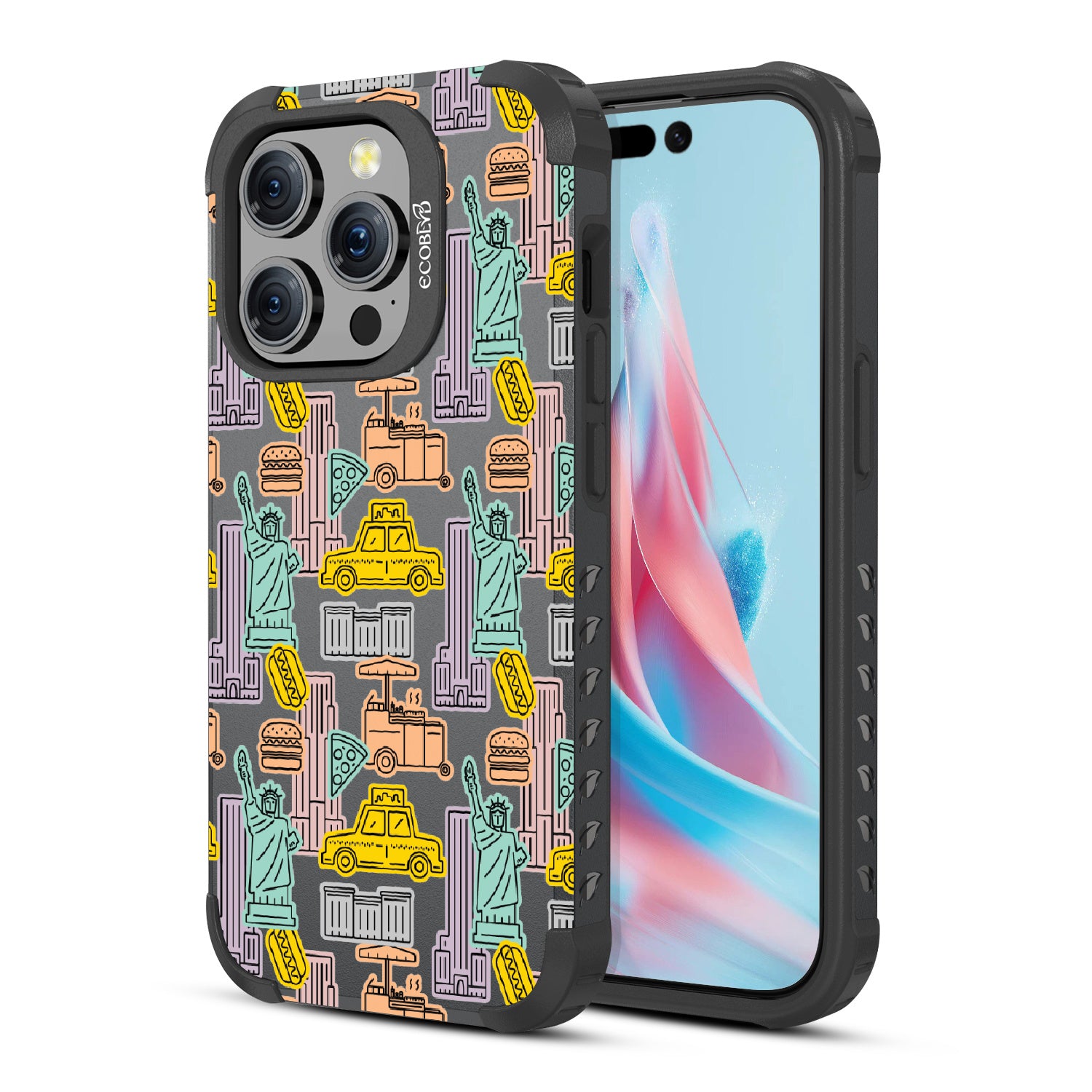 Capture the buzz of the city that never sleeps with the New York Minute design on our Mojave rugged iPhone 15 Pro MagSafe case. It's a slice of the Big Apple, with iconic yellow cabs, steaming hotdogs, and Lady Liberty herself, all wrapped up in that unmistakable NYC rhythm.