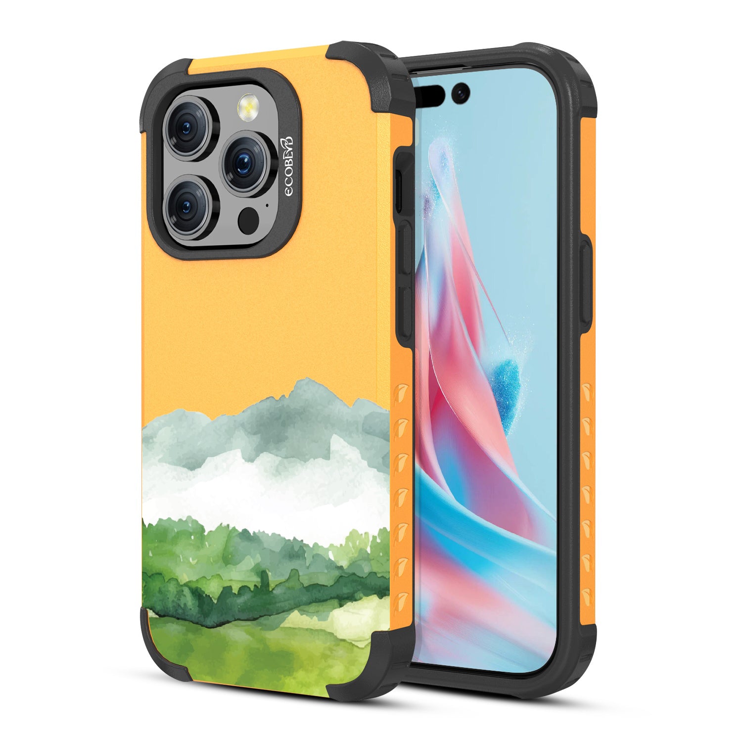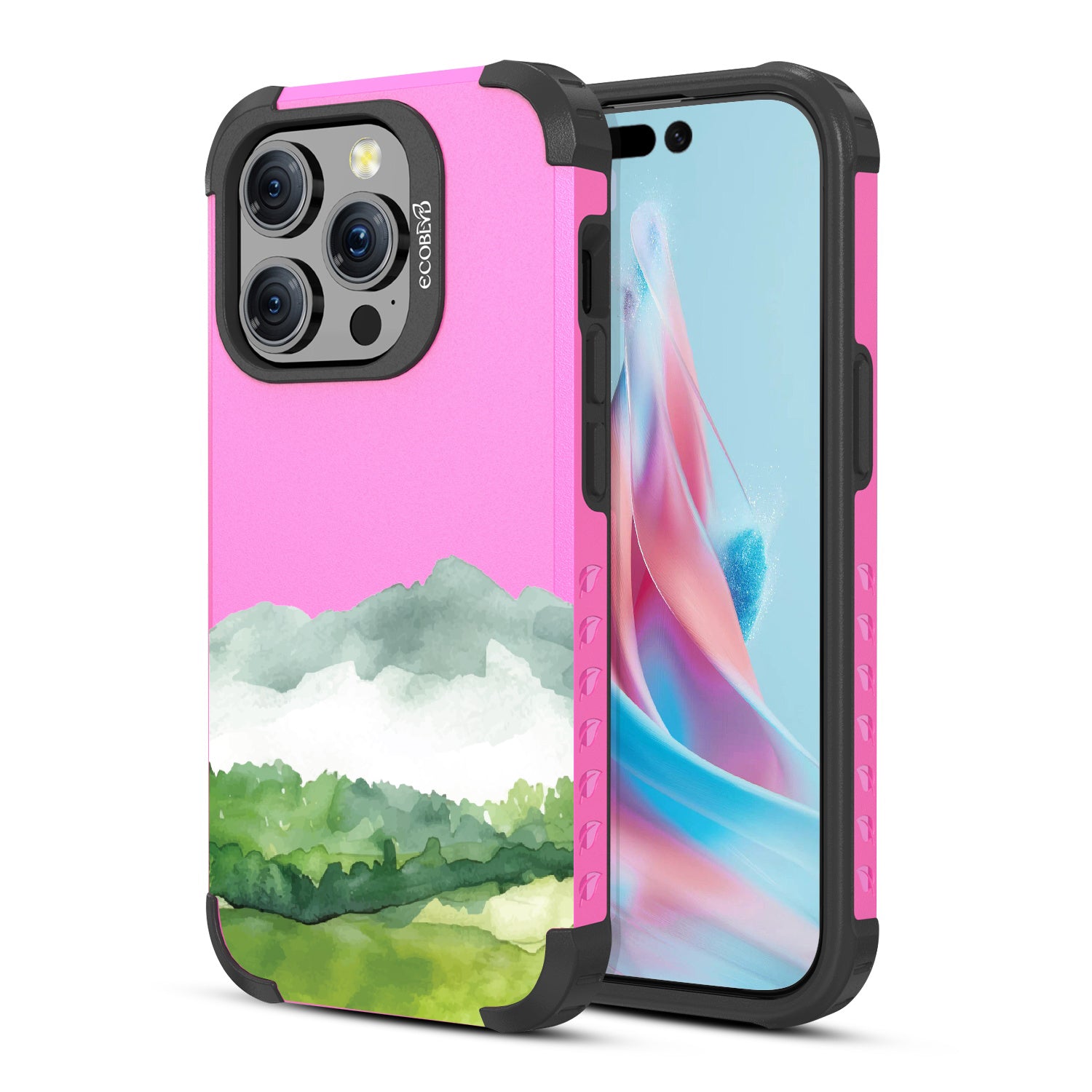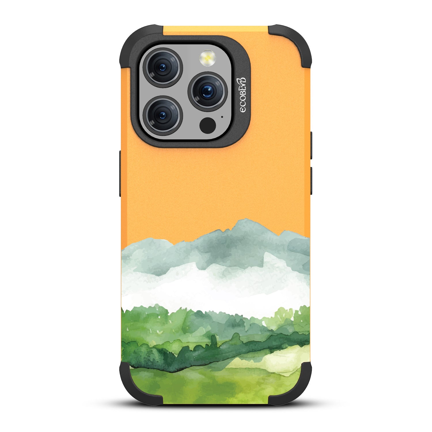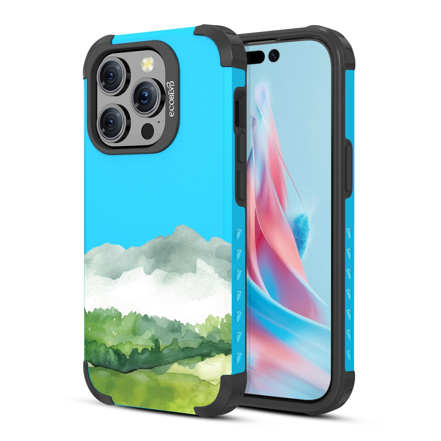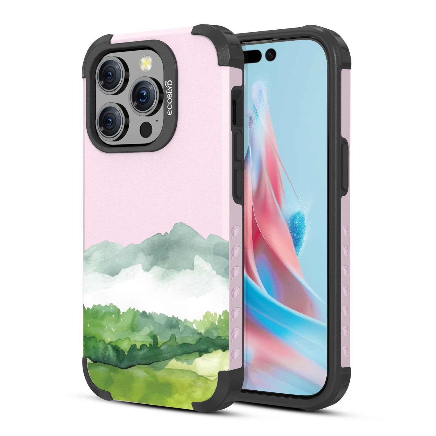 The view is endless, just like the possibilities. The Open Horizon design on our Mojave rugged and compostable iPhone 15 Pro case layers soft washes of green and misty blue, stretching like rolling hills beneath an open sky. The watercolor effect creates a serene, boundless landscape, a quiet reminder that there’s always more to explore.