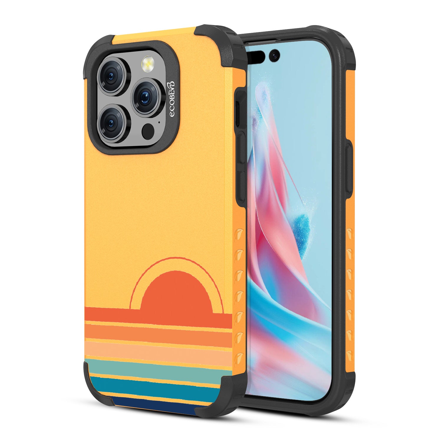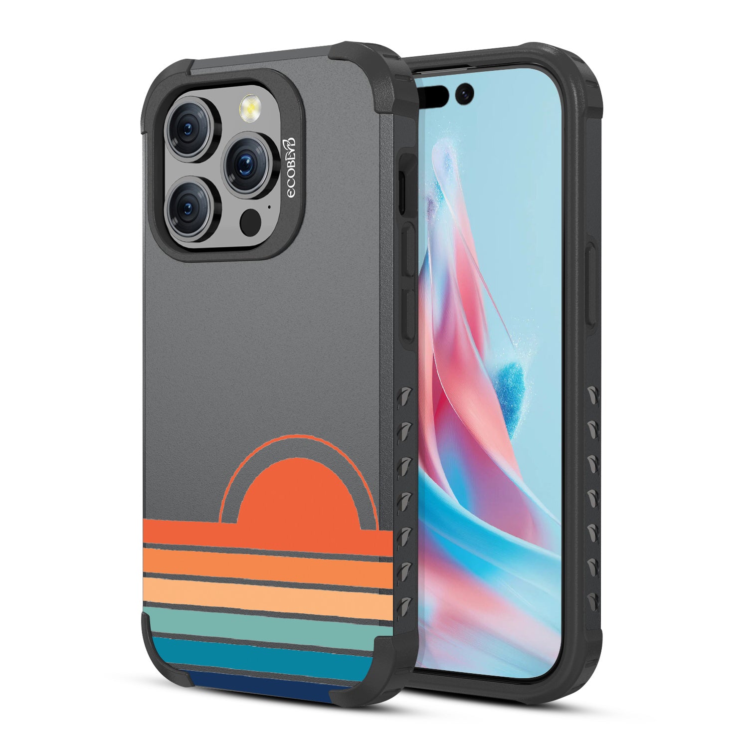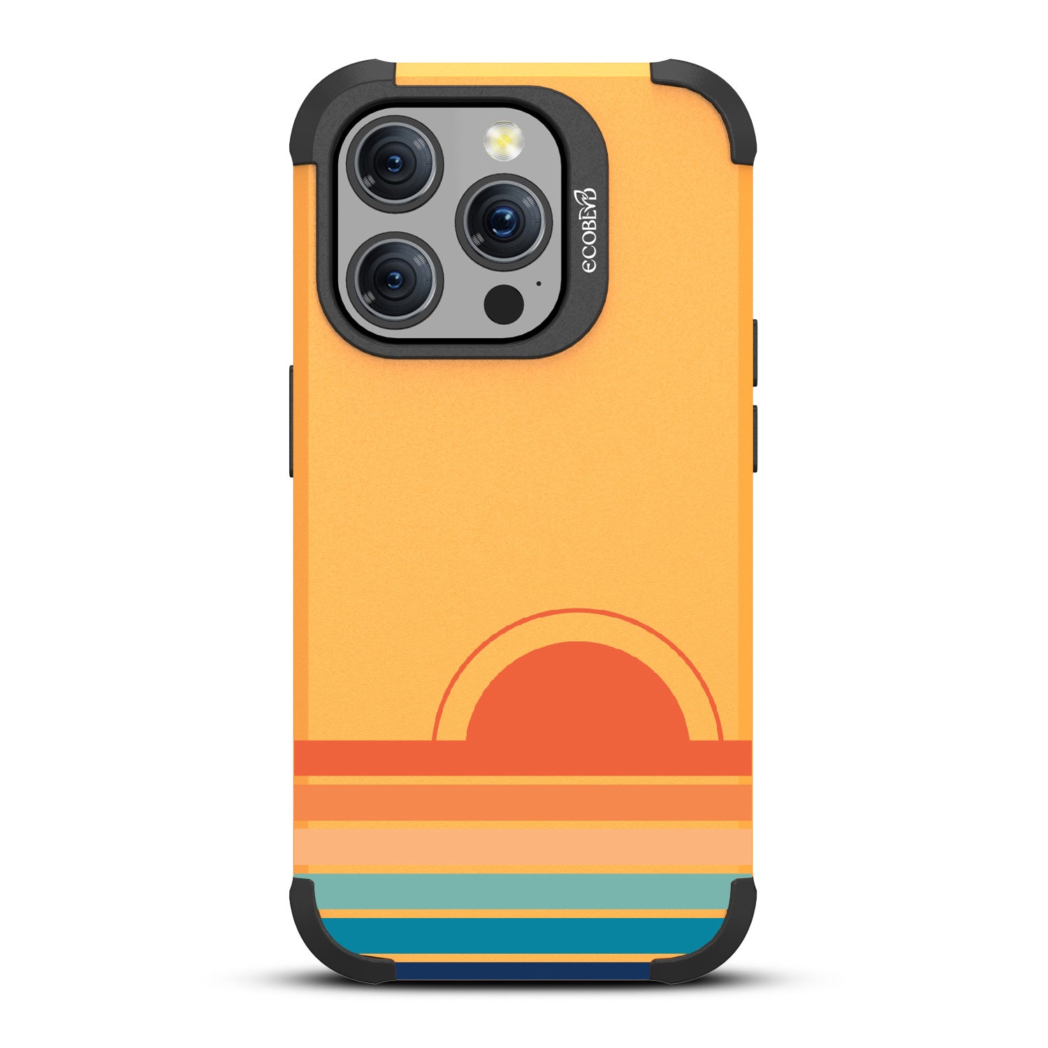 Even for those who aren't early birds, the Rise n' Shine design on our Mojave rugged and compostable iPhone 15 Pro case illuminates your style with a vintage sunny morning glow with beaming gradient rays. Choose from two vibrant colorways: Midnight Black, and Illuminating Yellow.