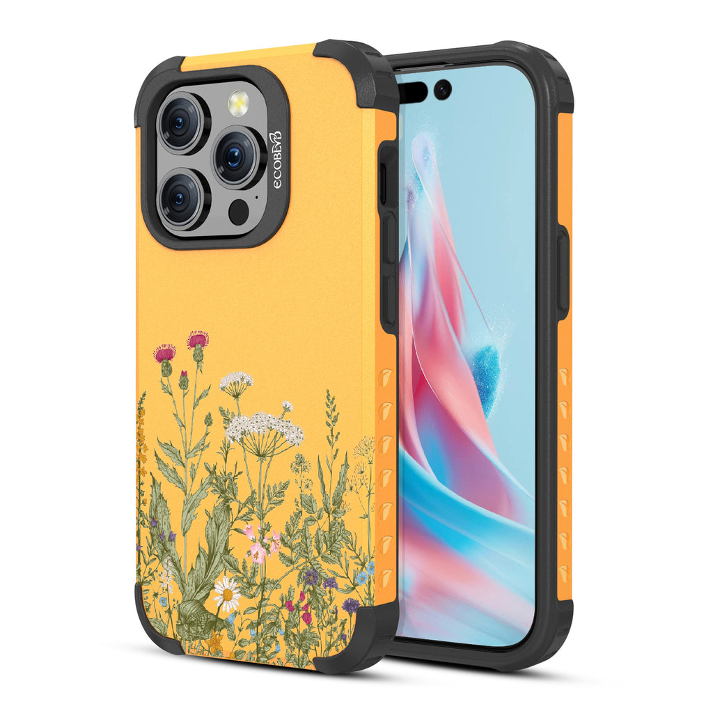 Embrace the spirit of growth with the Take Root design on our Mojave rugged and compostable iPhone 15 Pro case as it encourages you to plant new seeds and nurture your dreams as it blooms with wild herbs and flowers.