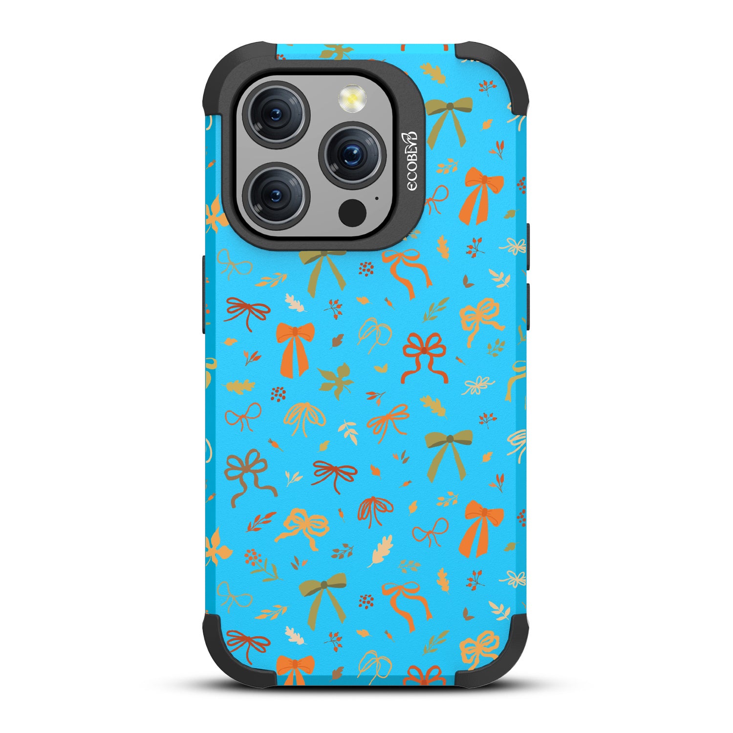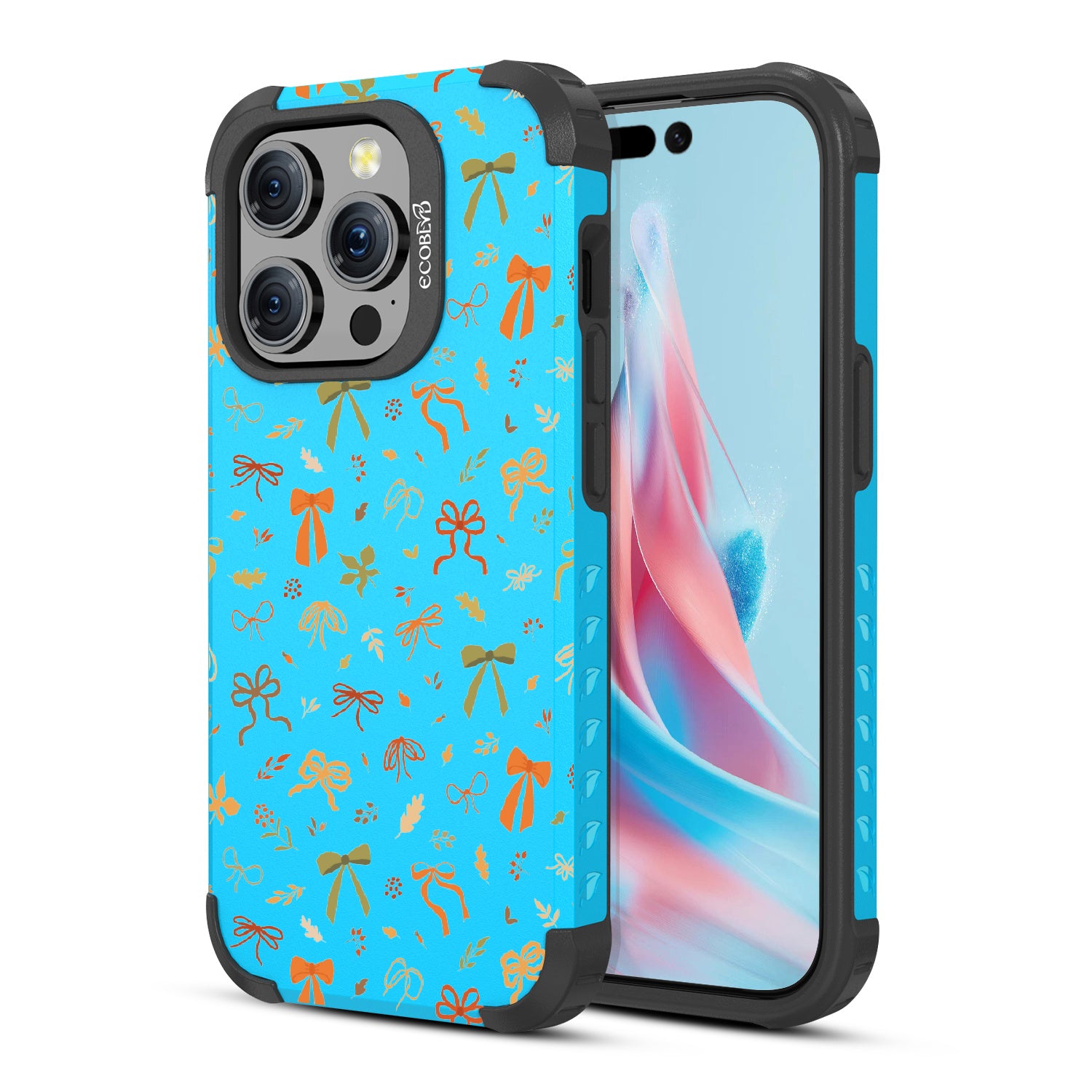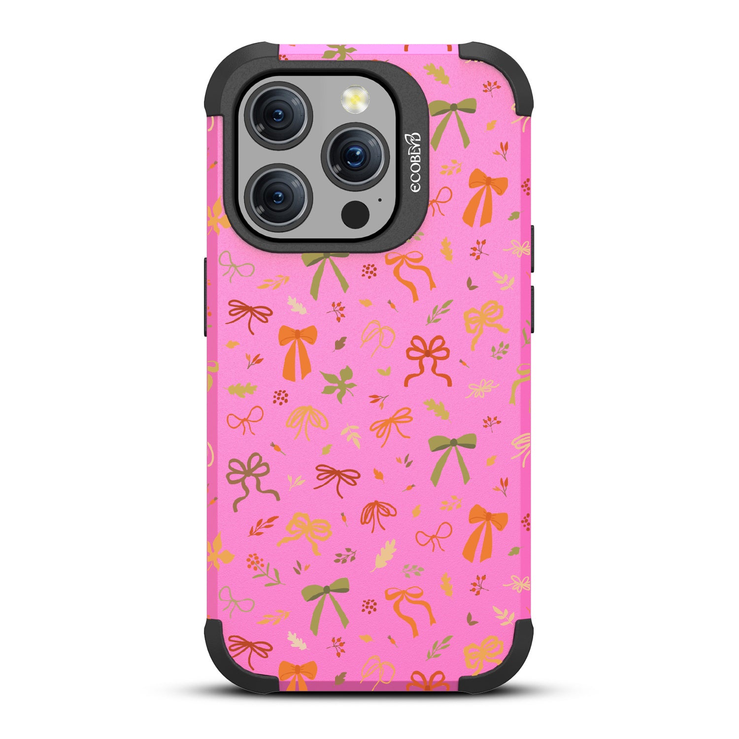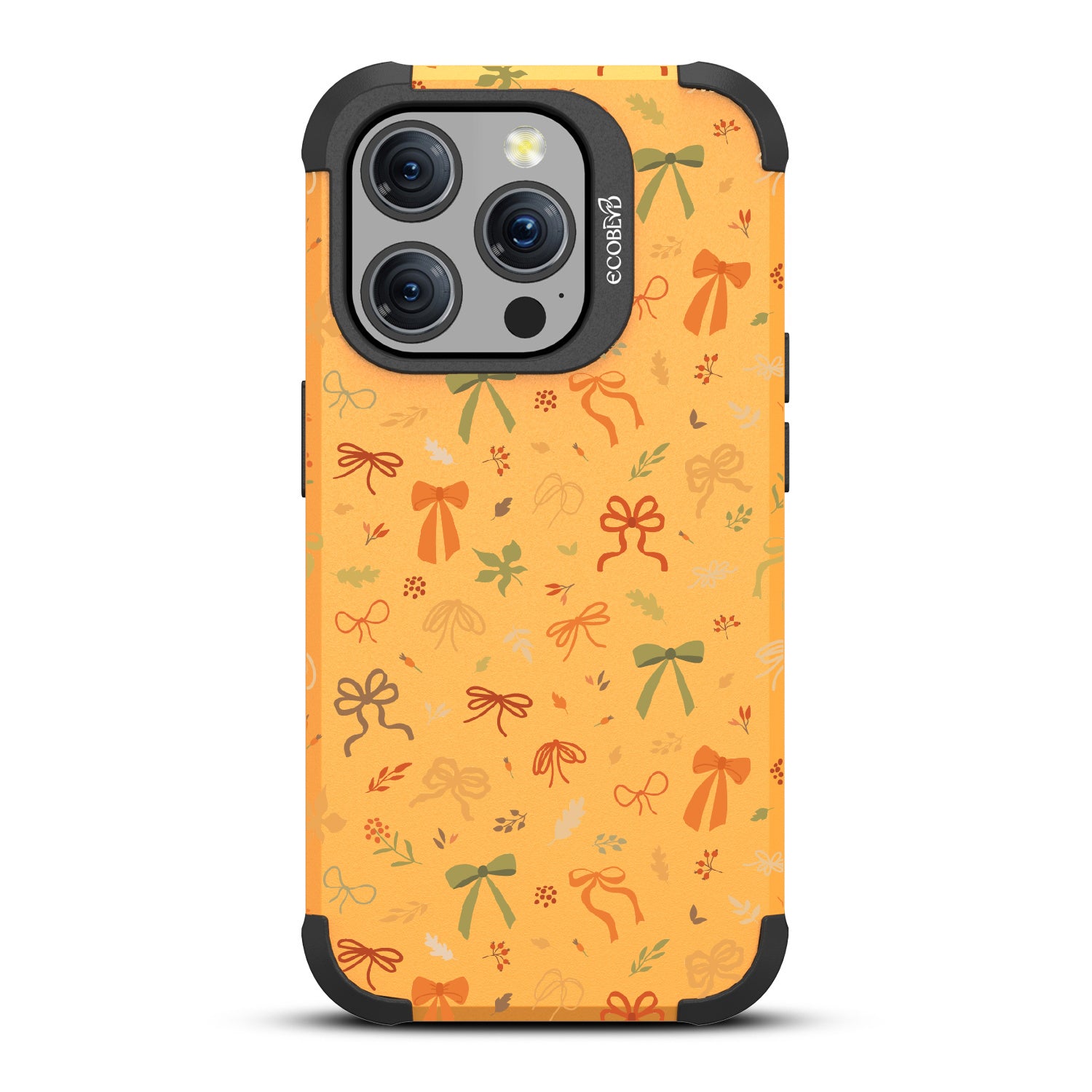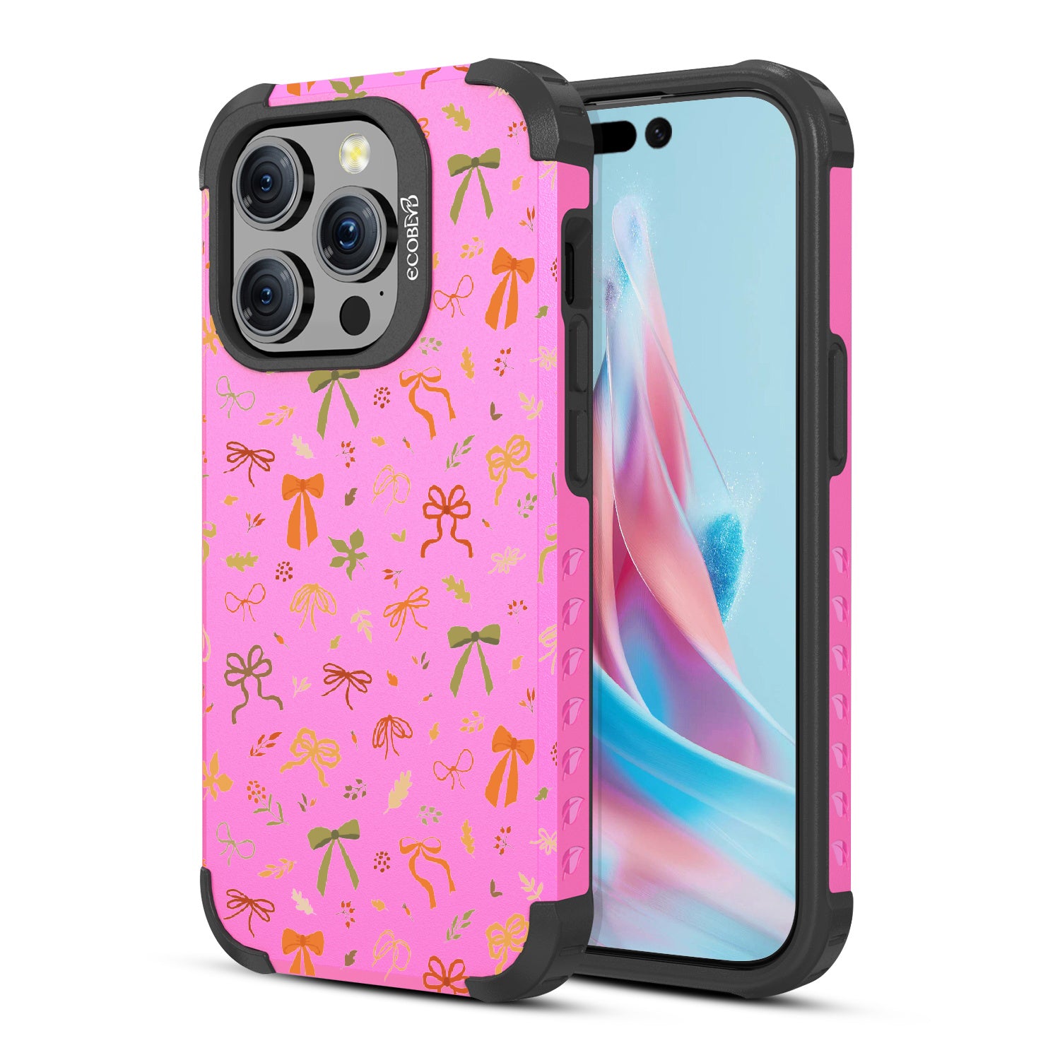 Don’t leaf your style to chance—wrap it up with the Twirls and Twine design on our Mojave rugged and compostable iPhone 15 Pro cases! This charming pattern features bows twirling among autumn blooms, making it the perfect girly twist for those cozy sweater days. For those who believe every season deserves a little twirl!