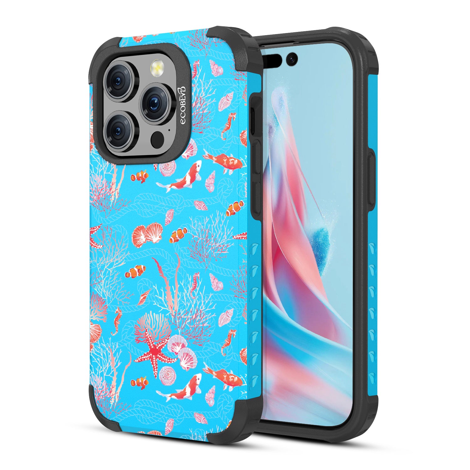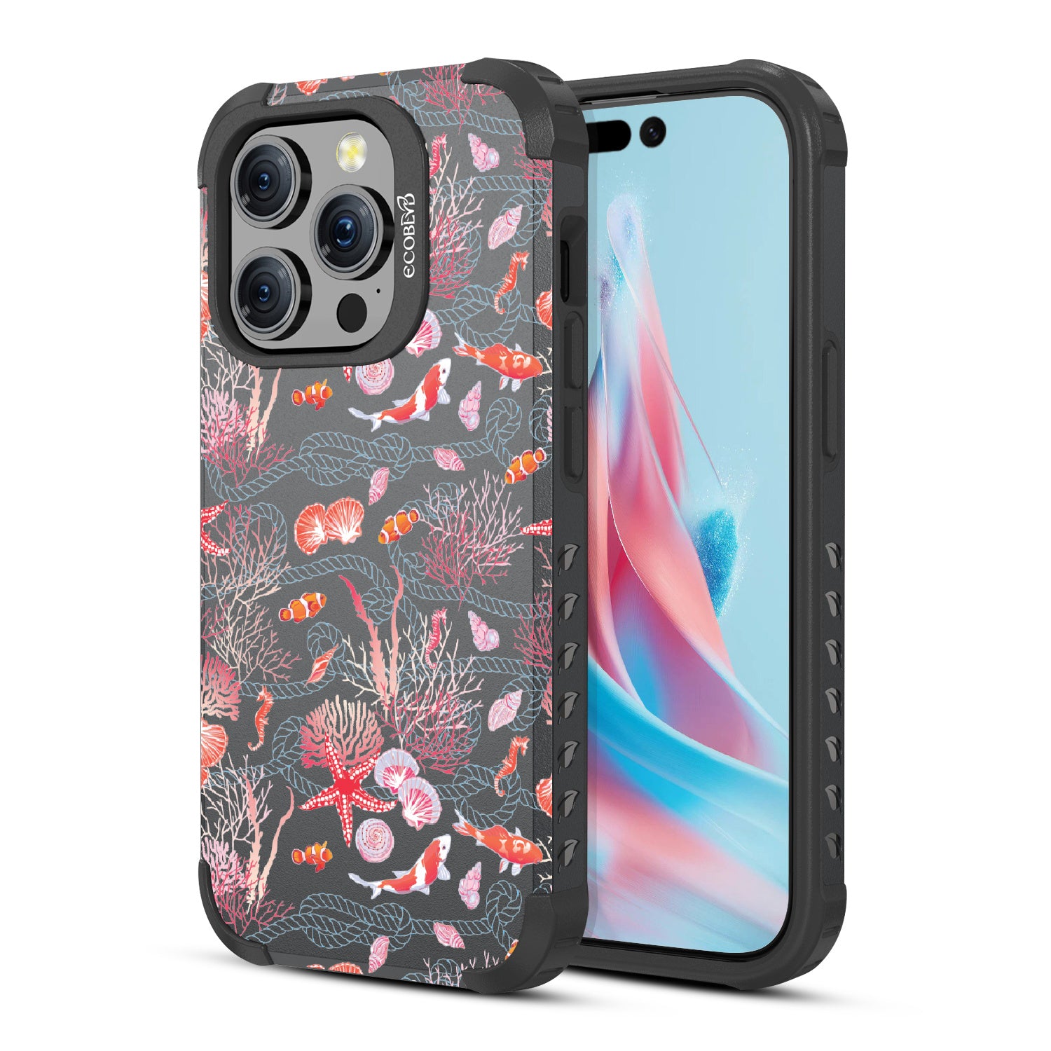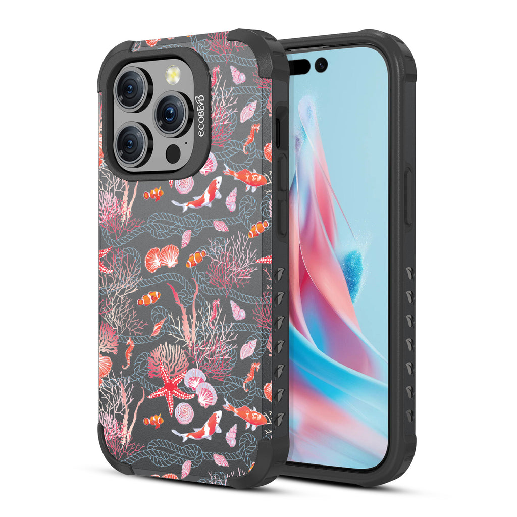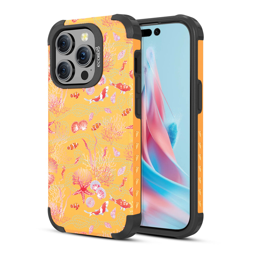 The coral is always brighter, Under the Sea! With this design our Mojave rugged and compostable iPhone 15 Pro MagSafe case, you'll see, your phone’s full of glee, under the sea! Coral and critters, they all come together, swirling in hues, pinks, and blues, where life’s better wetter, take it from me! Your phone will be dancing, twirling, and prancing, carrying the magic of the ocean so fancy! So let your phone be, full of joy and glee, under the sea.