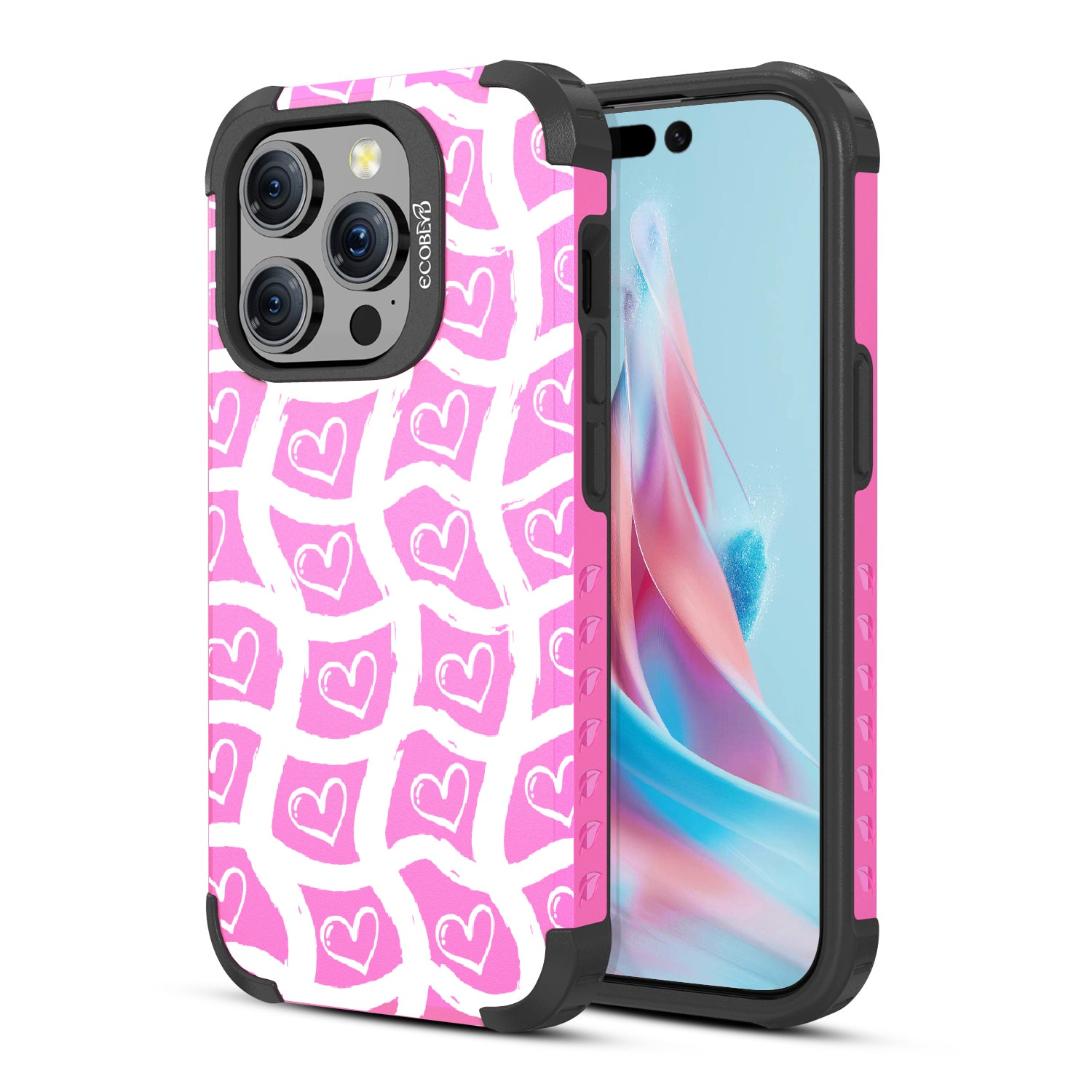 Let our Waves of Affection design on our Mojave rugged and compostable iPhone 15 Pro case wash over you and your phone and let your style show off your love in a subtle yet impactful way with its charming wave-inspired design that creates a fashionable ripple everywhere you go!