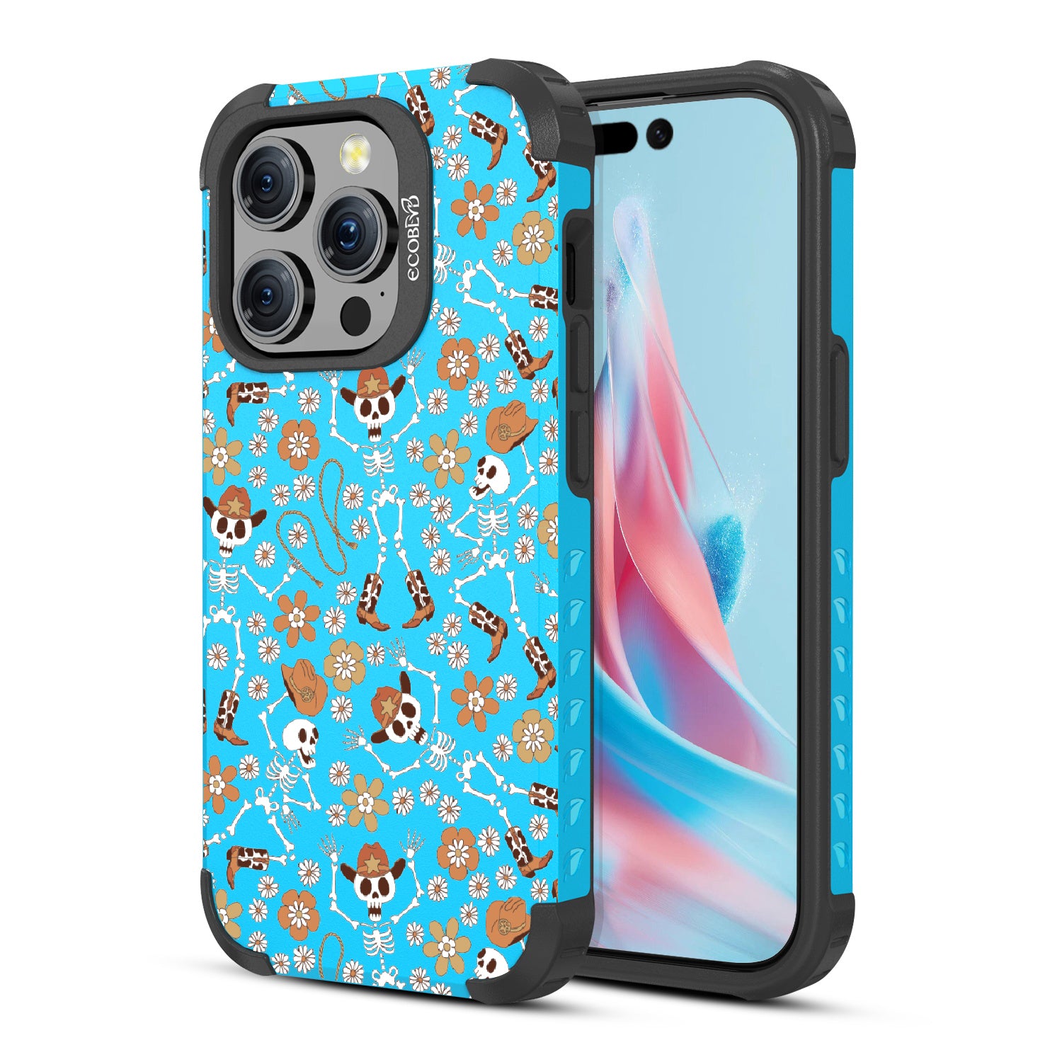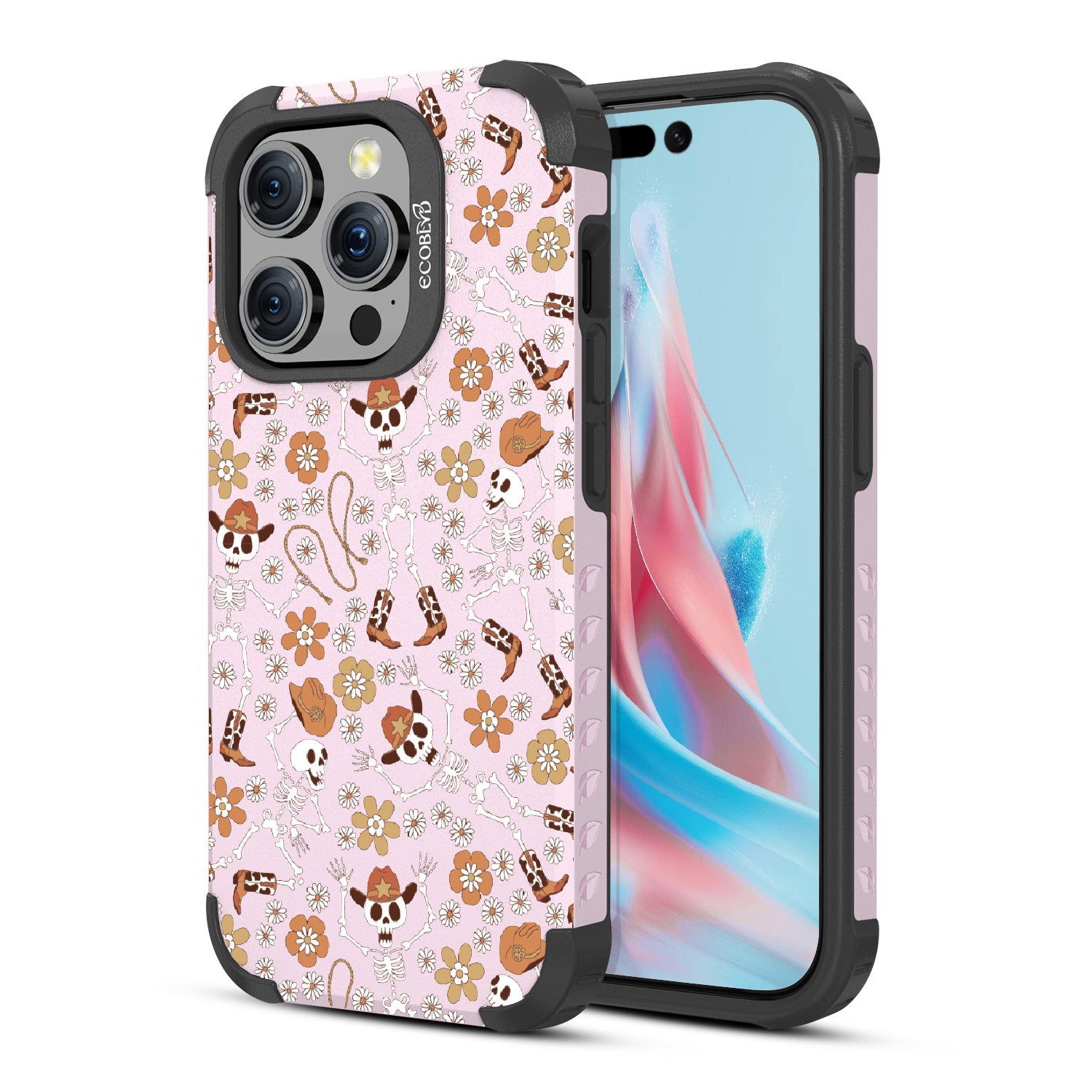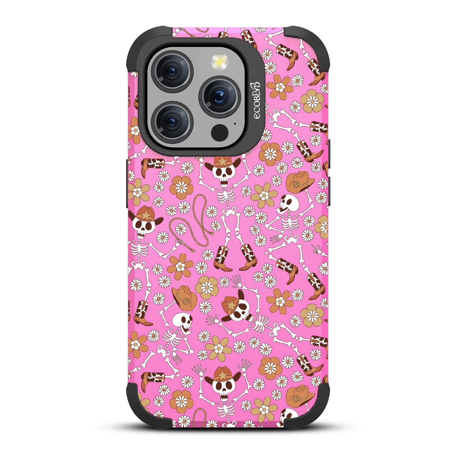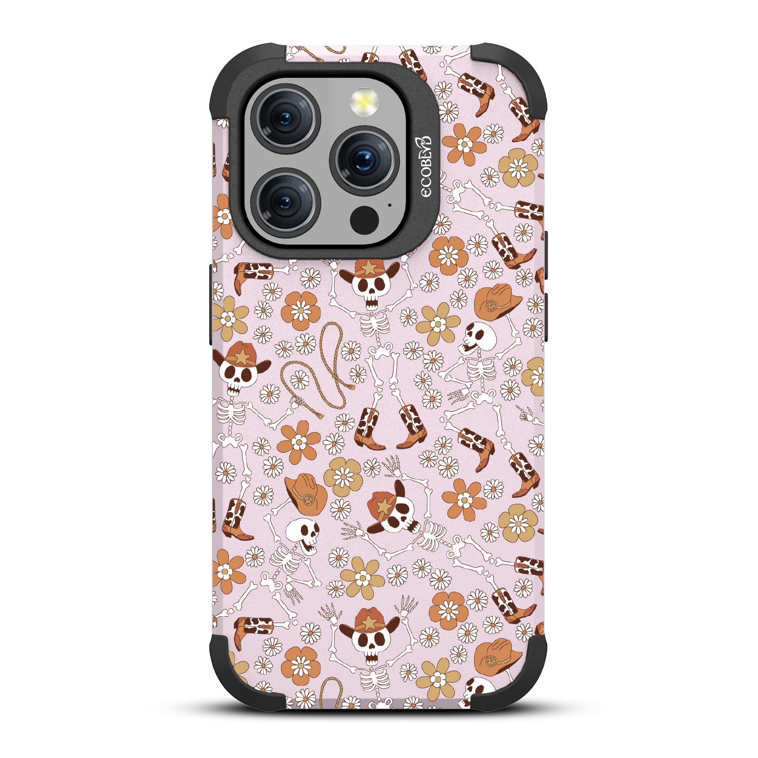 Ride into the spirit of the season with the Yee-Haunt design on our Mojave rugged and compostable iPhone 15 Pro cases. Cowboy skeletons take center stage, adding a playful western twist to fall’s festivities. It’s a design that brings a dash of spooky fun to your everyday style.