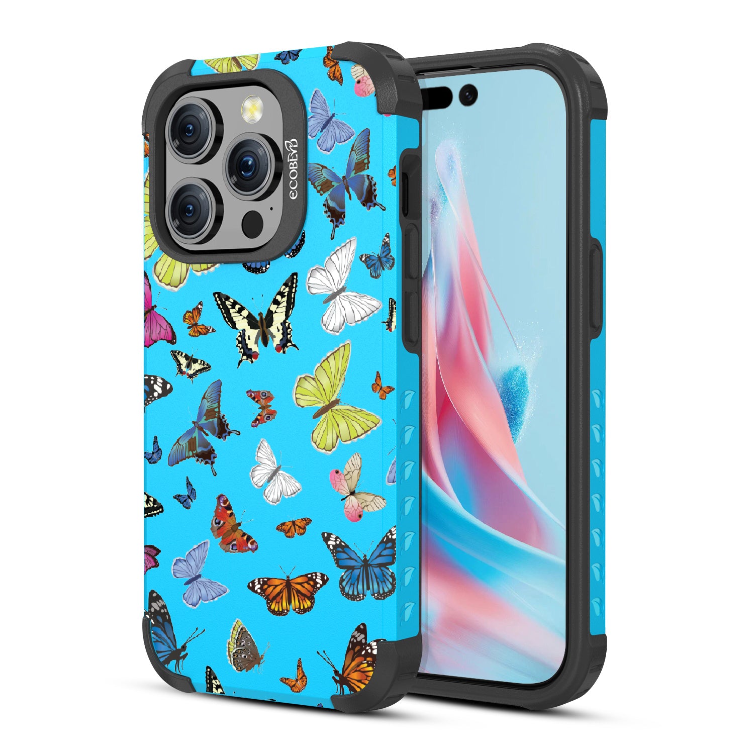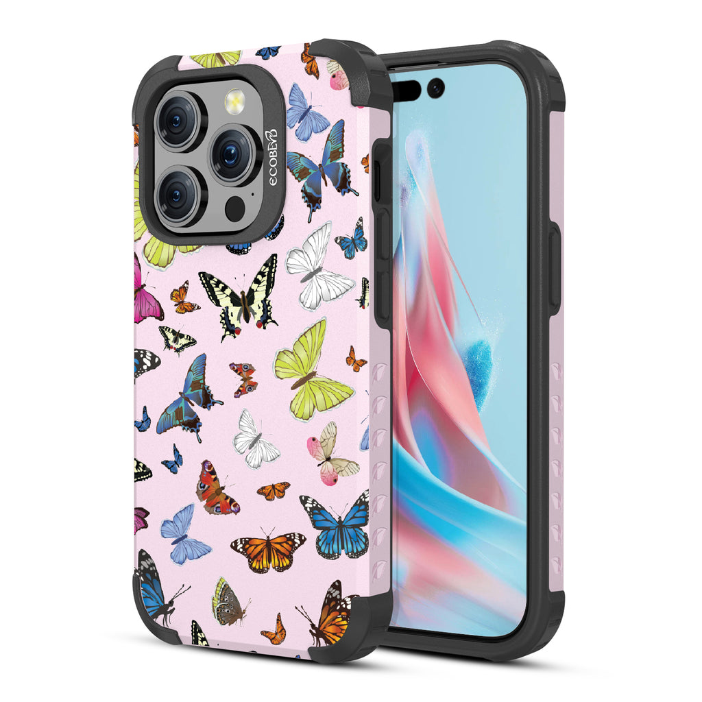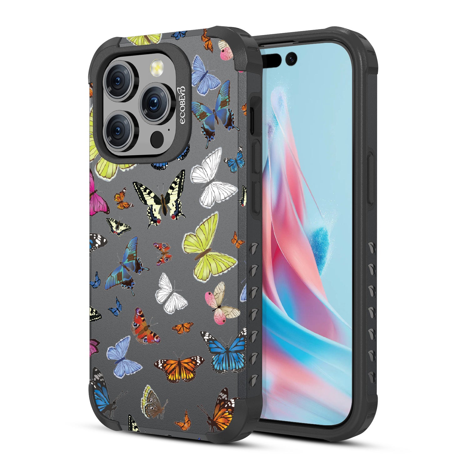 Your style and phone will set everyone's hearts aflutter as the You Give Me Butterflies design on our Mojave rugged and compostable iPhone 15 Pro case covers it in a dazzling display of majestic butterflies.