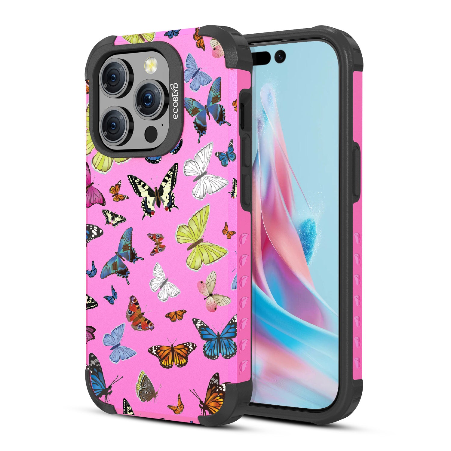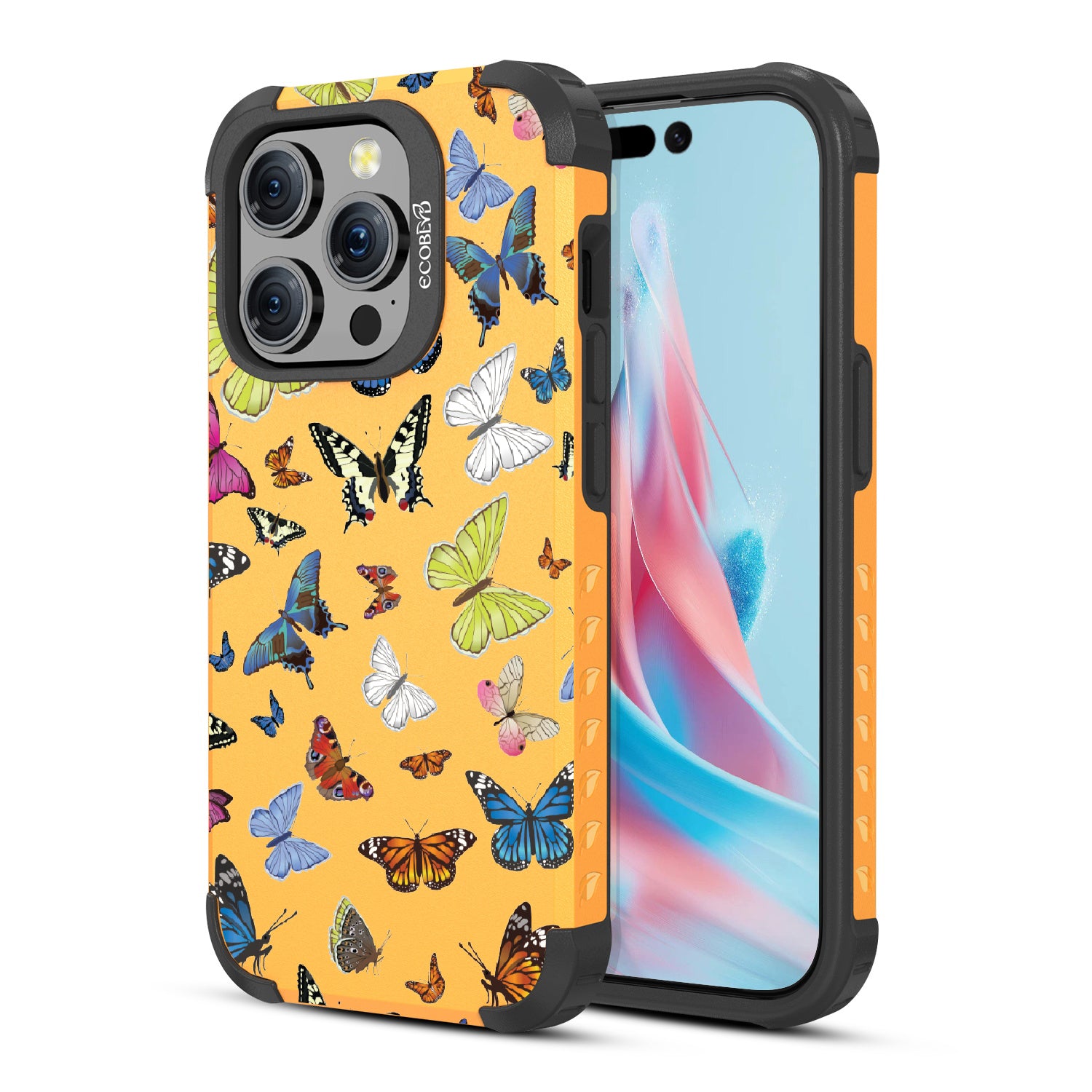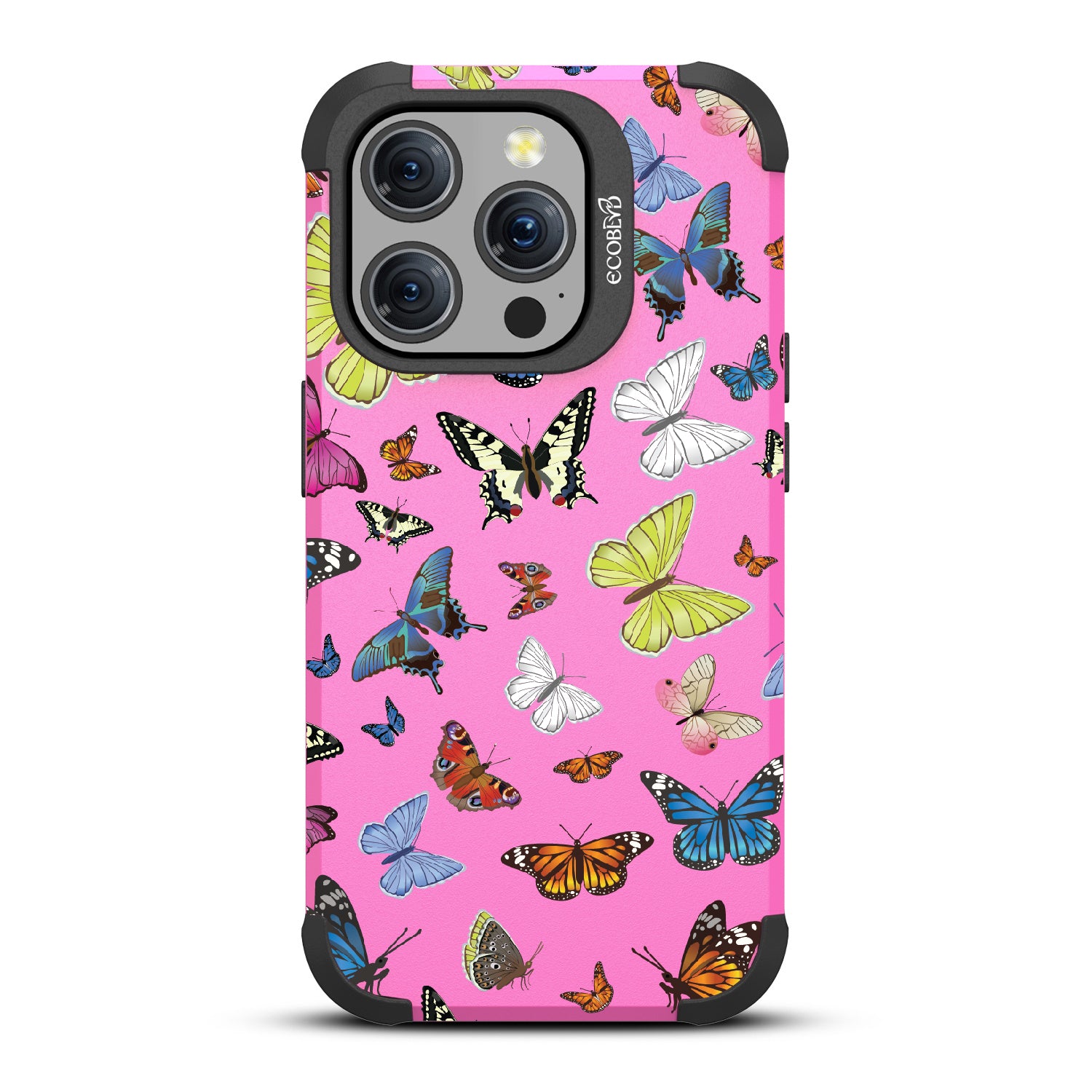 Your style and phone will set everyone's hearts aflutter as the You Give Me Butterflies design on our Mojave rugged and compostable iPhone 15 Pro case covers it in a dazzling display of majestic butterflies.