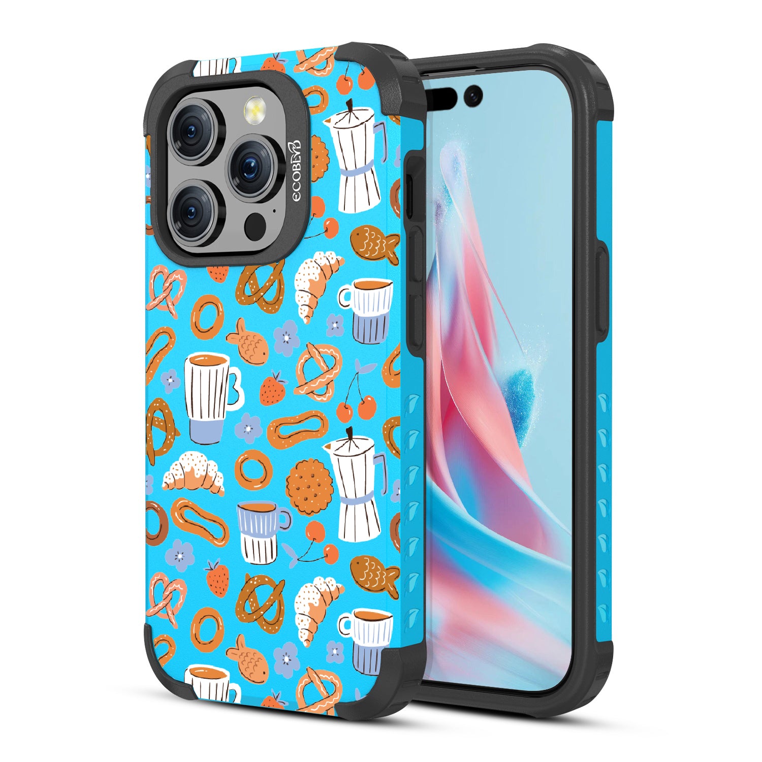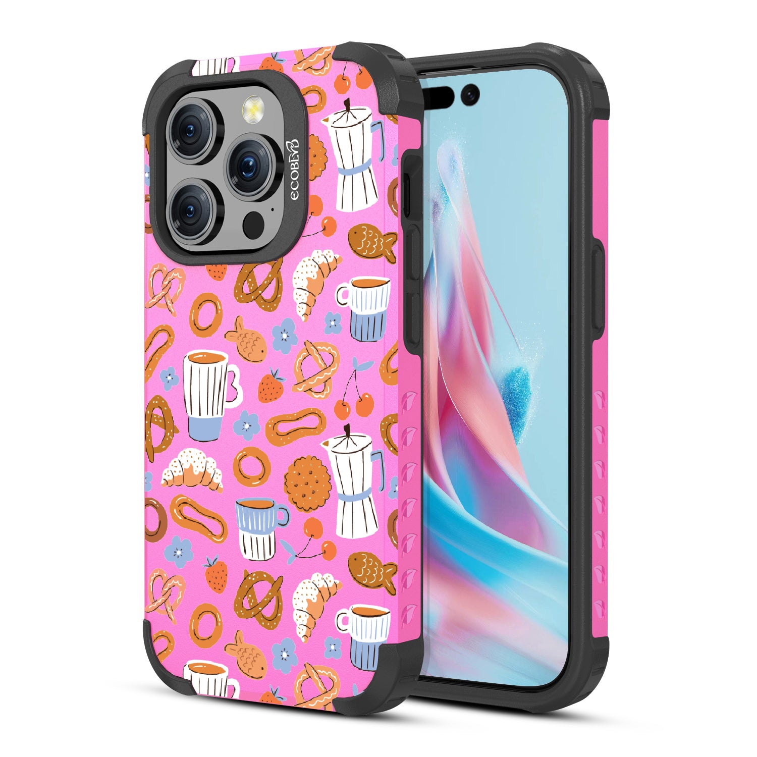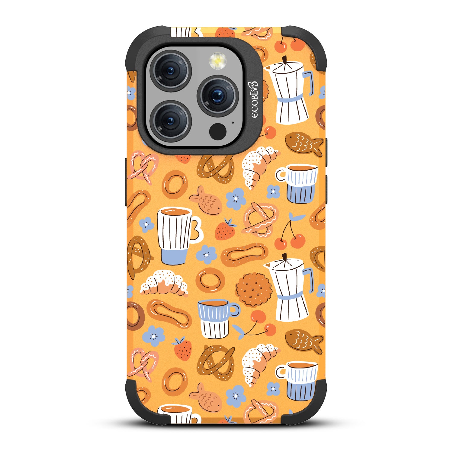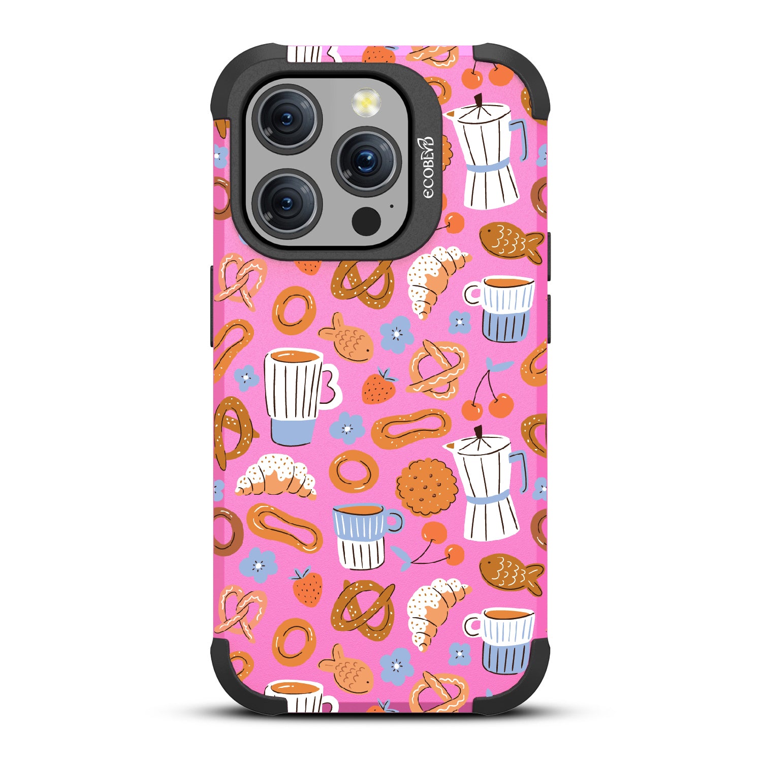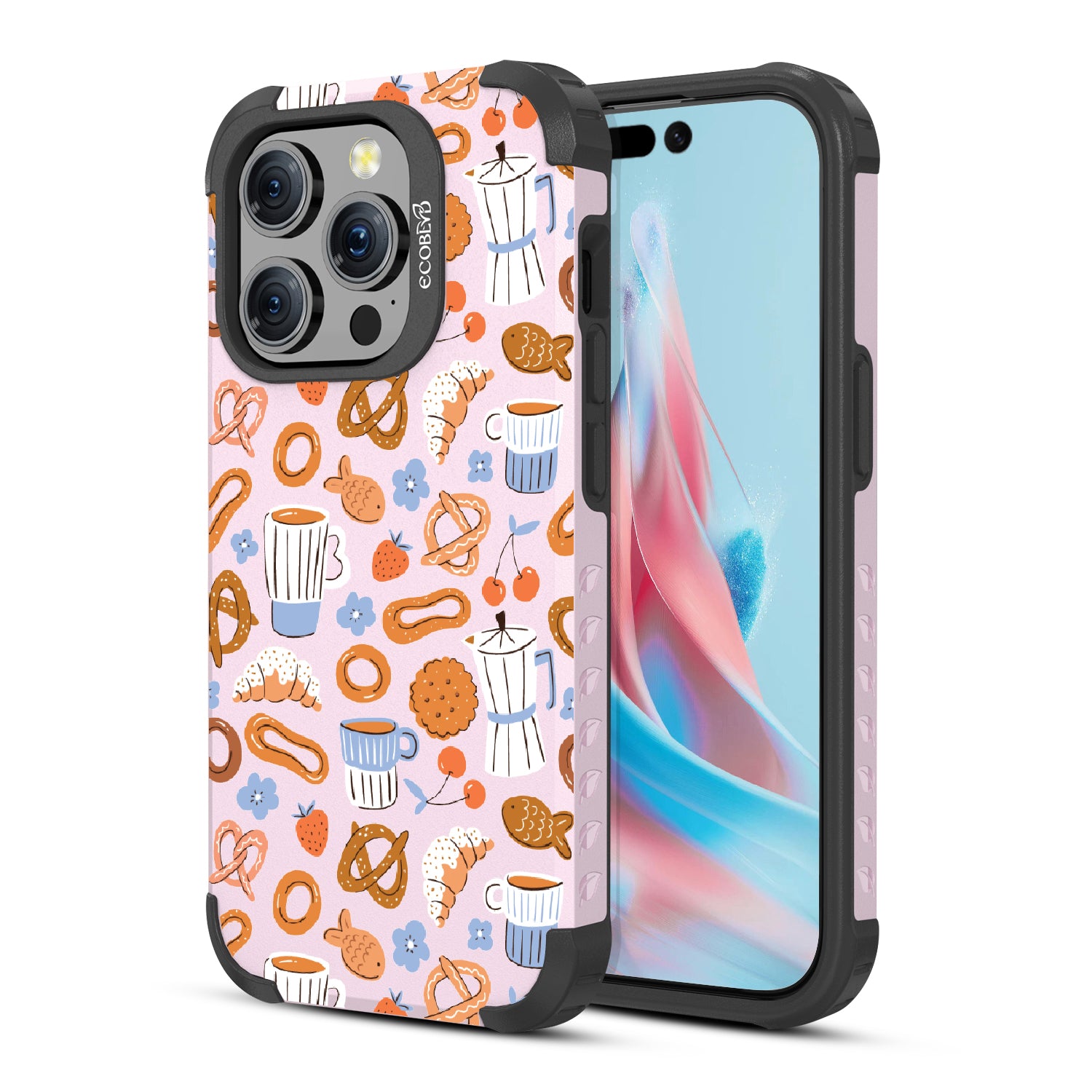 Welcome to The Breakfast Club, where looks are served. This design on our Mojave rugged and compostable iPhone 15 Pro case brings together all your favorite brunch essentials—croissants, coffee, and pretzels. It’s the perfect club to kickstart your day, full of flavor, fun, and flair.
