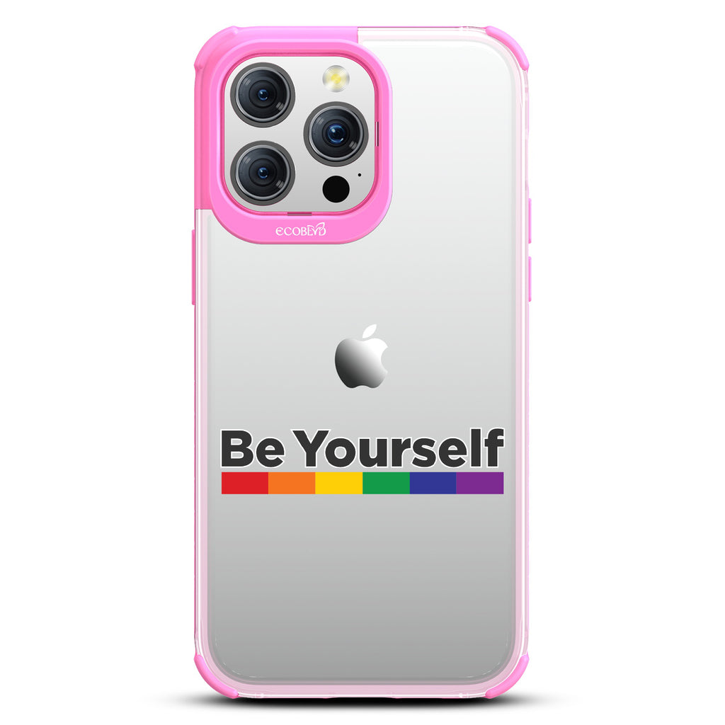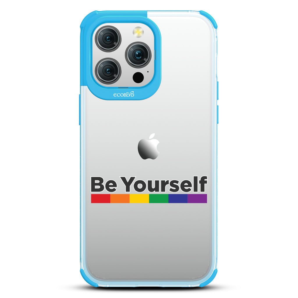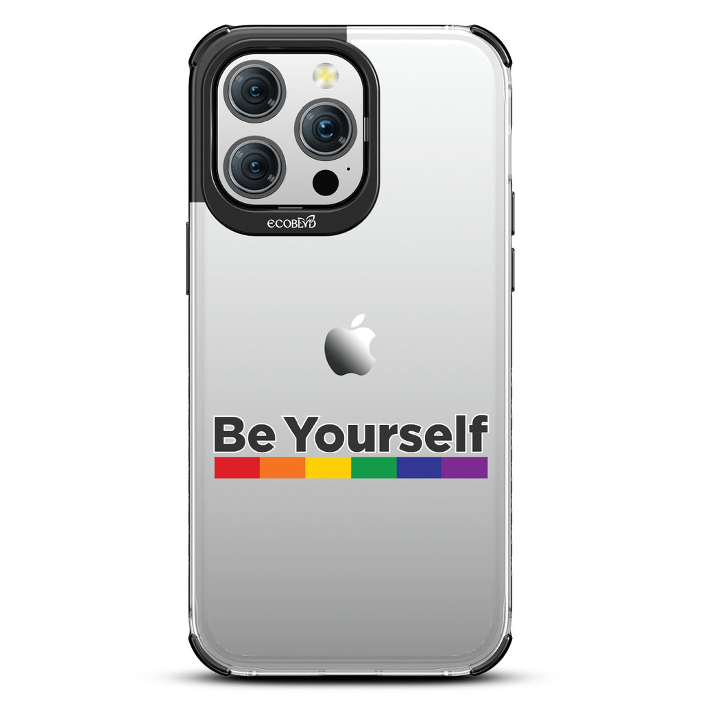 Embrace the power of self-expression with the captivating Be Yourself Laguna clear compostable iPhone 15 Pro Max case, as the empowering message harmonizes with a vibrant rainbow spectrum bar. This design serves as a reminder that you have the freedom to be unapologetically yourself, breaking societal norms and embracing your true colors. Wear it proudly, igniting conversations and fostering a more inclusive world that celebrates individuality.