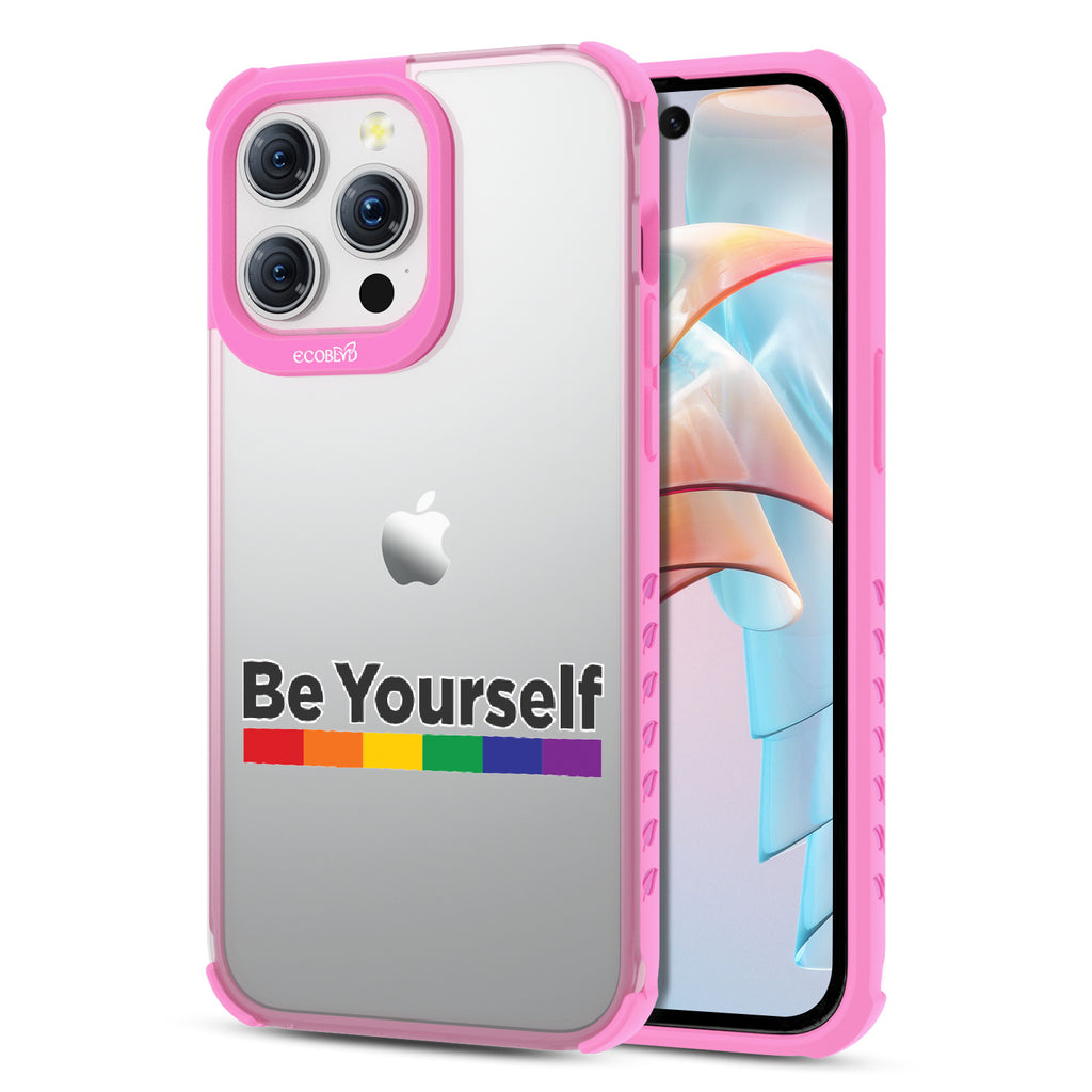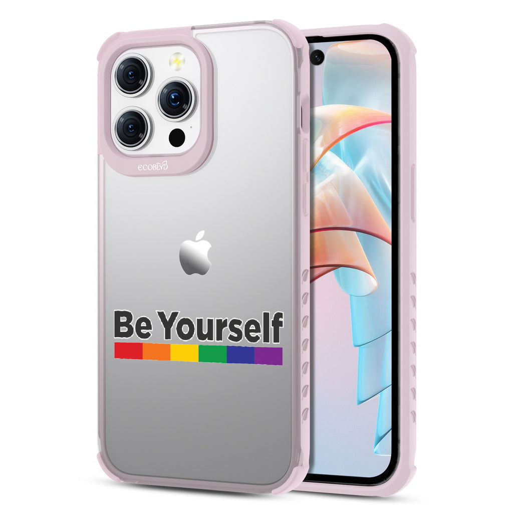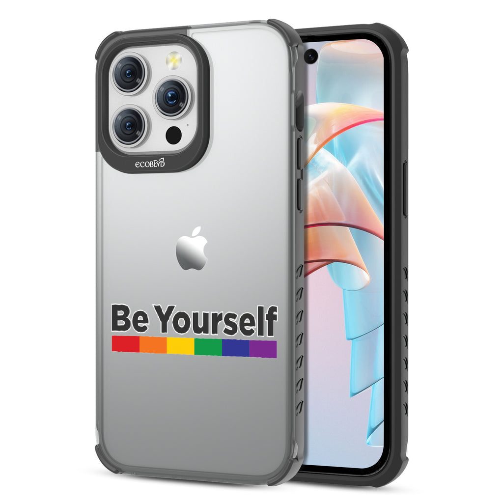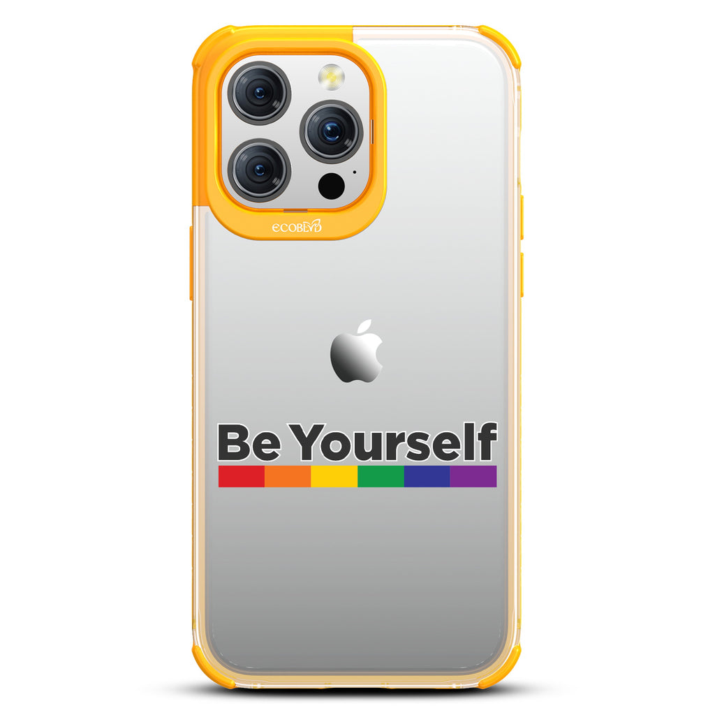 Embrace the power of self-expression with the captivating Be Yourself Laguna clear compostable iPhone 15 Pro Max case, as the empowering message harmonizes with a vibrant rainbow spectrum bar. This design serves as a reminder that you have the freedom to be unapologetically yourself, breaking societal norms and embracing your true colors. Wear it proudly, igniting conversations and fostering a more inclusive world that celebrates individuality.